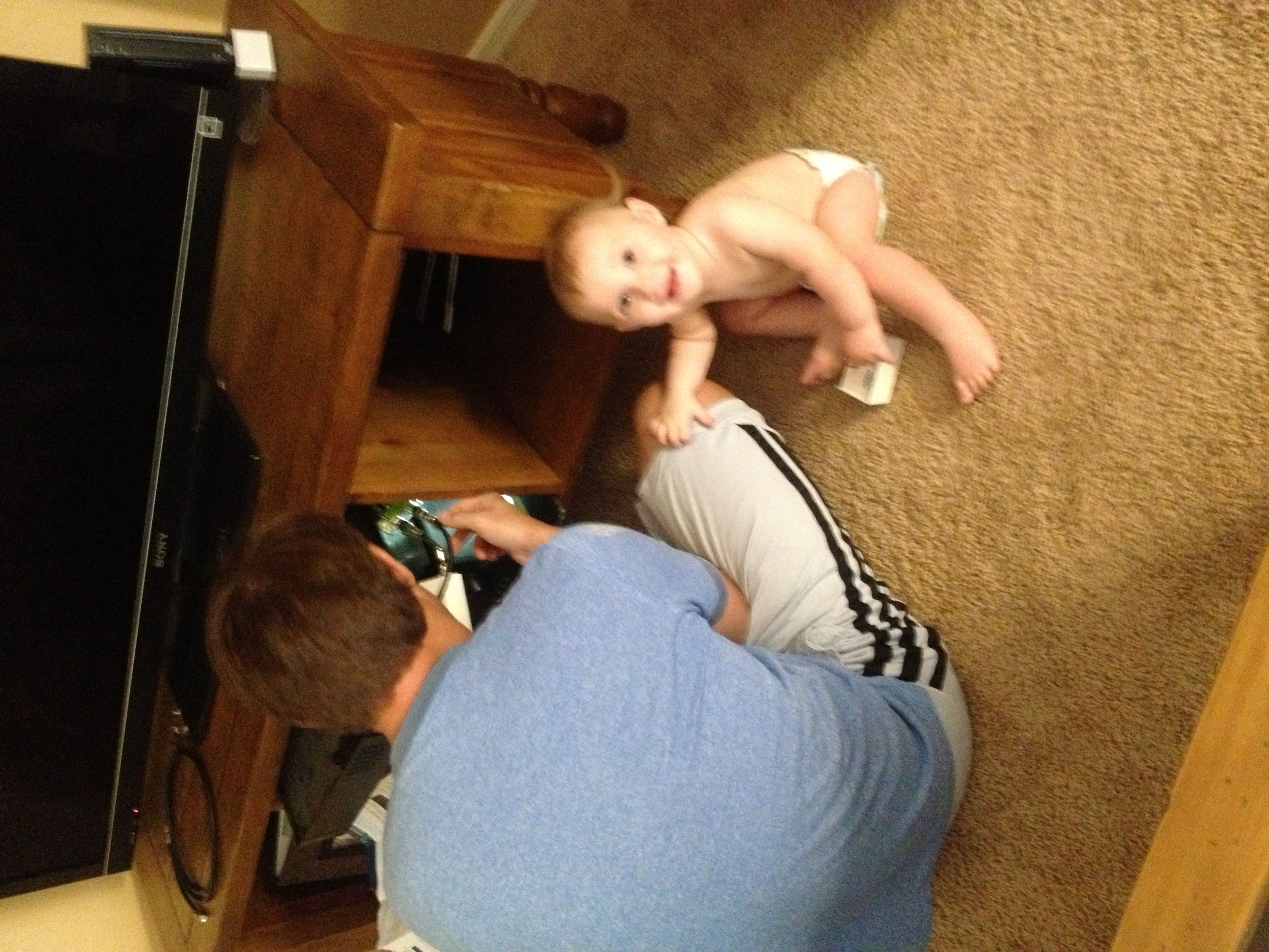 Two are from back porch play. The last is her helping DH hook a wireless thing to our DVR. Though, it's not working like I did during the last transition AND I don't have a button for smileys.