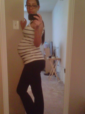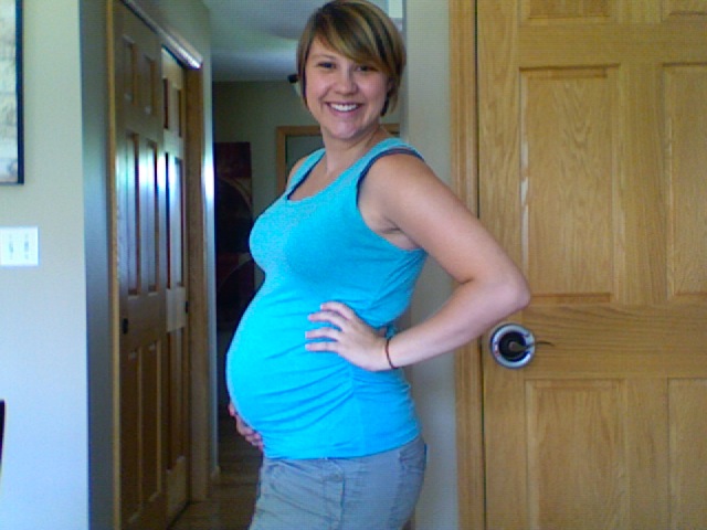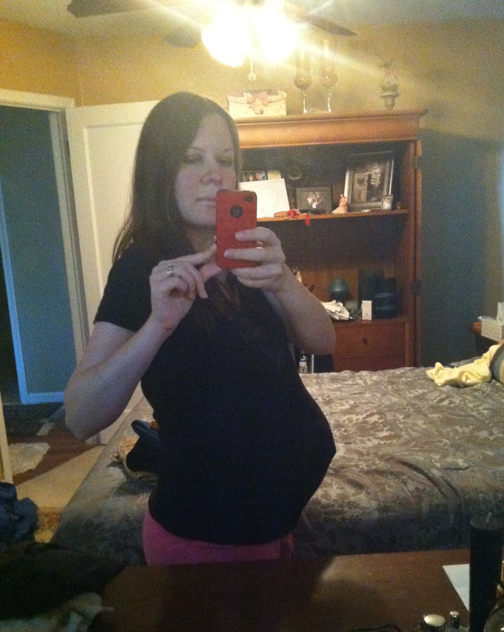 Belly button in or out? out. Baby movement? lots. the super low kicks are so uncomfortable. What I miss? my old body. What I'm looking forward to? my shower, and meeting my little girl.
