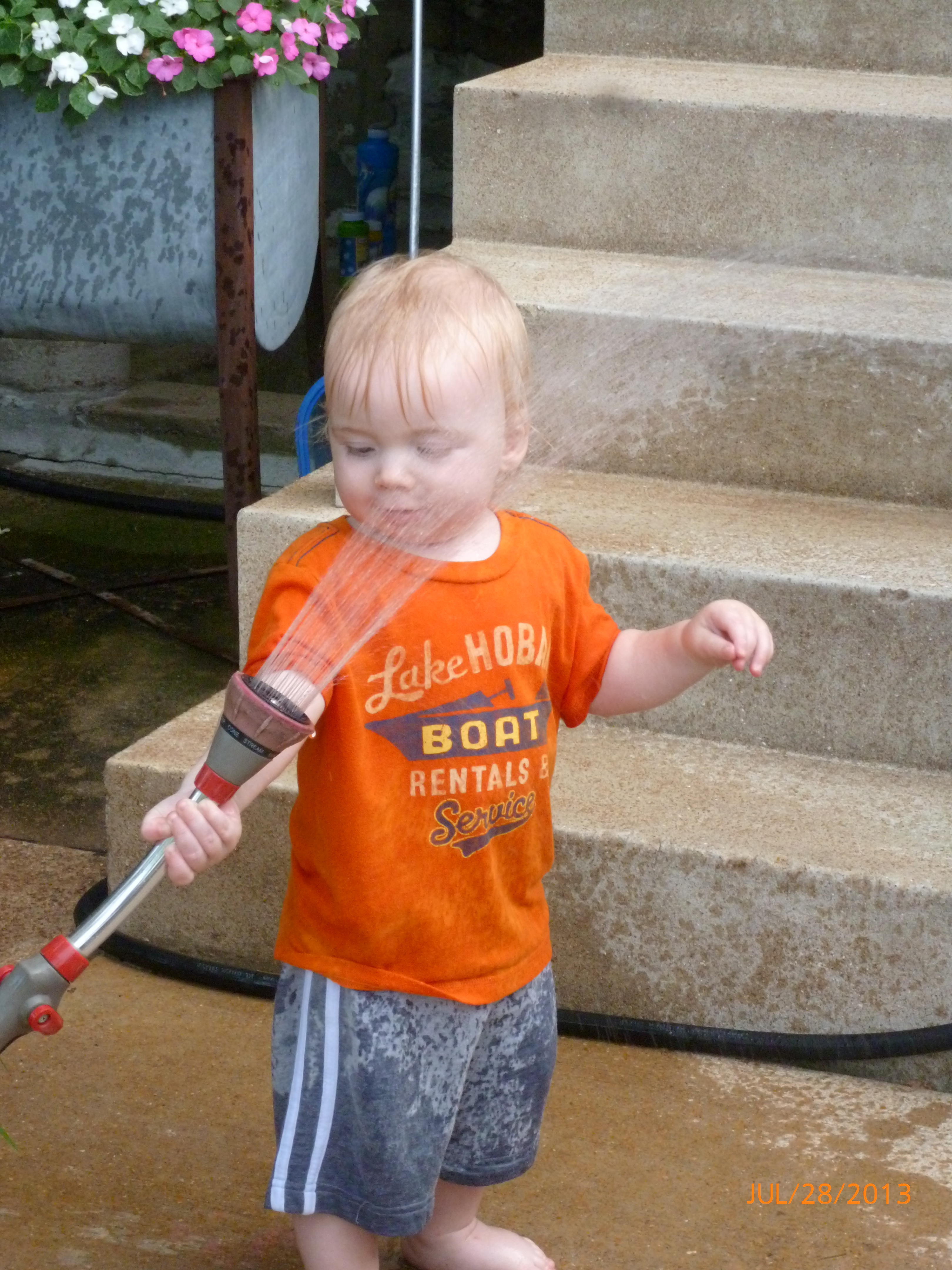 2) I've posted a pic of how our backsteps are and we're trying to think of something to make/buy to keep LO from going up/down them. We spend a lot of time out there and it would be so much easier if these steps weren't an issue. Any suggestions on this?? (You can't see it in the pic, but there is 1 handrail on the right side)