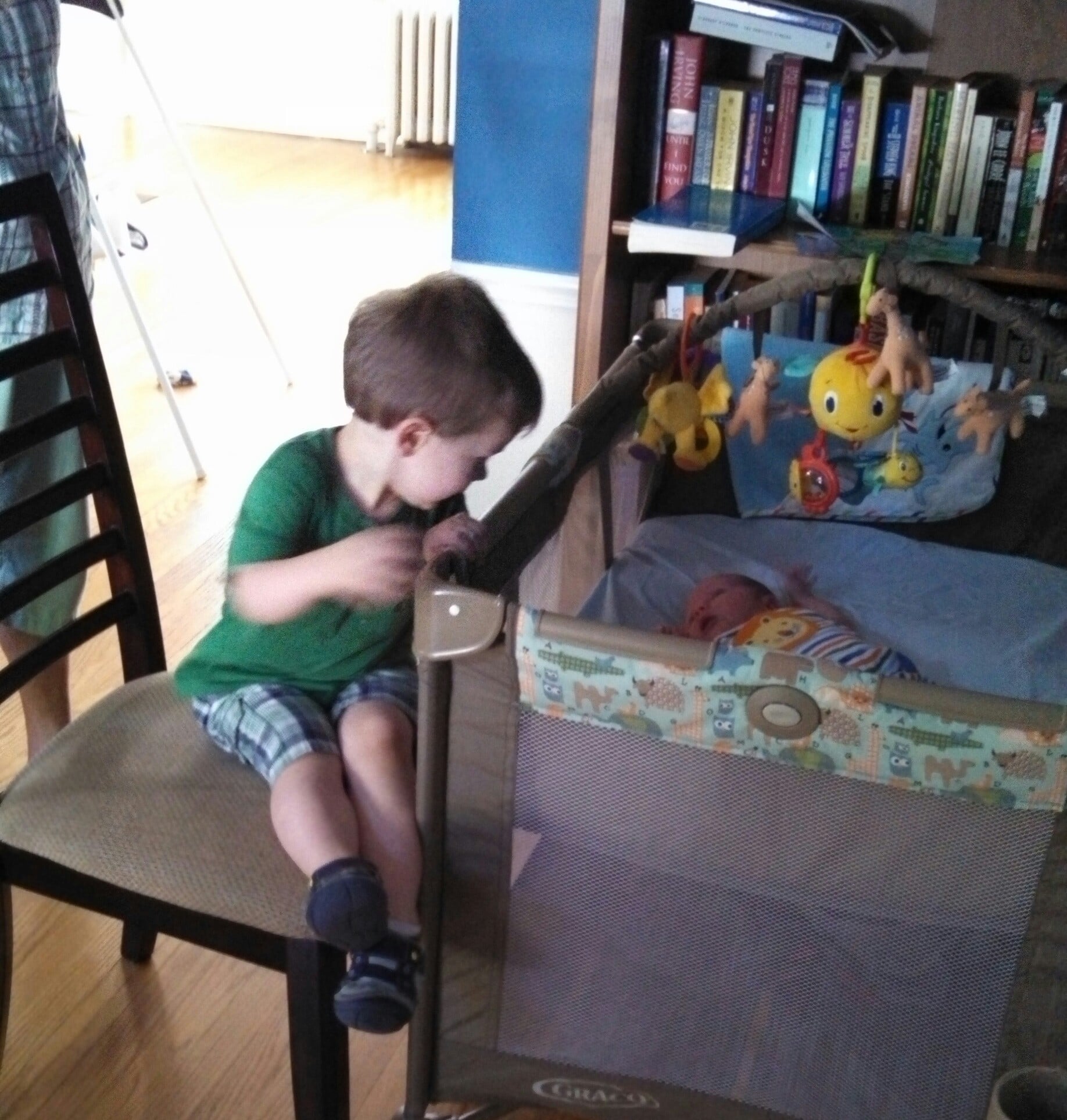 Love the picture of him looking at his brother!