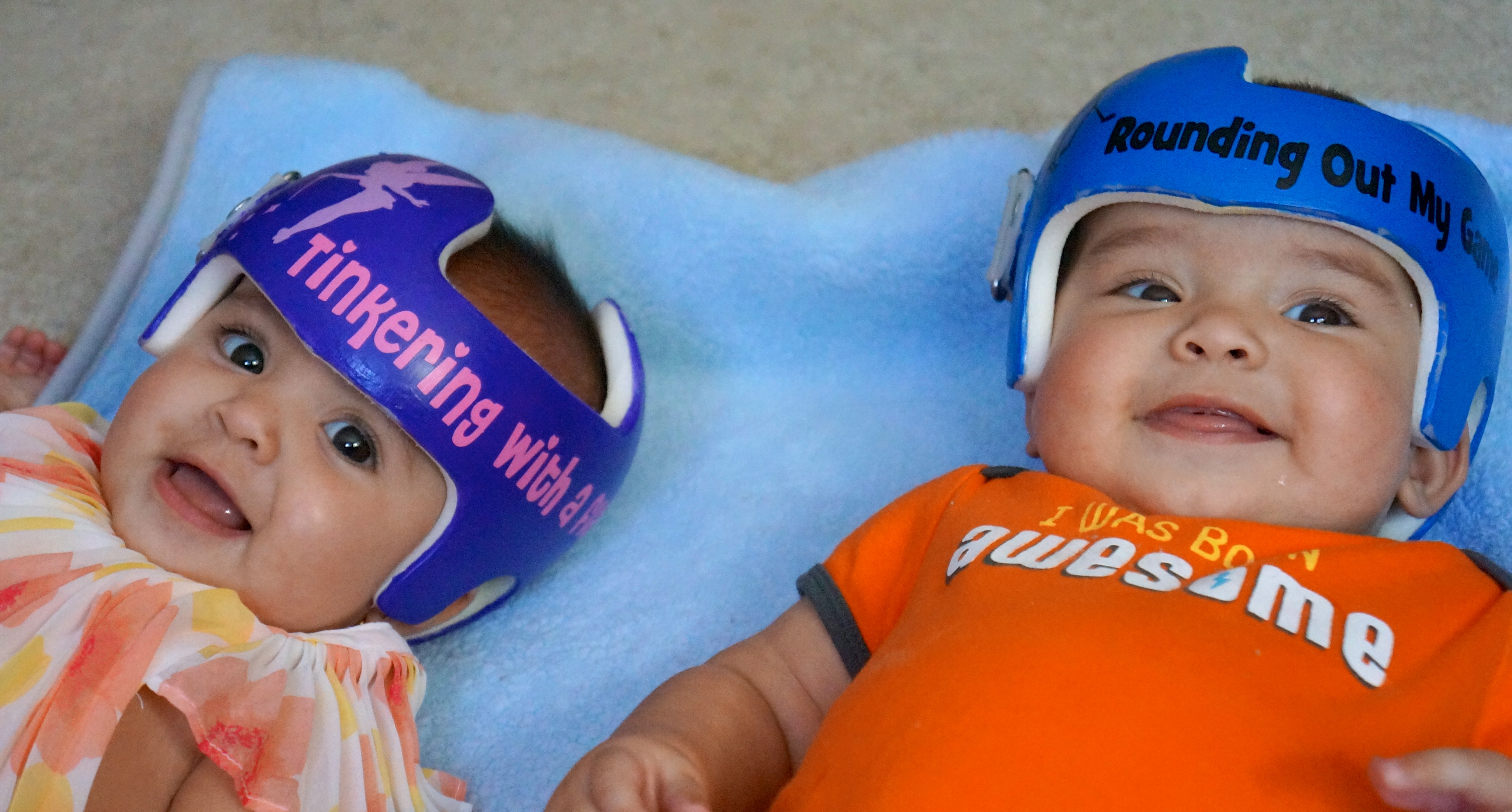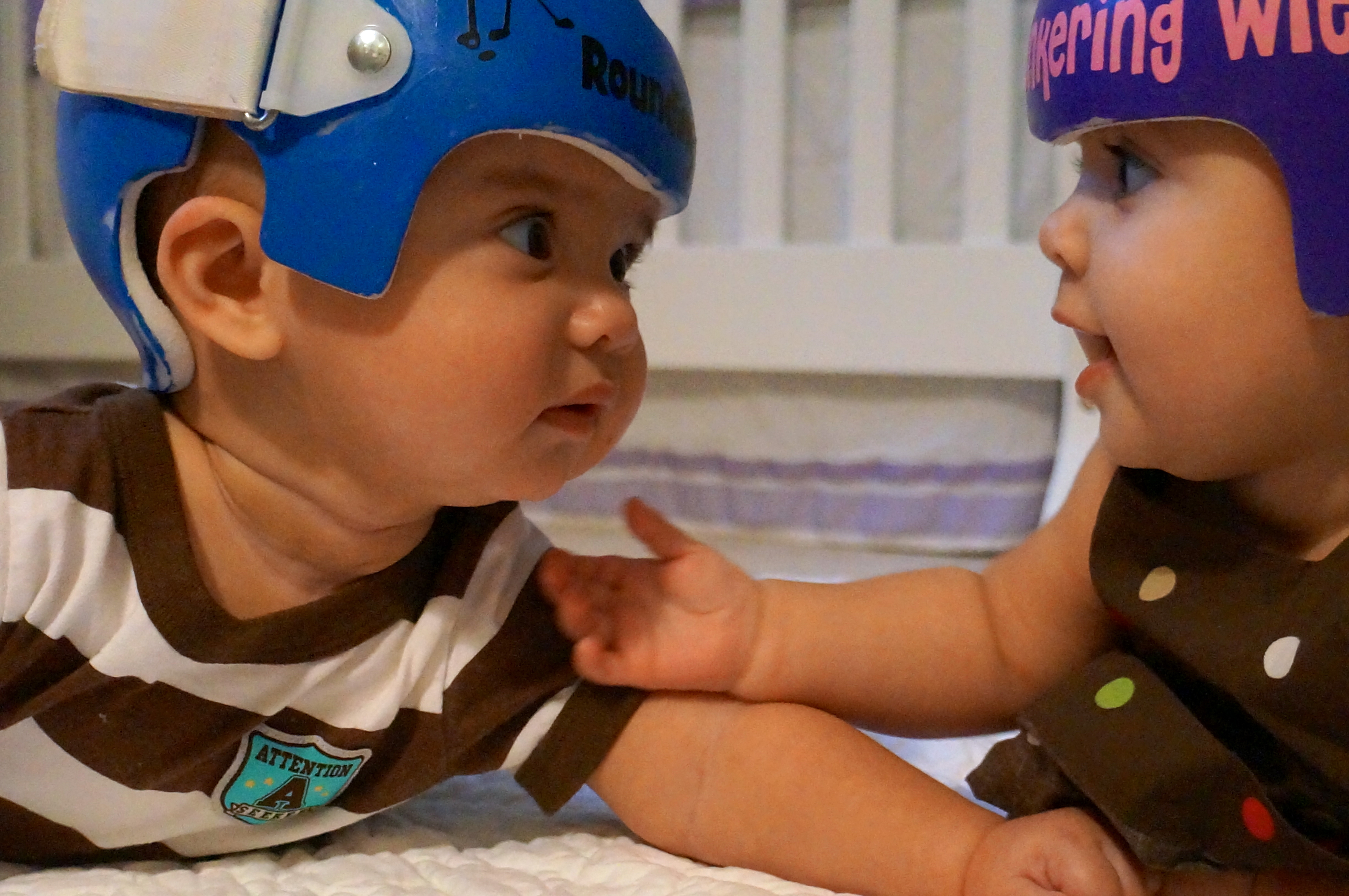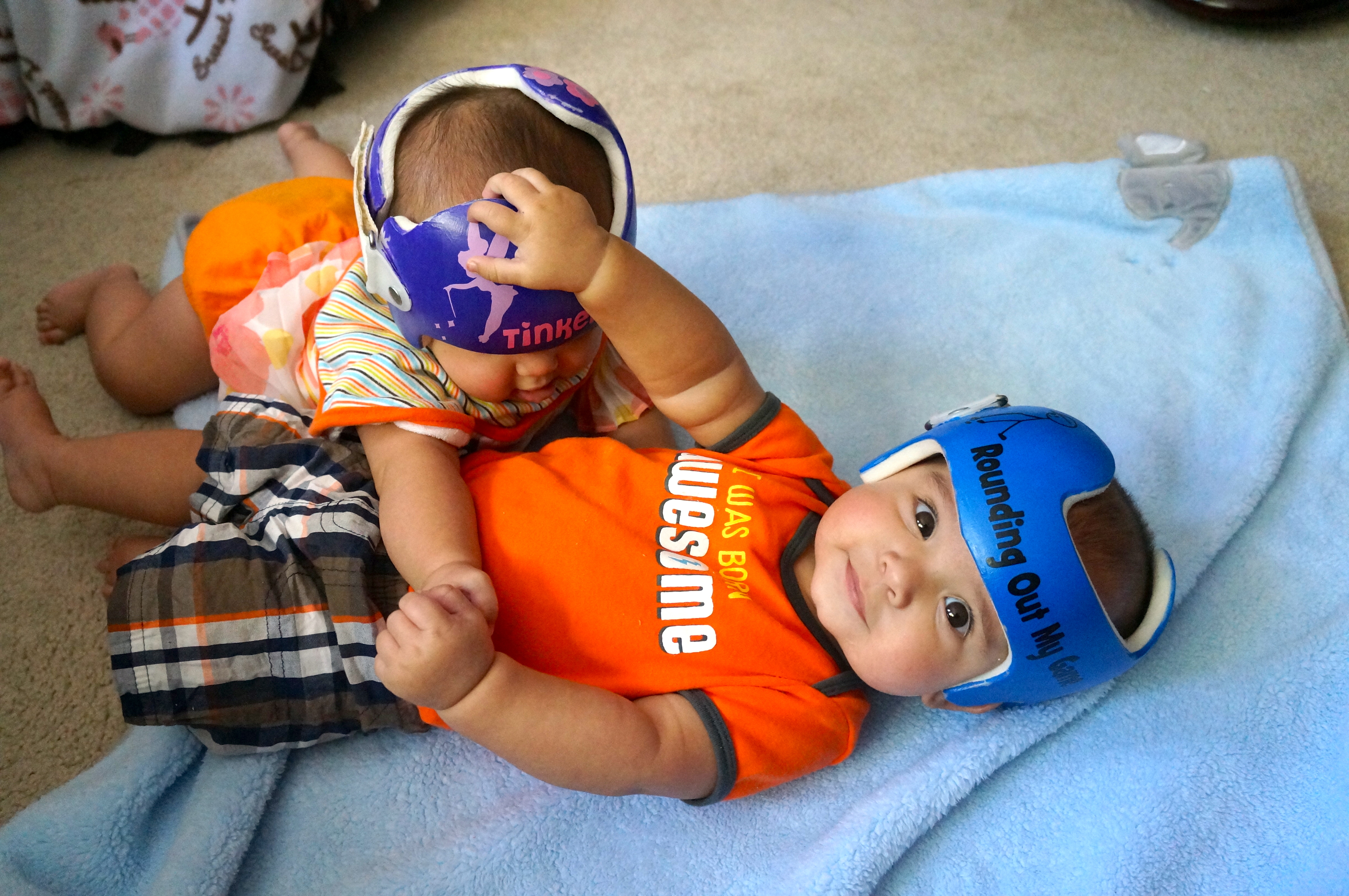 There have been a few discussions about Plagiocephaly so I thought I'd share my helmet babies with you! M&N have had their Doc Bands for almost 4 weeks and their heads look phenomenal! They have another 4 weeks to go.