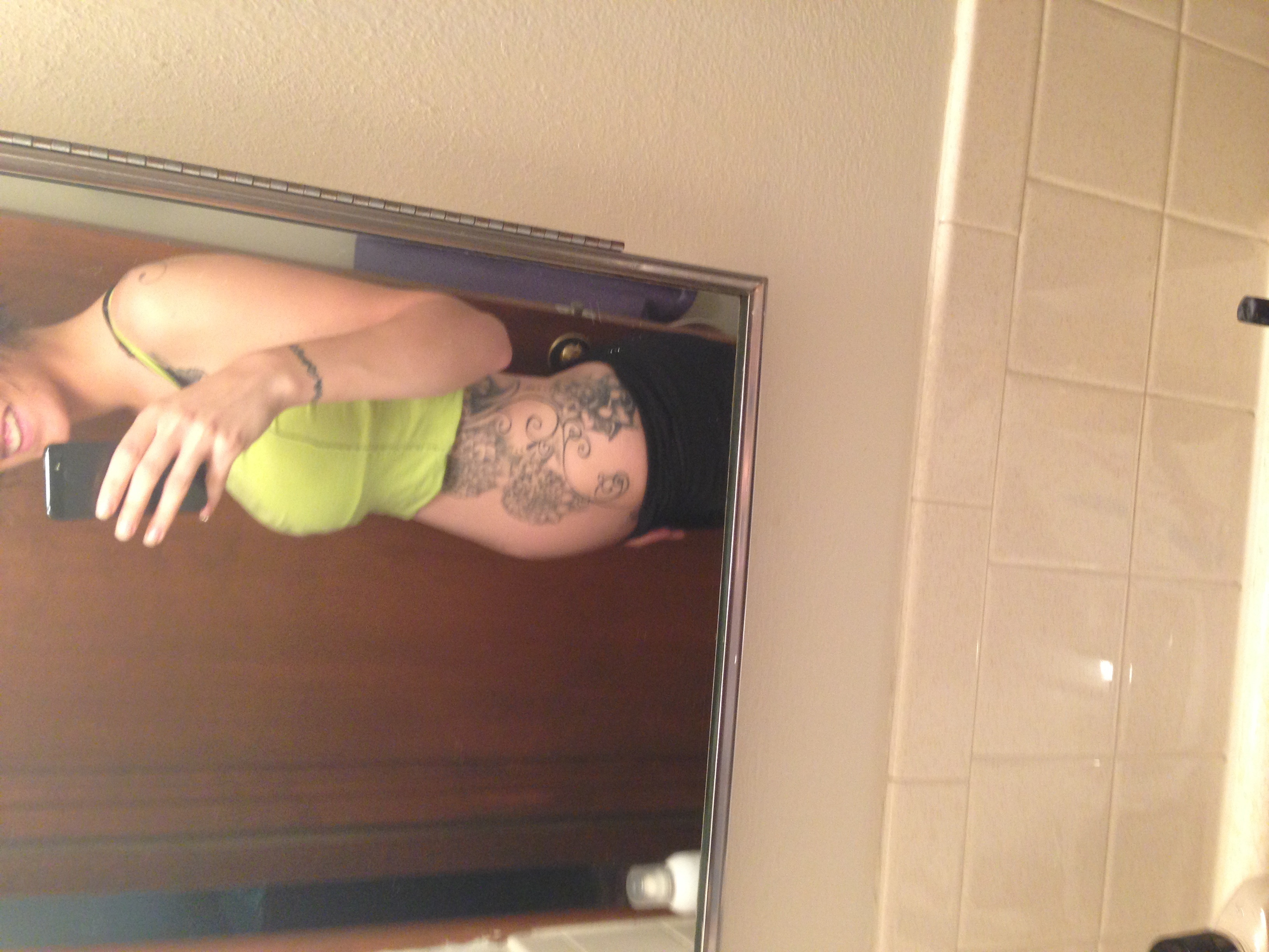 13 weeks 4 days. I'm in denial. I'm pretty sure this is how big I was before I got pregnant, its just a lot harder now. Even if it's just fat/bloat, here it is lol.