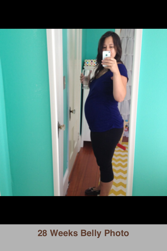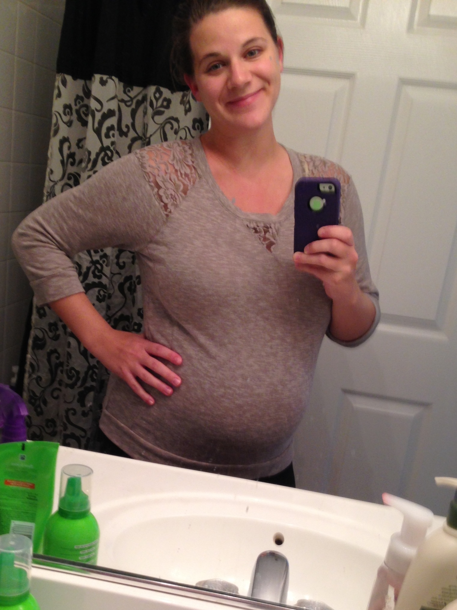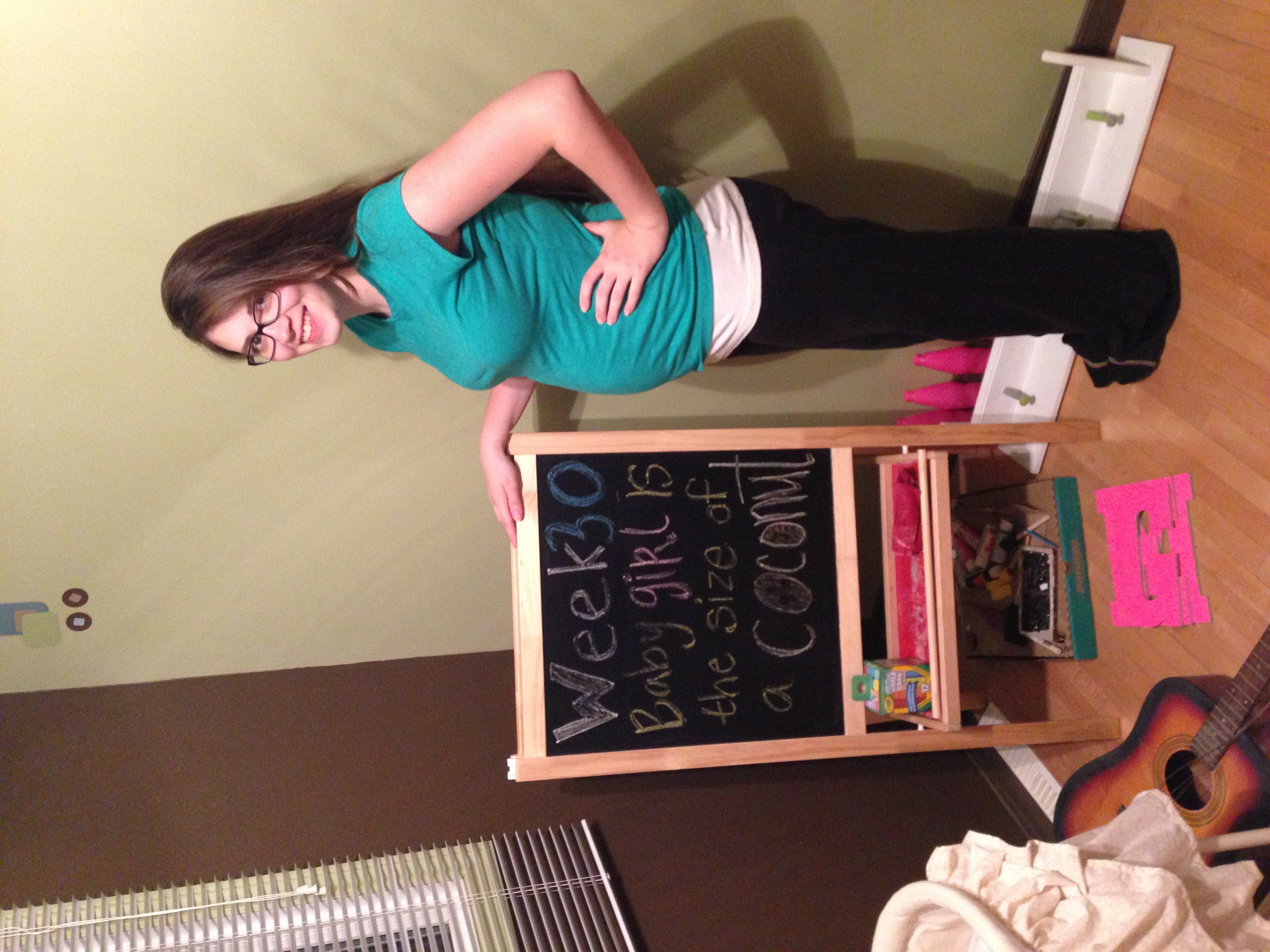 How far along? 30w1d Weight loss/gain: lost a lot in 1st tri, not back up to pre pregnancy weight yet is all I know Symptoms: Insomnia, and back aches Sleep: Up a lot, not too many awesome nights of sleep Best moment this week? Hopefully today, getting another ultrasound Sex/Name of baby: Girl, Georgia Food cravings: Nothing really Belly button in or out? Still in but flattening Baby movement? Tons! What I miss? Nothing really, except feeling thin-ish lol What I'm looking forward to? NBR- FI and I are leaving for Cali on Saturday for our WEDDING next week!! What I'm nervous about: Finances and labor