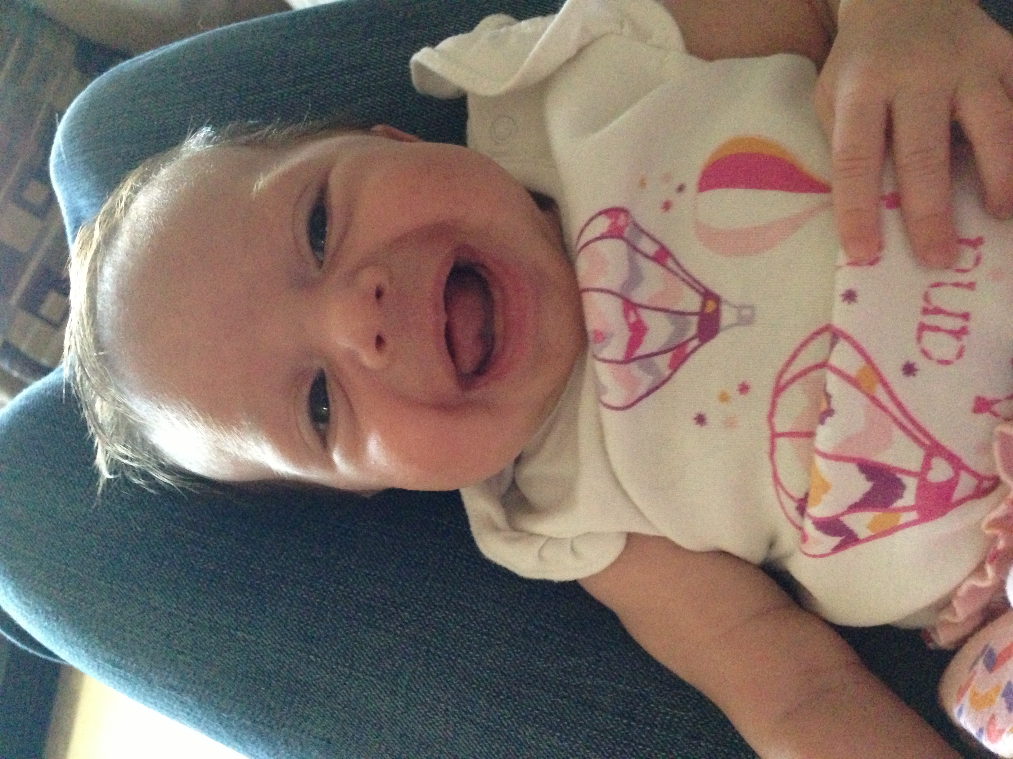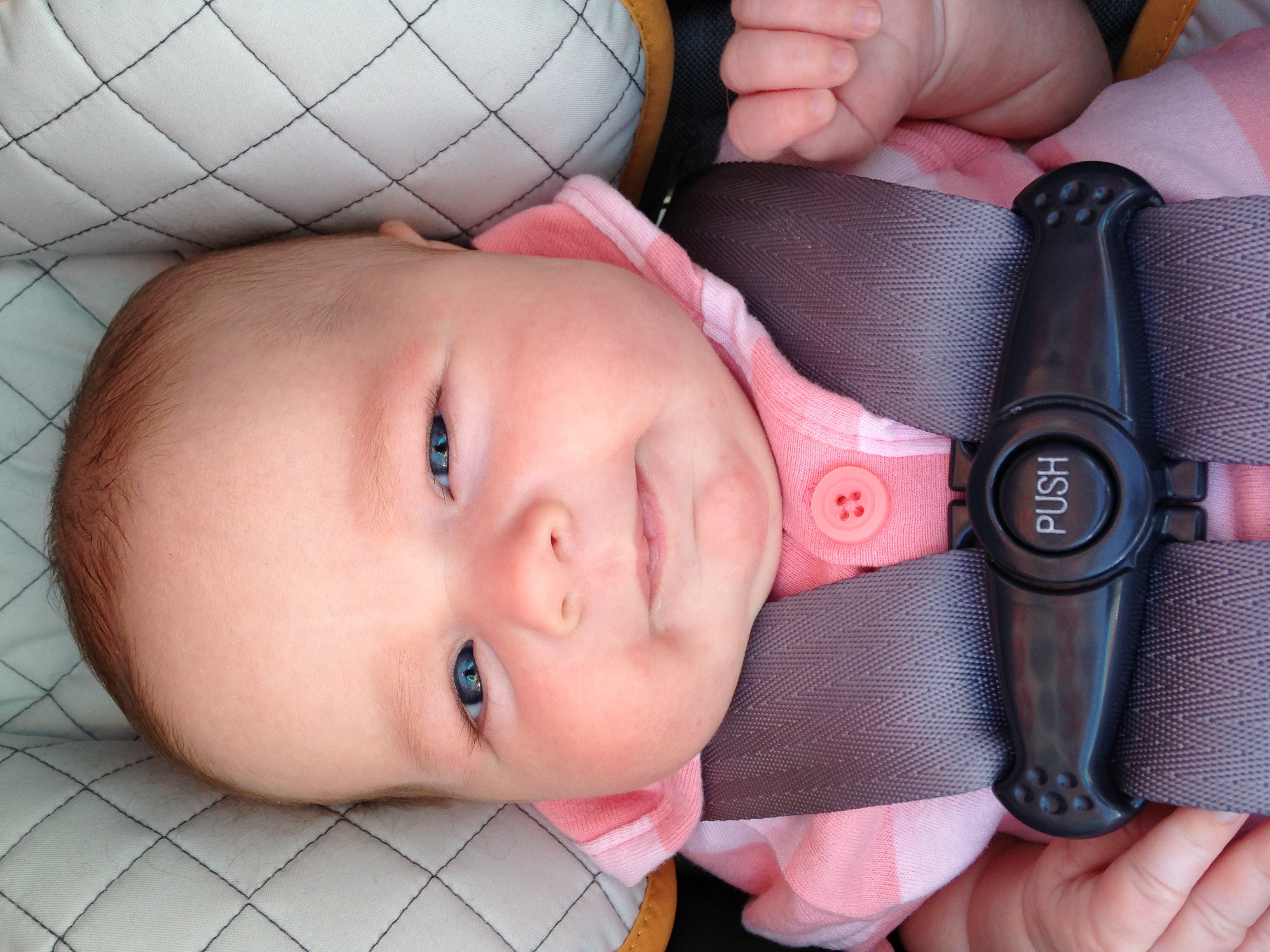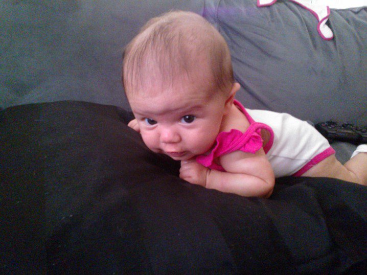 She is going to be 8 weeks on Friday and about 11 pounds. Lots of smiles and cooing lately