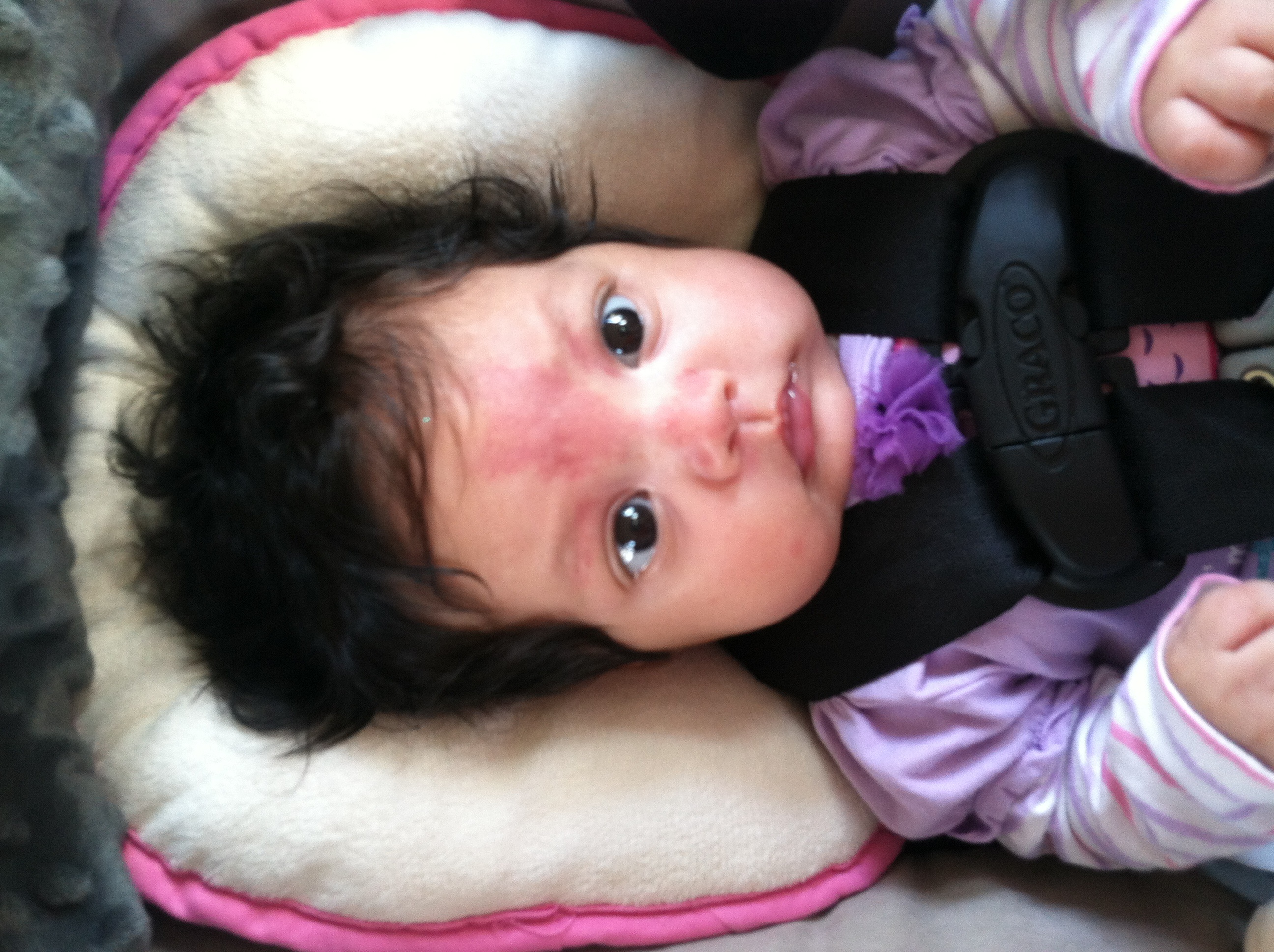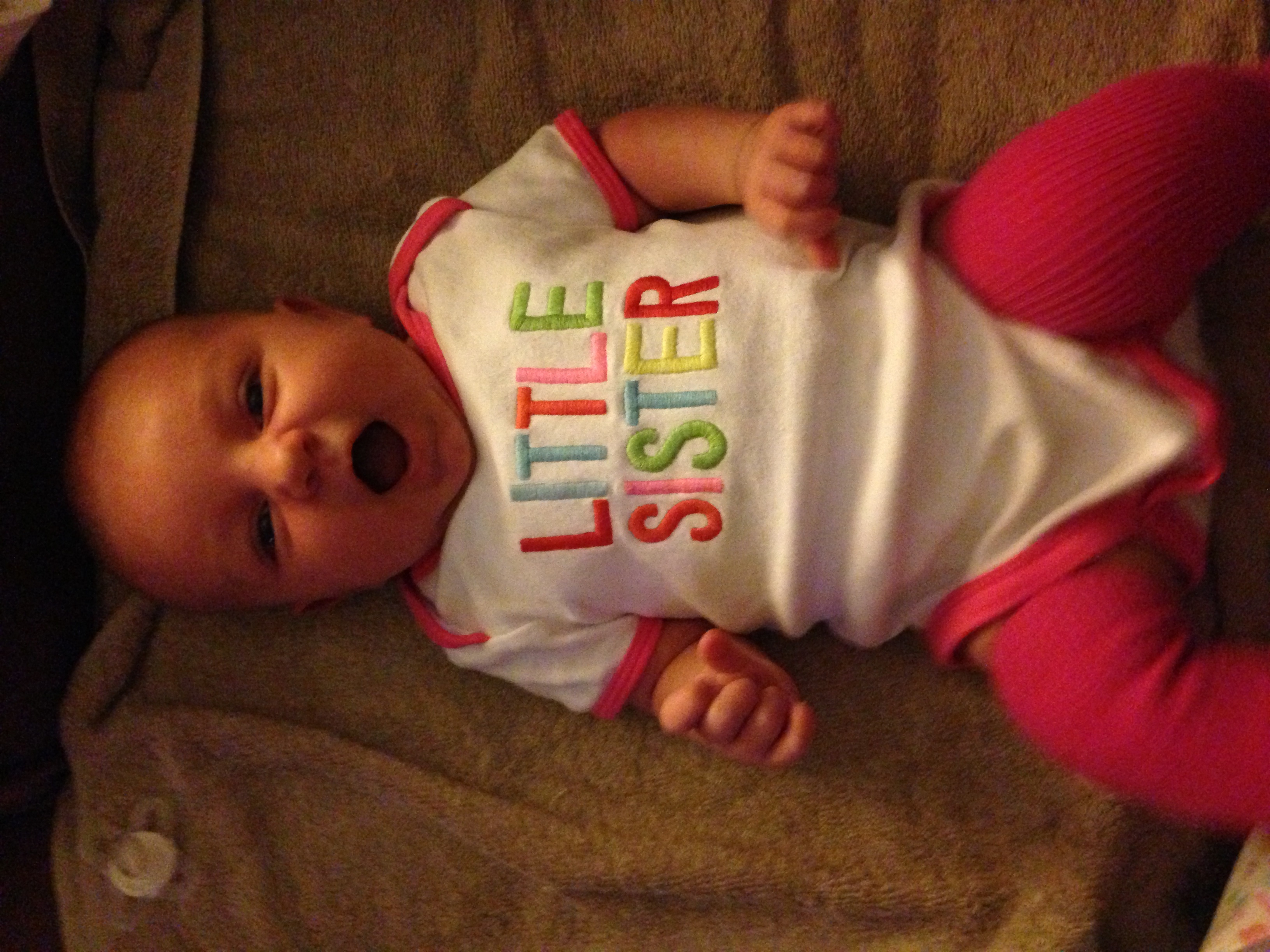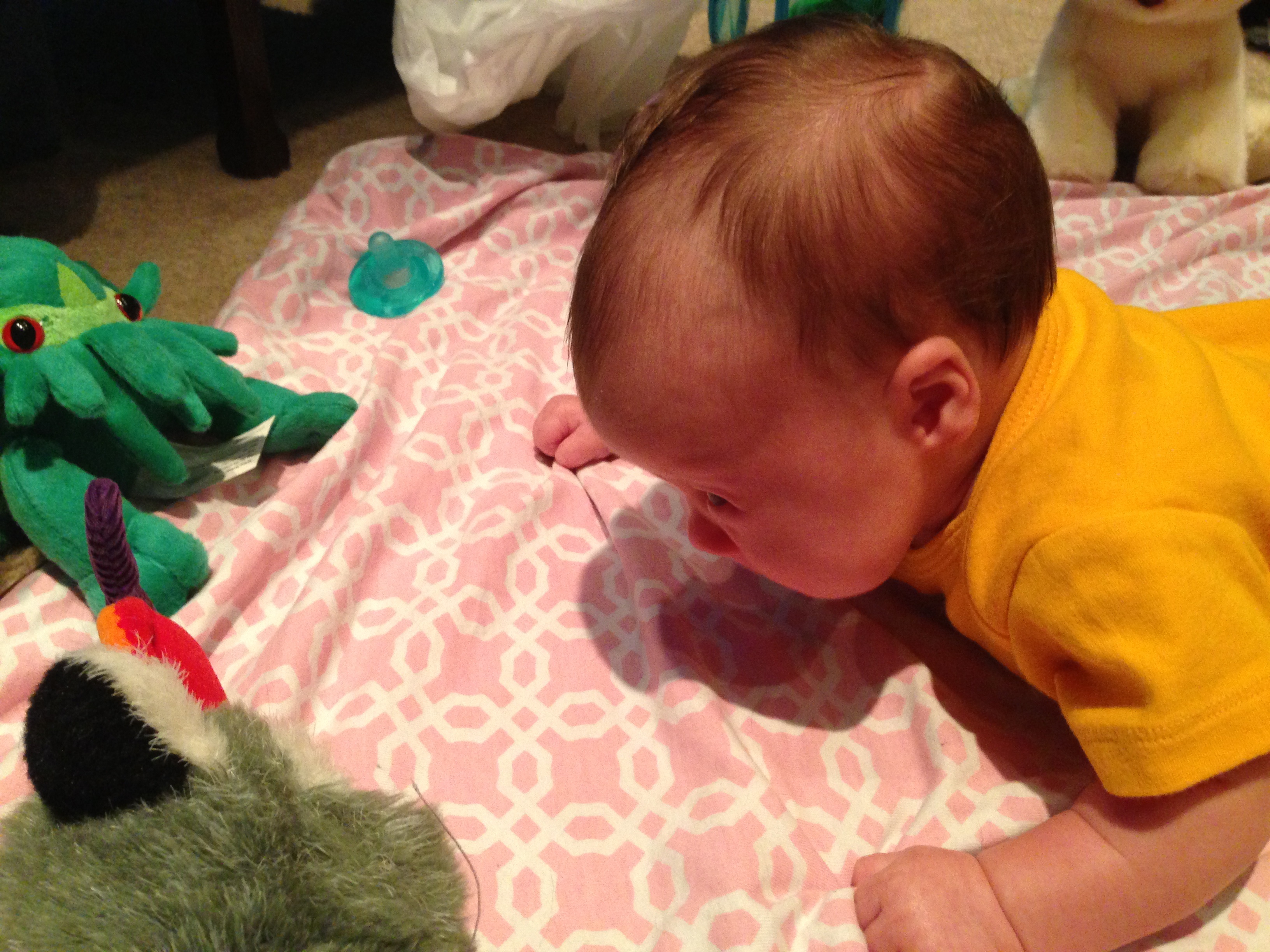 She is going to be 8 weeks on Friday and about 11 pounds. Lots of smiles and cooing lately