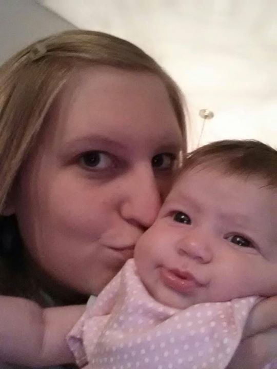 Here we are last night. She kept falling asleep during her bottle so I was trying everything to keep her awake...kissing her while burping her seemed to wake her up