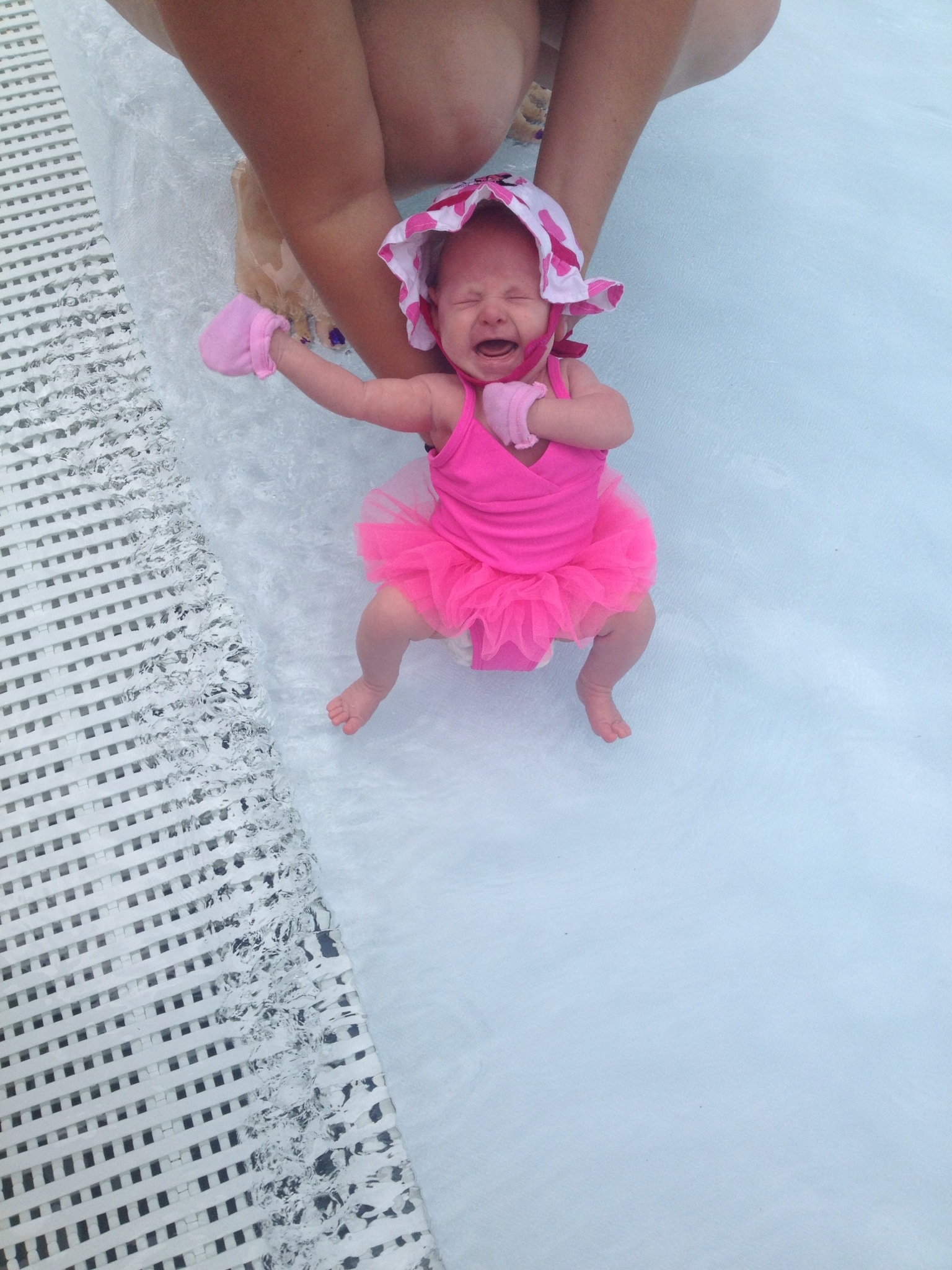 She didn't like it when her toes were dipped into the water, lol! She was one day shy of 6 weeks. She is somewhere between 8lbs and 9lbs.