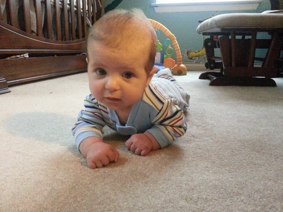 GTKY: H is laughing more often now and he's scooting around when he's on his belly. DH put him on one side of the crib on his back, H flipped over, and when we looked at the monitor, he was on the other side of the crib.