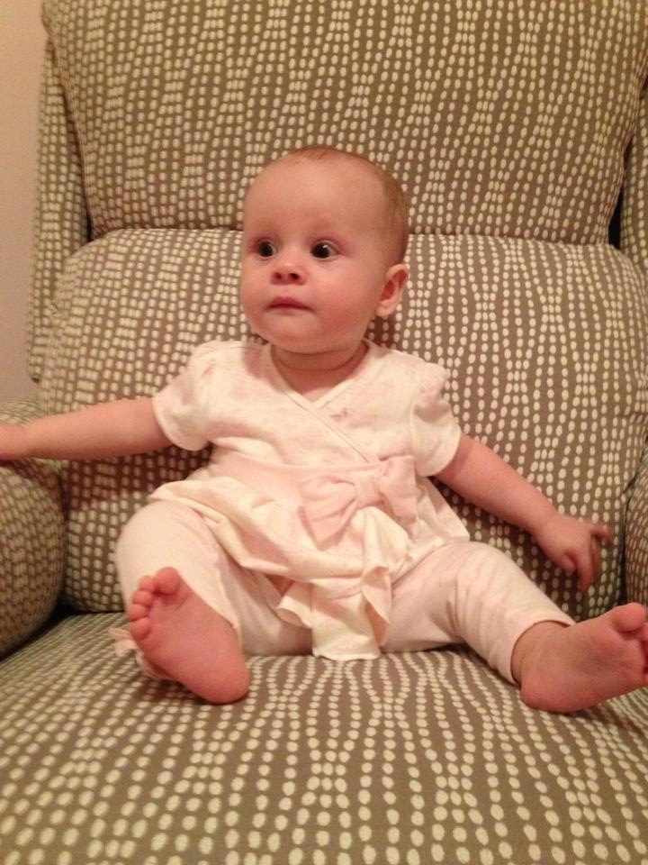 I haven't been around much lately because work has been crazy! I have a few photos to share... The last two are A's 7 month photos and the first one is A chilling on her chair in her nursery like a big girl. The cutest thing she has been doing lately is dancing to music. She can't get enough of it! The music turns on and her little leg starts tapping the floor.. It is just adorable.