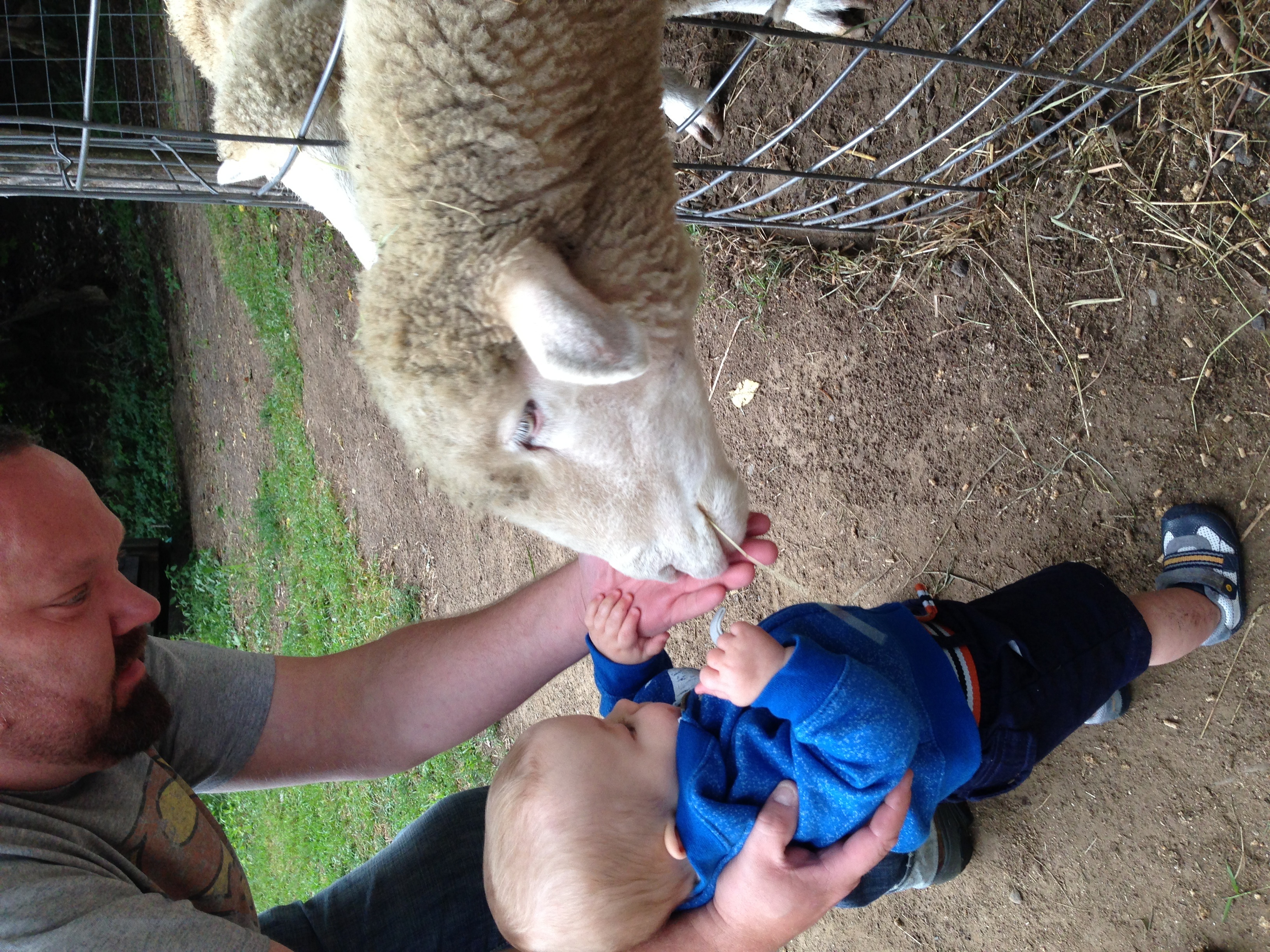 • We took McNugget to the farm today for an early birthday treat (since mil is coming up tomorrow, it's our last day for just the three of us). He ran to all the animals pointing and yelling "cat". And, of course, we shared an ice cream cone from the dairy store.