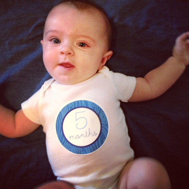 • I wish I could post a video. DH was shaking H around (not violently) and he was laughing so much! We were cracking up for a good 10 minutes ourselves. H turned 5 months on the first.