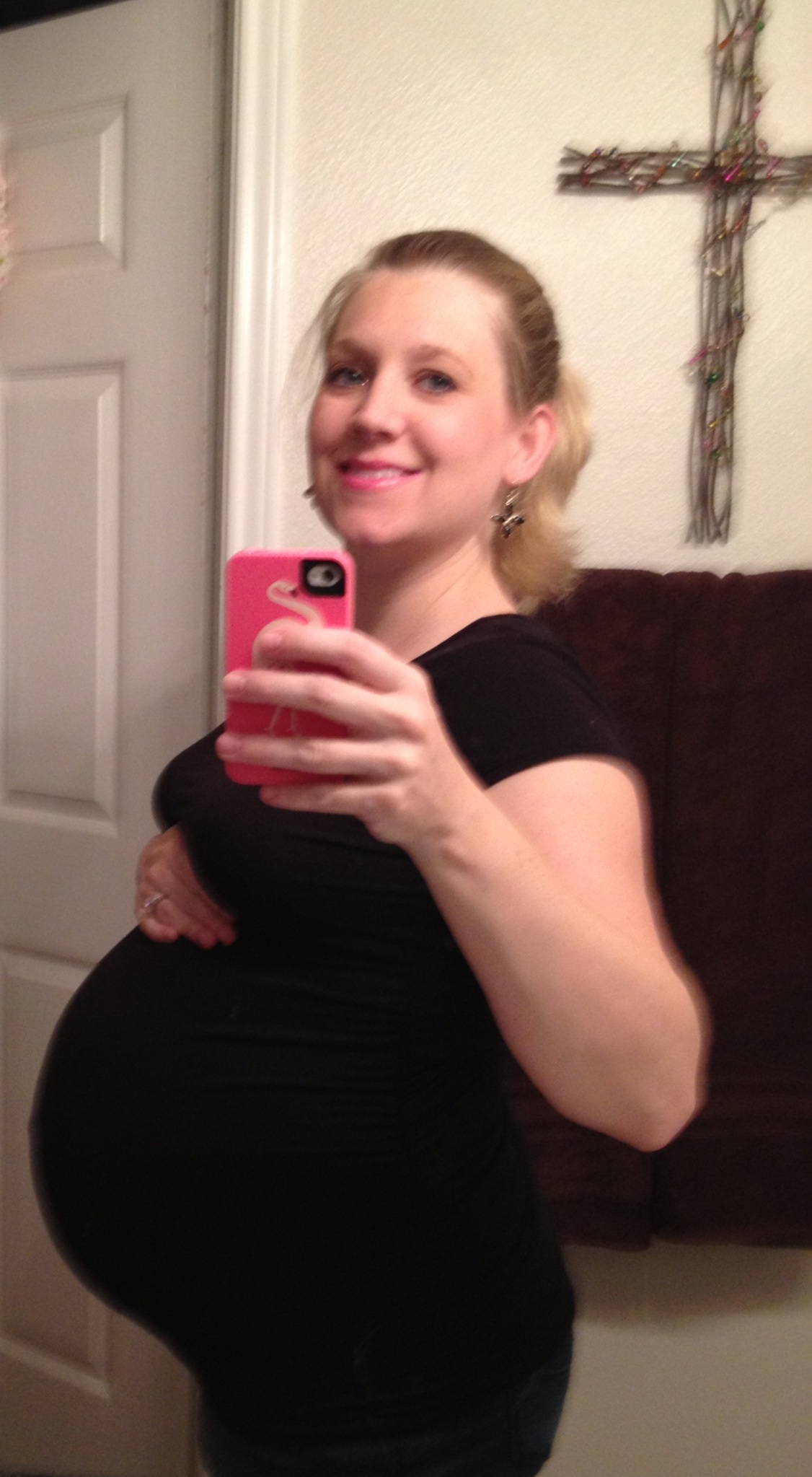 33 weeks and up more lbs than I would like. Sleeping like a log since I am recently exhausted all the time. No real cravings other than an over active sweet tooth. You guys are all looking so good!