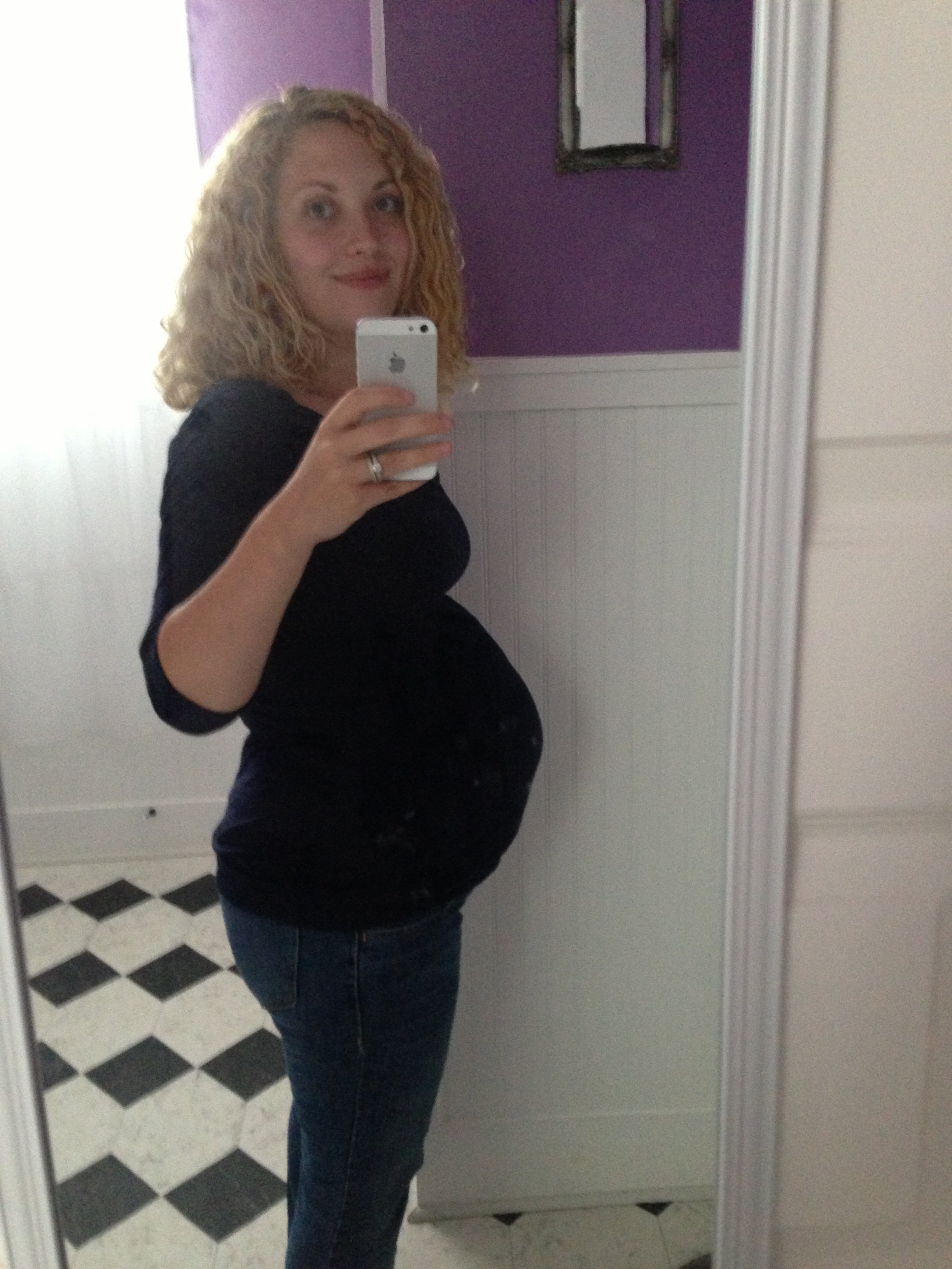 31 weeks with baby boy Henry! (32w on Friday) I have no idea how much I've gained and I don't care I'm exhausted but I'm so uncomfortable it's hard to sleep well. We have our first birthing class tonight and I can't wait! My dad was visiting from NJ this past week and brought me REAL bagels so that's been my biggest craving...with lots of cream cheese. I miss giving myself a proper pedicure without huffing and puffing. I can't wait to hold my little boy! I'm nervous about delivery...hoping this class will help me feel more prepared!