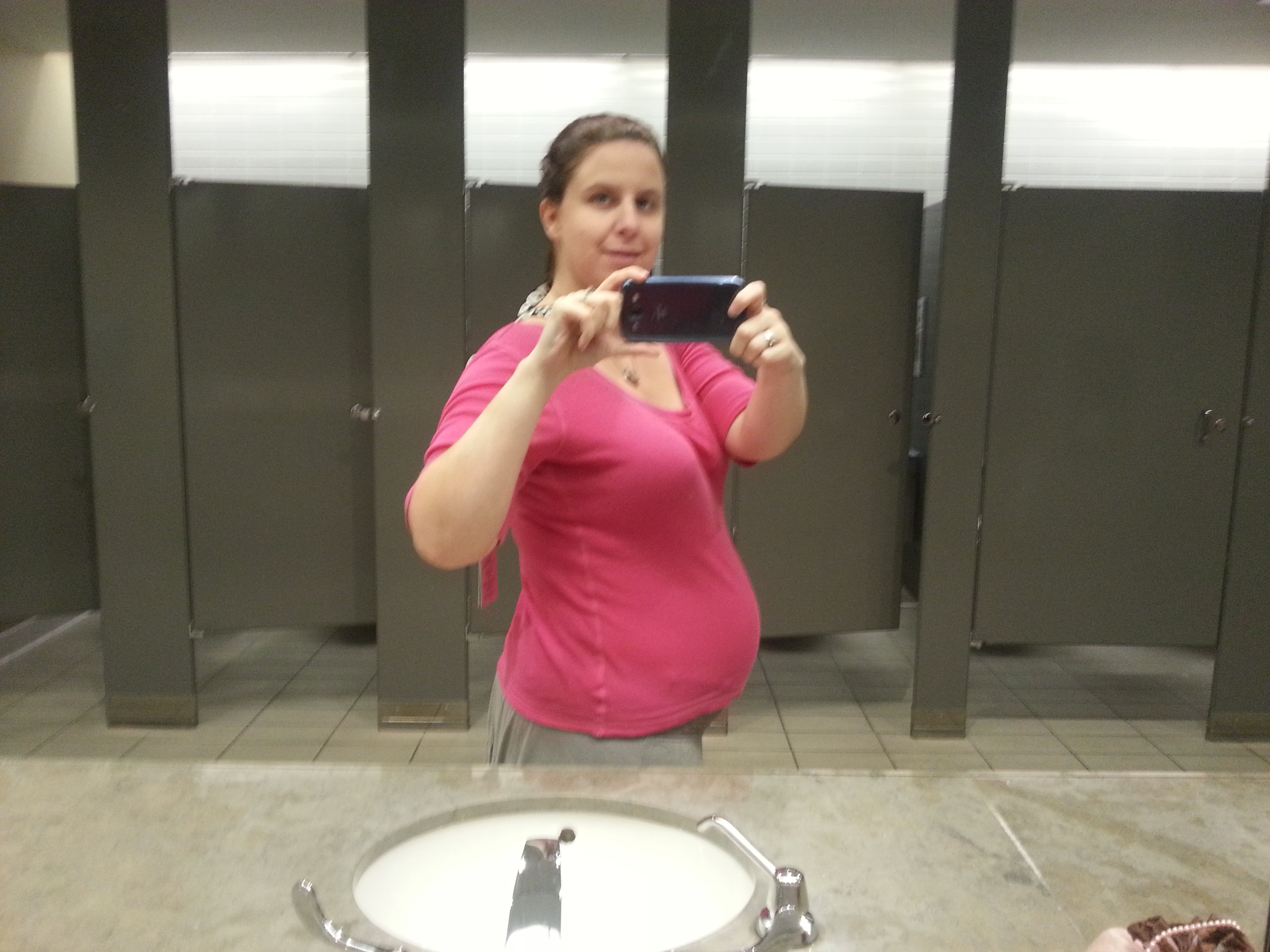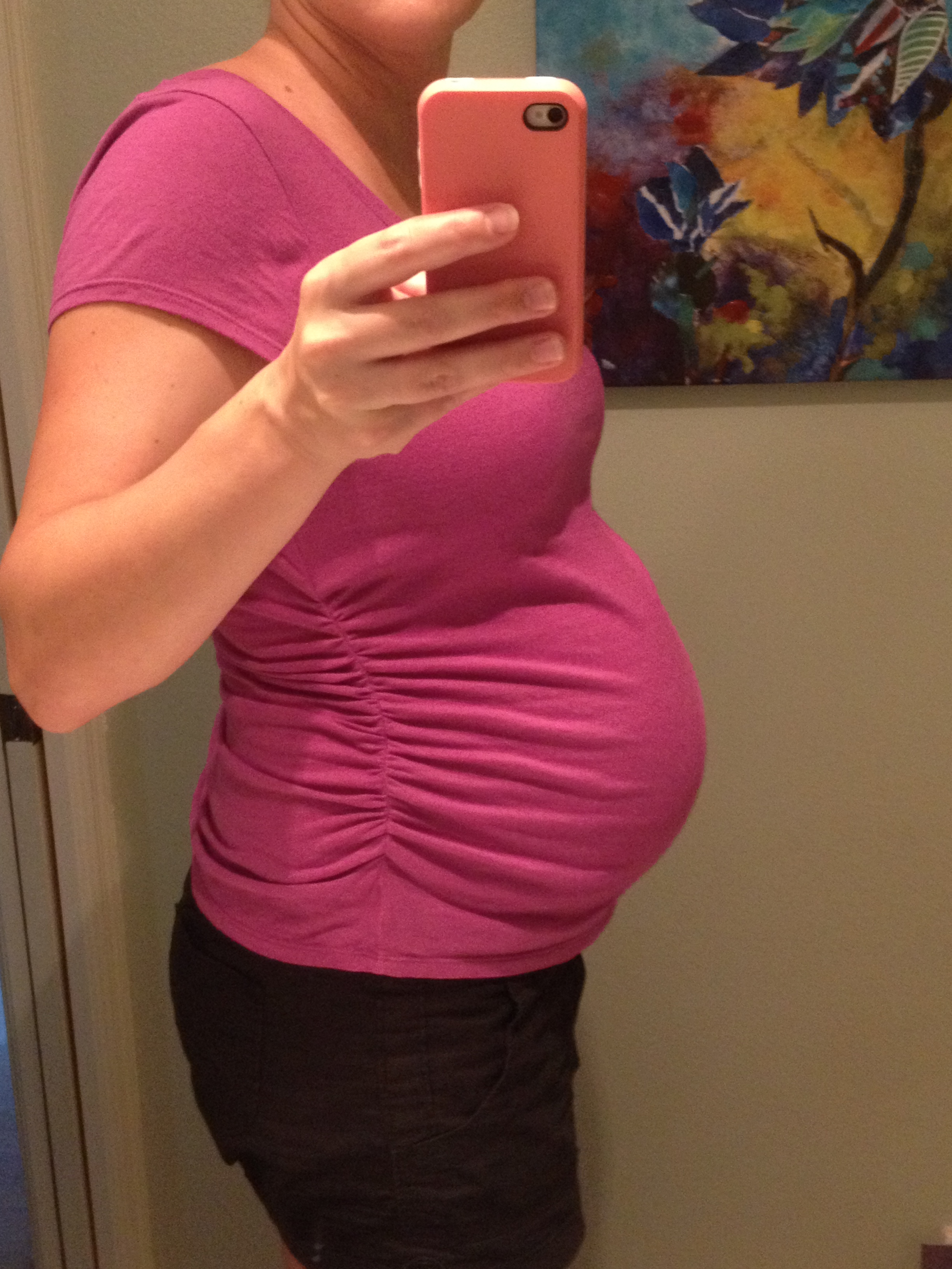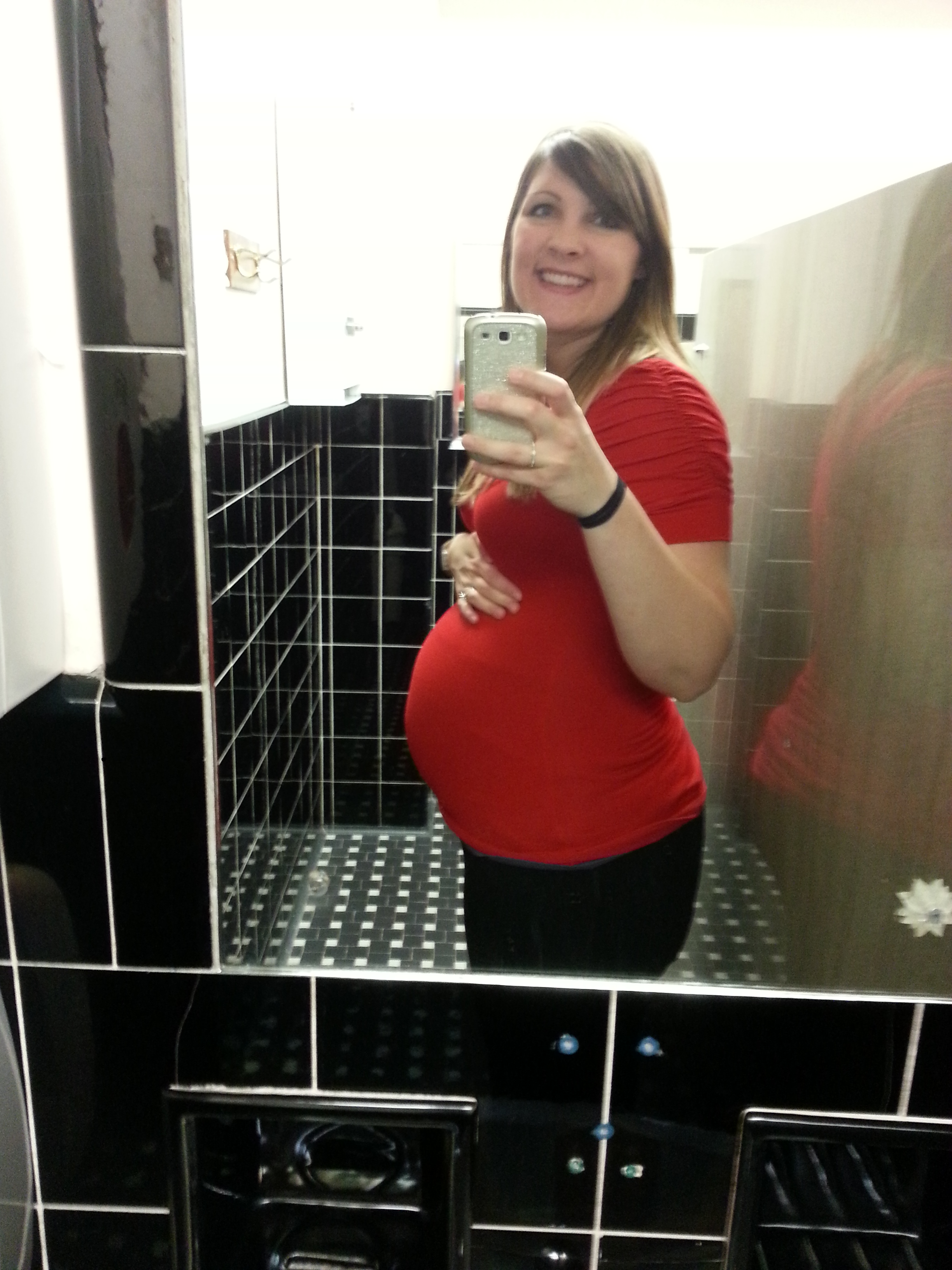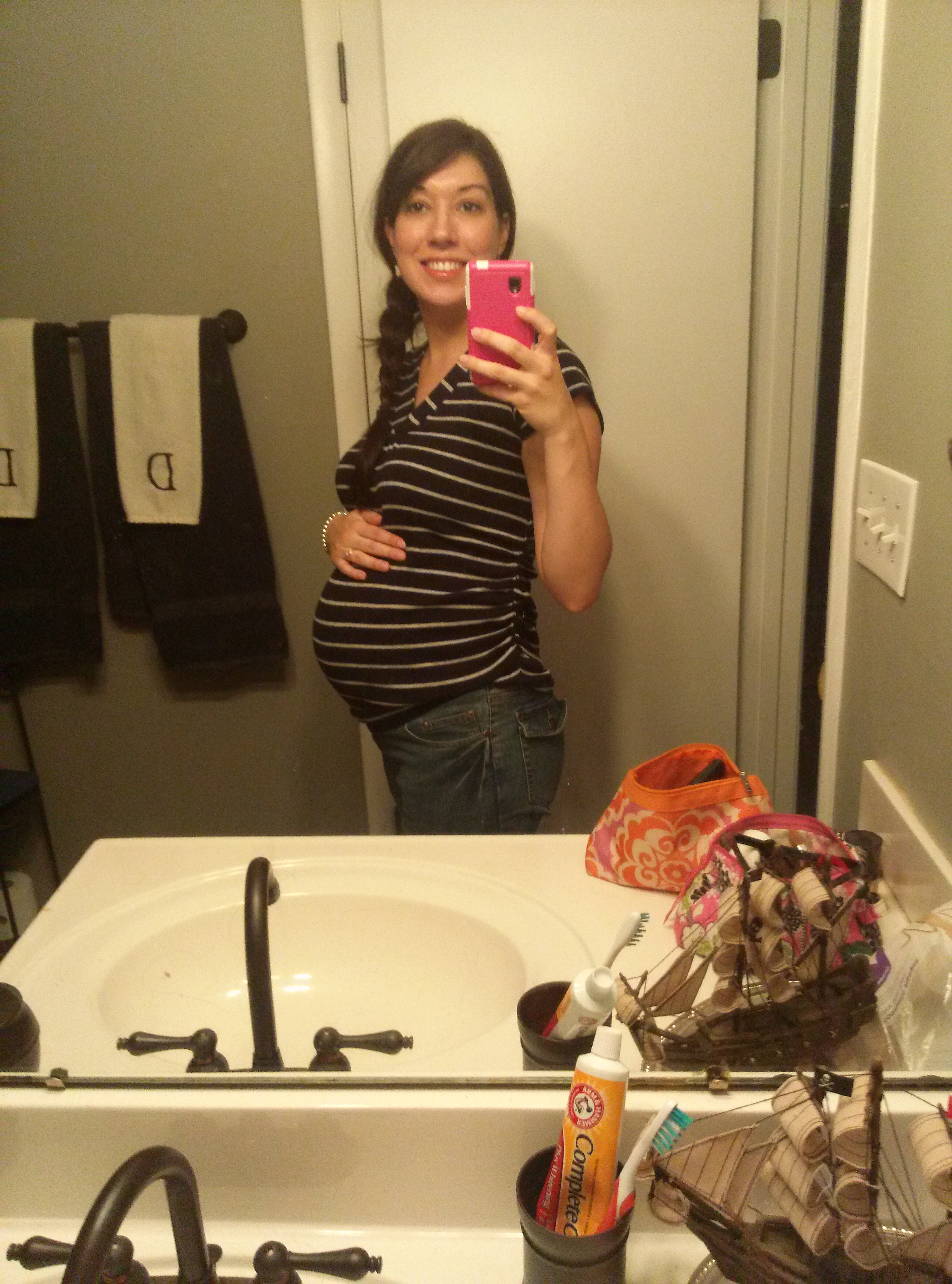 Took this a few minutes ago, 28w1d... Getting ready for my Dr appt and GD test. I'm fully prepared to fail cause I refused to go without my coffee this morning - the nurses and midwife wouldnt like me if I didn't drink coffee.