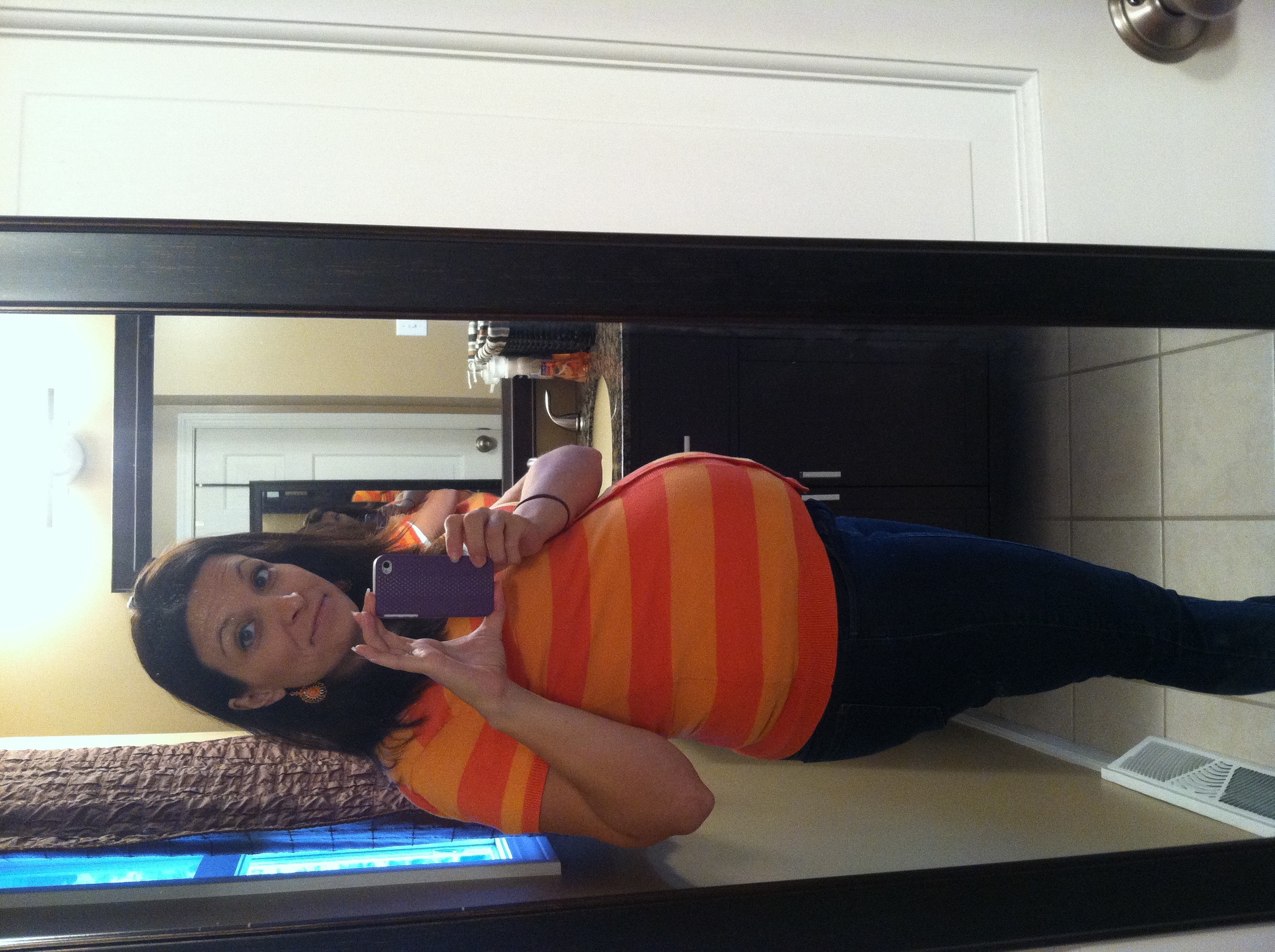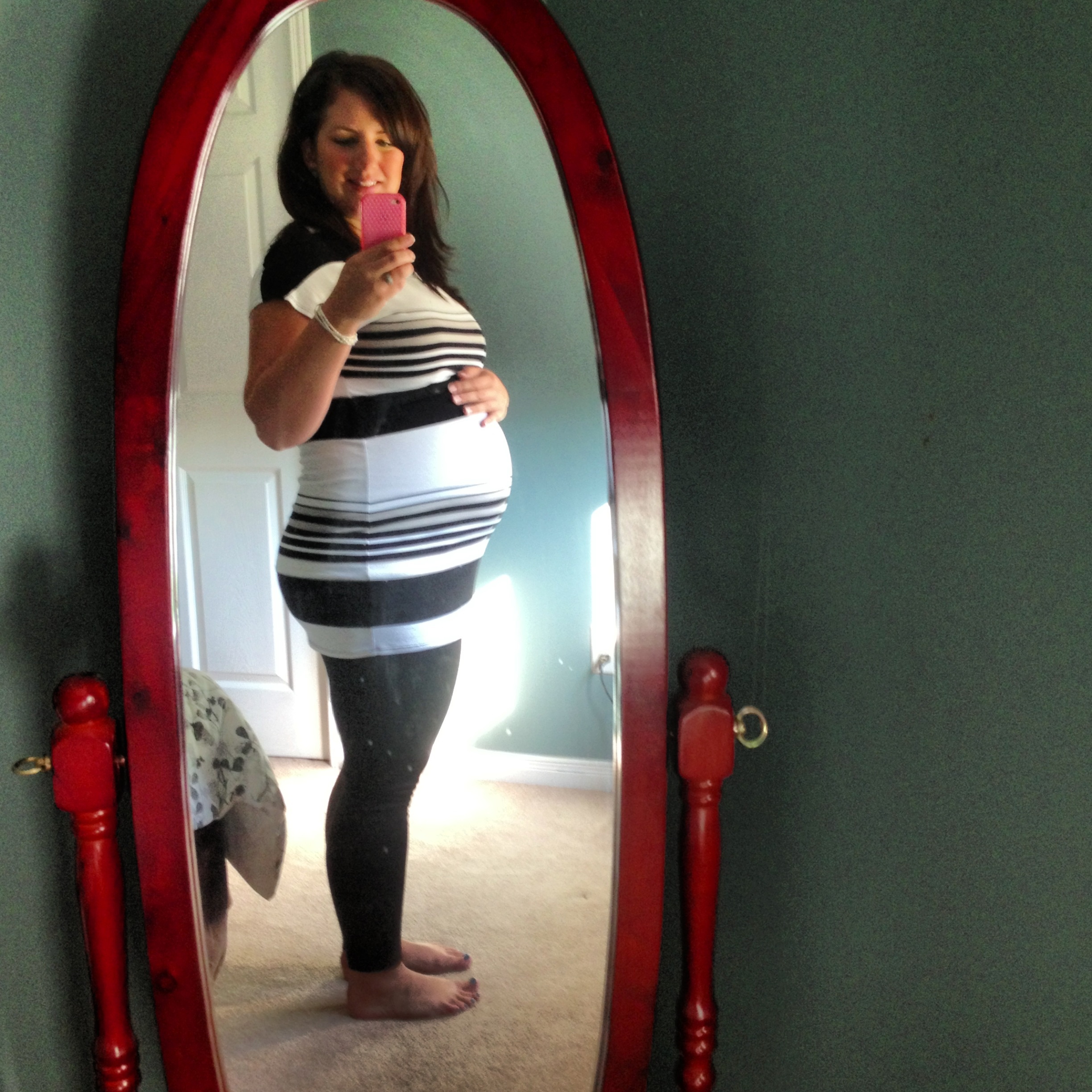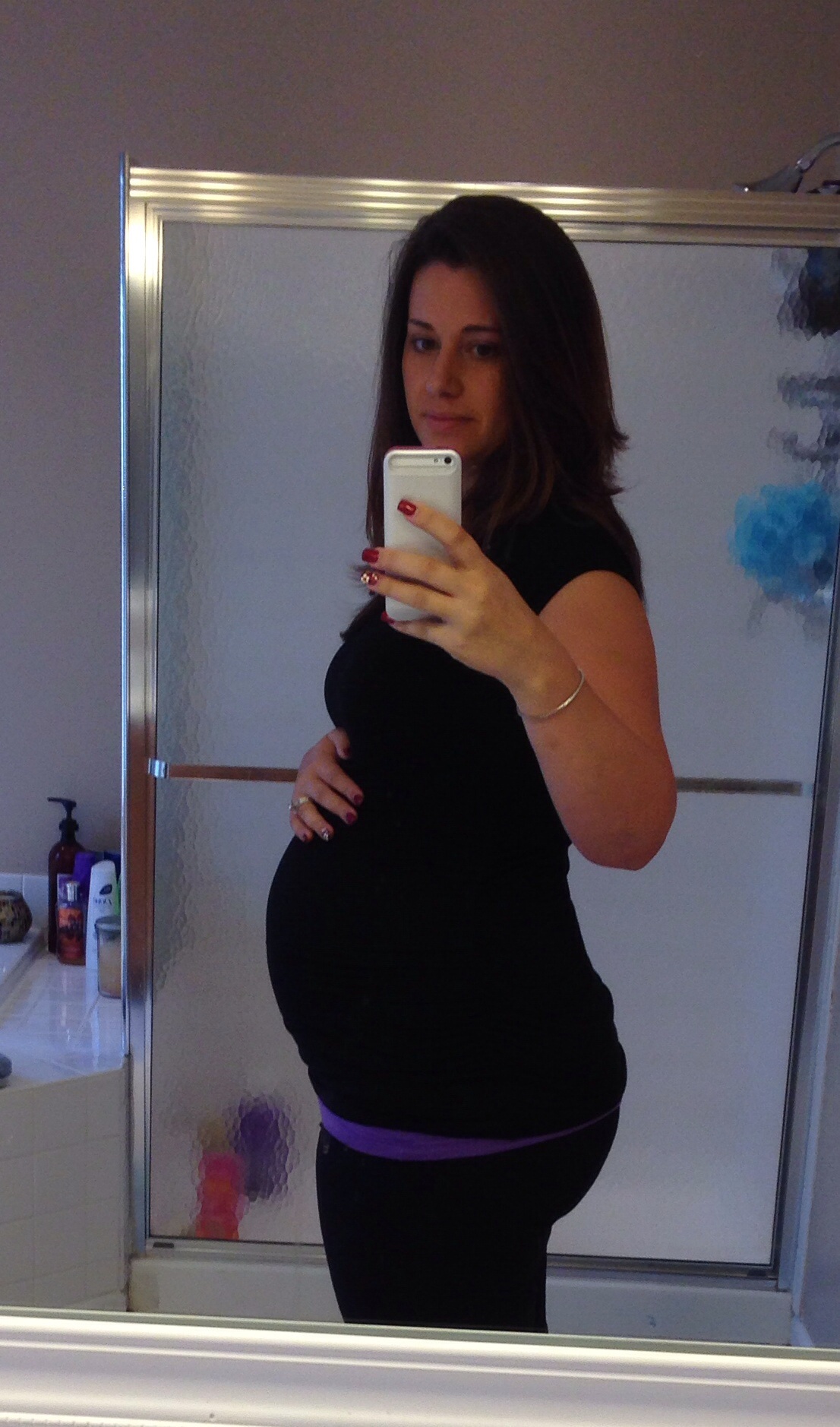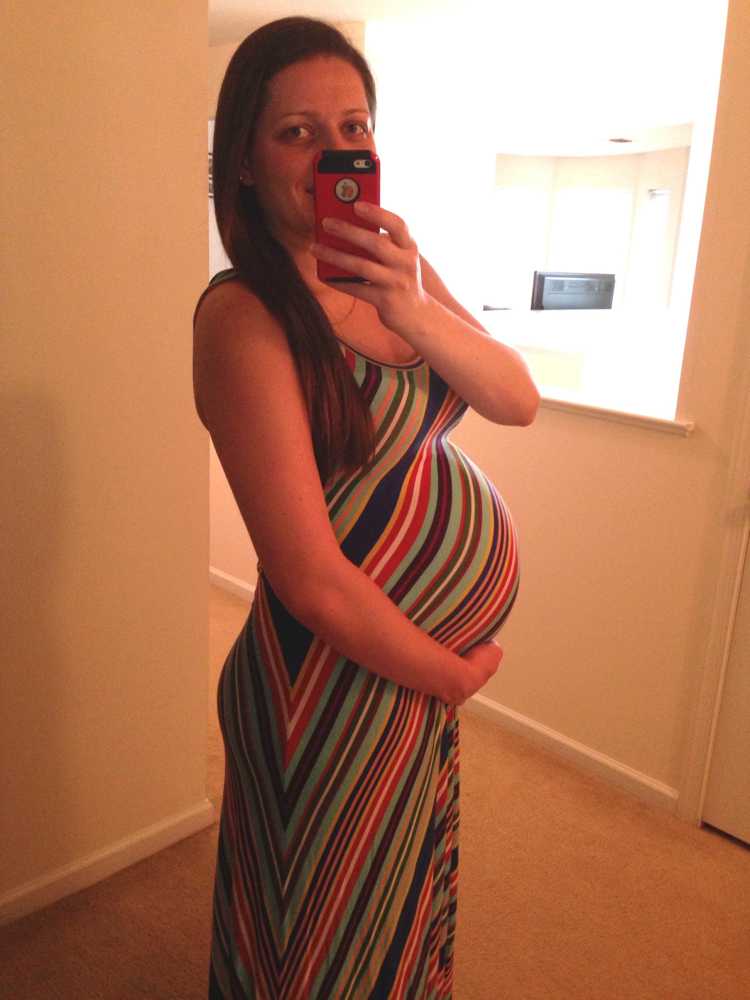 Took this a few minutes ago, 28w1d... Getting ready for my Dr appt and GD test. I'm fully prepared to fail cause I refused to go without my coffee this morning - the nurses and midwife wouldnt like me if I didn't drink coffee.