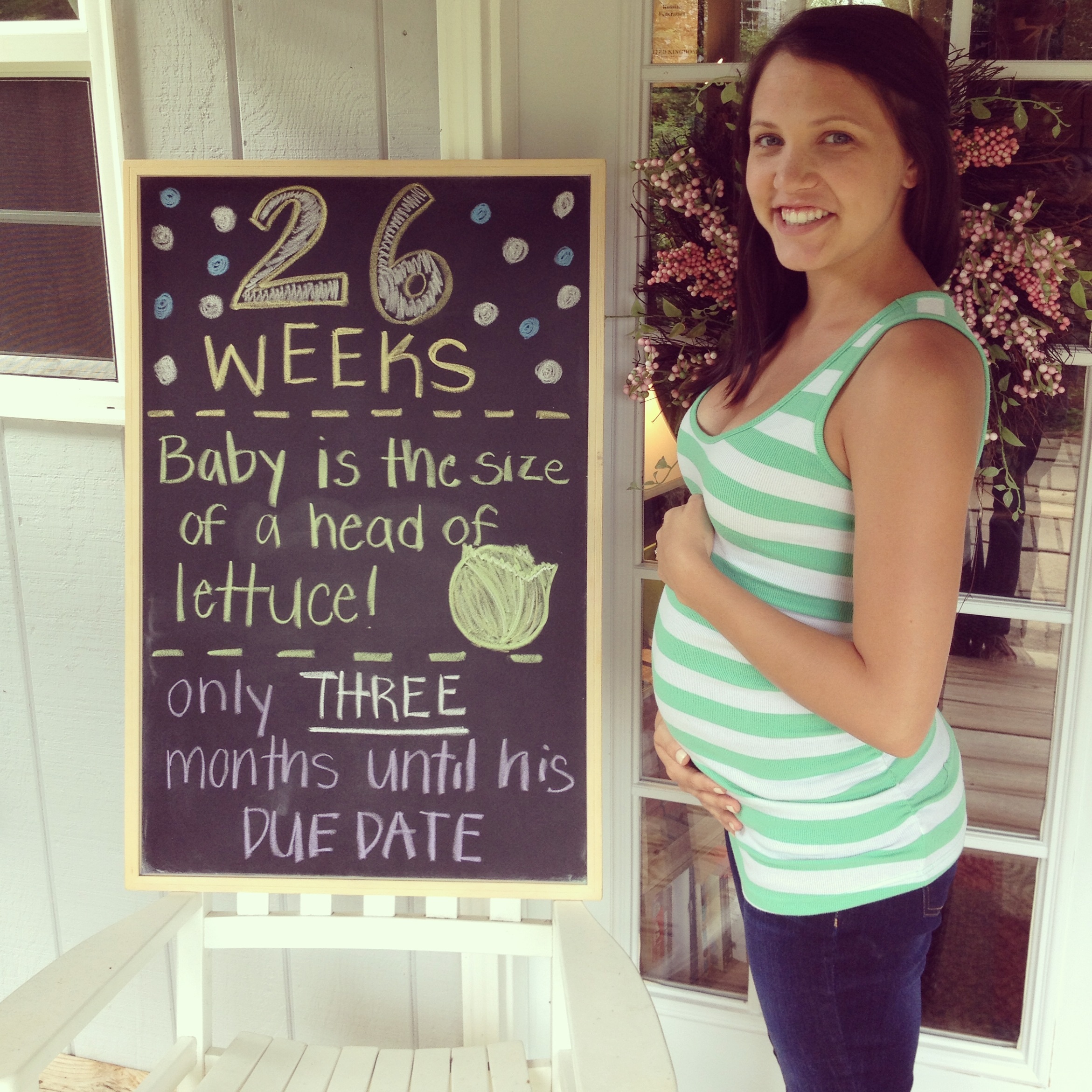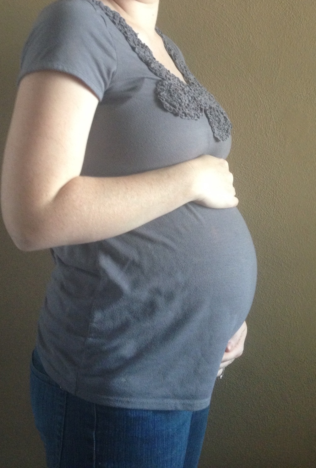 This photo I took yesterday when I was 26 weeks 5 days; a little late on the taking of my weekly picture due to my hospital stay for contractions