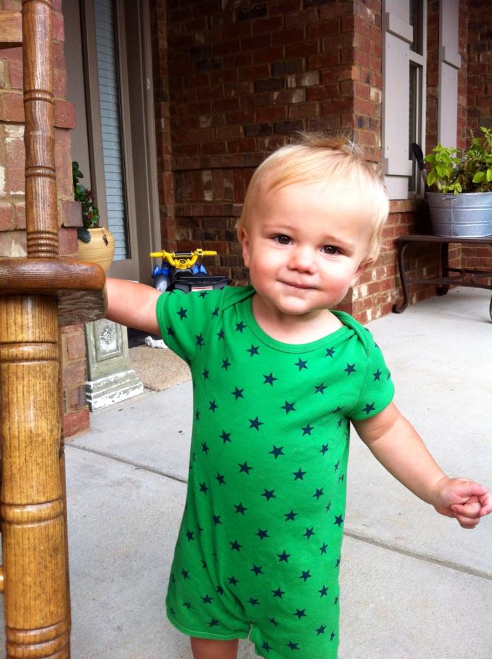 I am just amazed everyday at how much he is learning and growing! He now signs "milk" and "all done" (the only ones we really taught him) and he is really starting to become obsessed with books! I say "go get a book" and he always brings me the same 3 books and then plops down in my lap and we have to read it at least 3 times. He mimics the animal noises in the book, but doesn't really mimic many words yet. He is walking all over the place and loves for me to put his shoes on! He brings them to me and then sits down and lifts his foot. He brushes his hair with every brush or comb he finds (or even toothbrushes, sometimes. Toothpaste and all) and loves bringing my phone to his ear and saying "hi!". He wgs his finger at the dogs when they jump up on his highchair and we say "no no no". He also tries to call Zaley all the time (sounds exactly like dada, though) and he will yell for her and then look around and get the hugest smile if she comes.