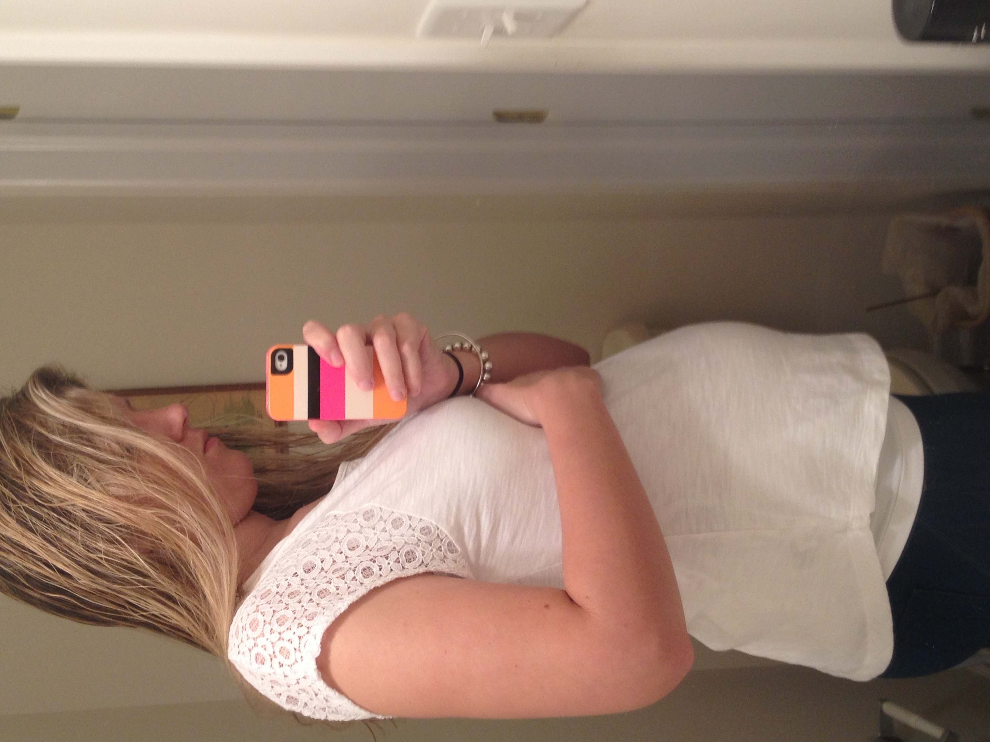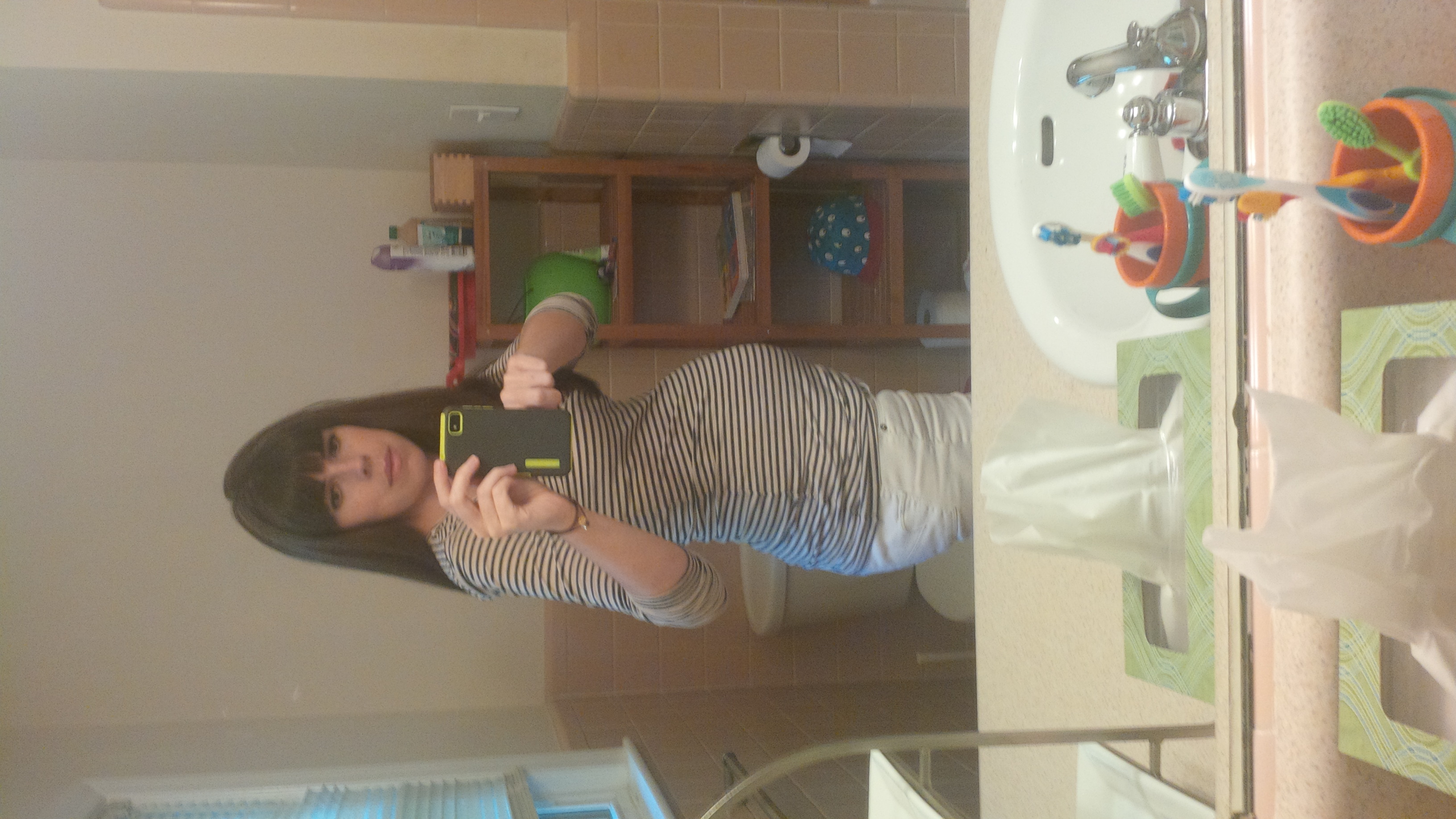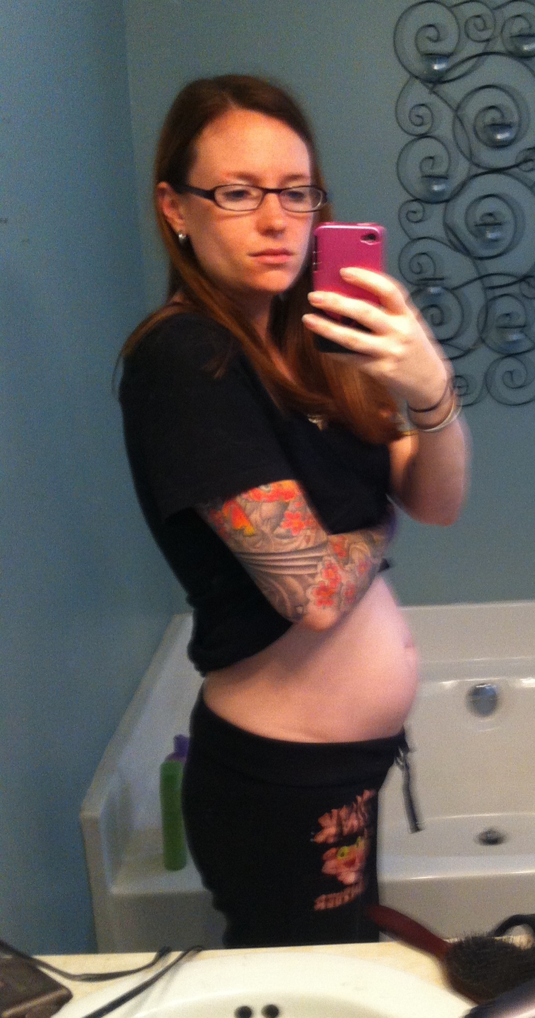 1. I worked last night and I've only been up an hour. 2. I cleaned my sink and mirror to take this. 3. I don't do selfless very often... 4. I snapped this because DH won't be home for a while 5. 16 weeks