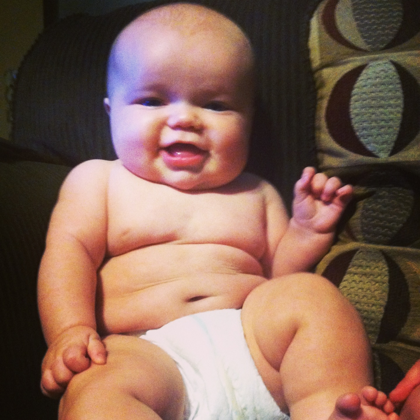 She is a chunk! Good eater and just packing on the weight. She's ebf just like ds was but she out weighs him by over 2 lbs at this age. Insane