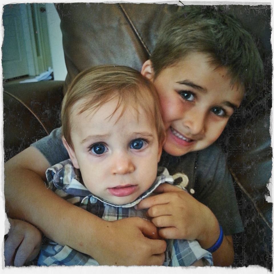 DH and I are on our first out of town overnight trip without DS, and he is staying with his cousin. We got this picture, and he looks a bit concerned, but I know he's having fun! He is the little one in this picture. I miss my little guy.