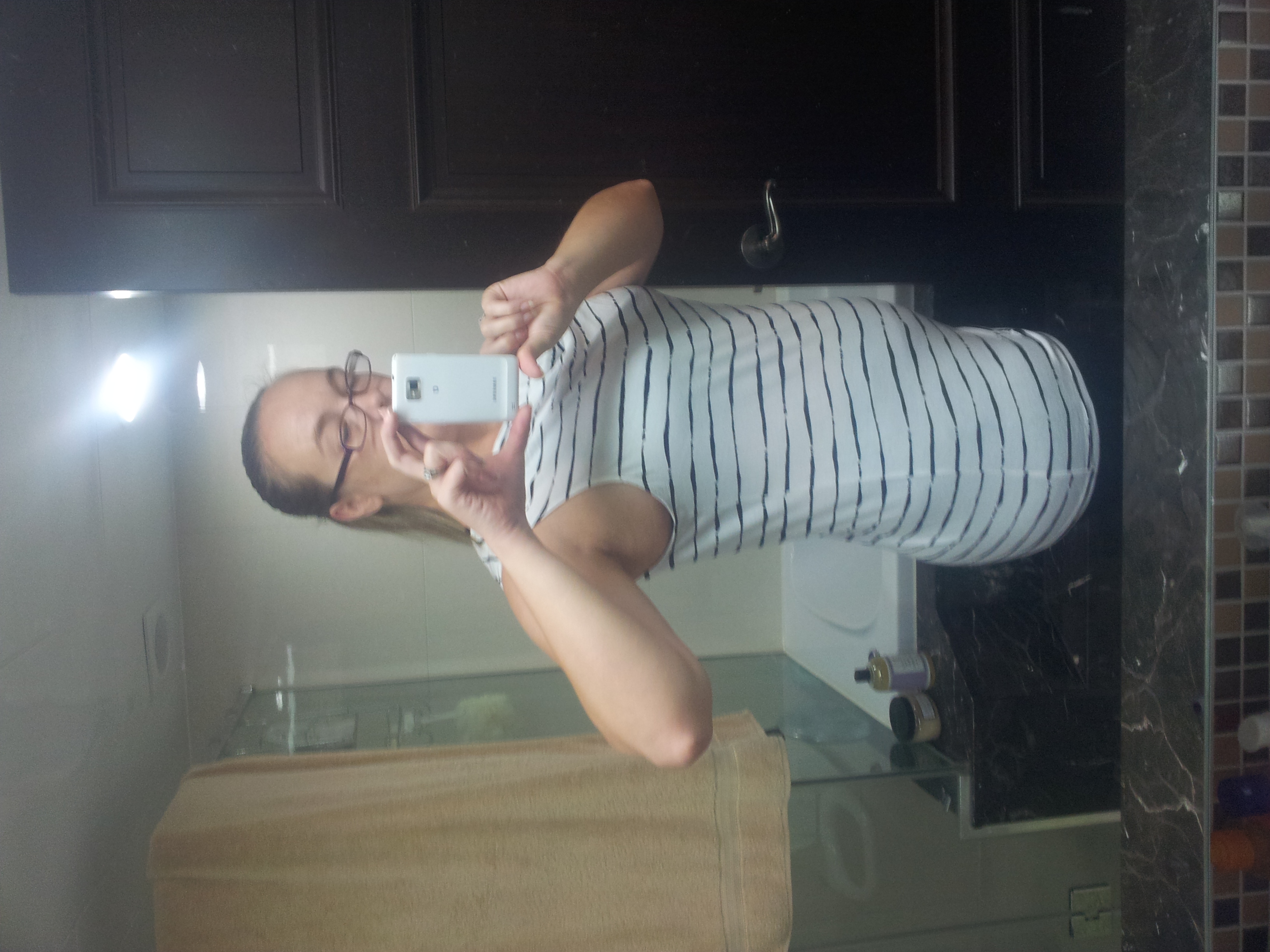 The first picture was taken at 4 weeks, 1 day (Yes, I'm in a swim suit, don't judge Lol) and the picture on the right was taken on Monday at 11 weeks. (I blacked out our last name). As you can see from 4 weeks, I was fluffy to begin with (I was a size 14, Large Top). But I can't believe how big my belly is already. =/