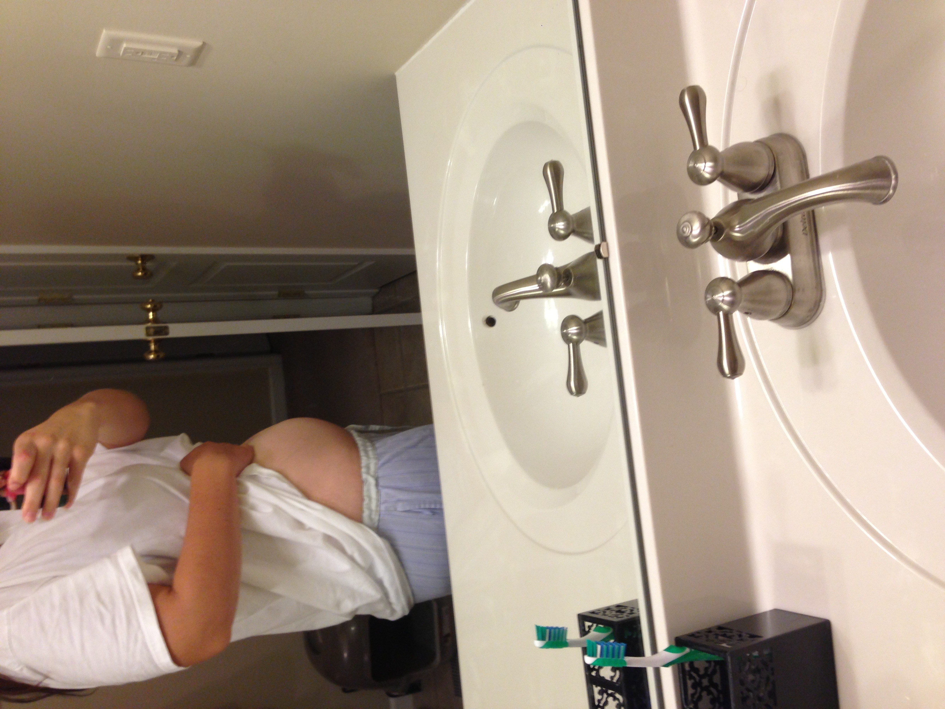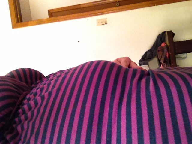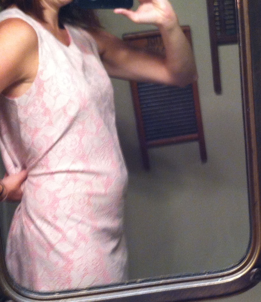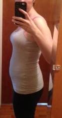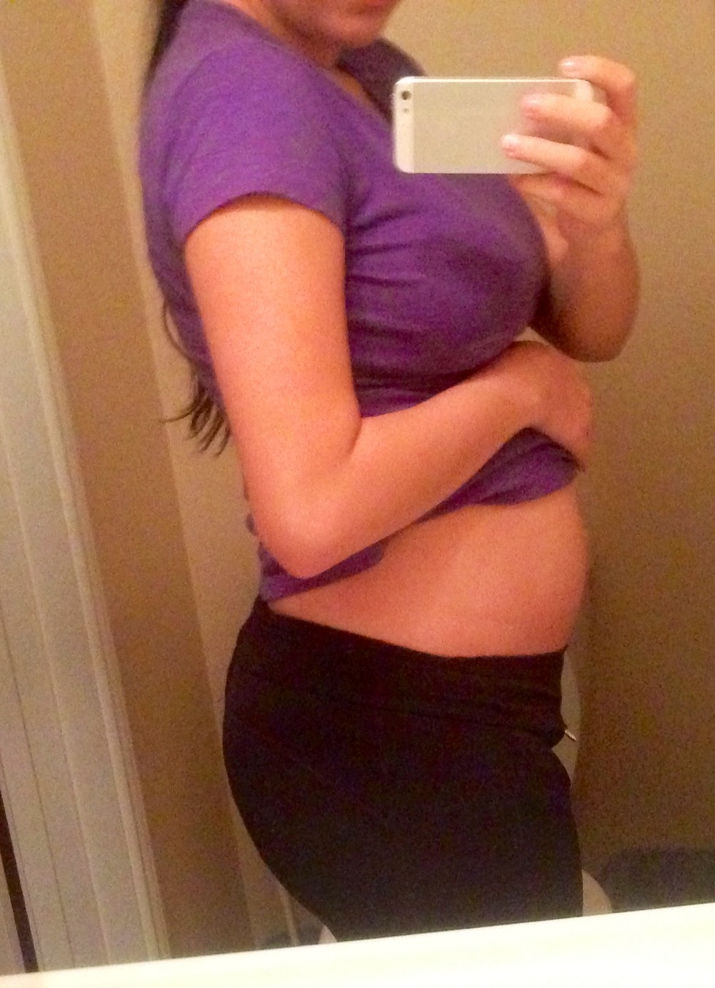 This is from this morning, 13w3d. Some of it is still flab (which isn't going away any time soon), but it's definitely not bloat anymore. Also, from the top, I can see which side the baby is on because one side of my belly will be sticking out a lot more than the other. :P