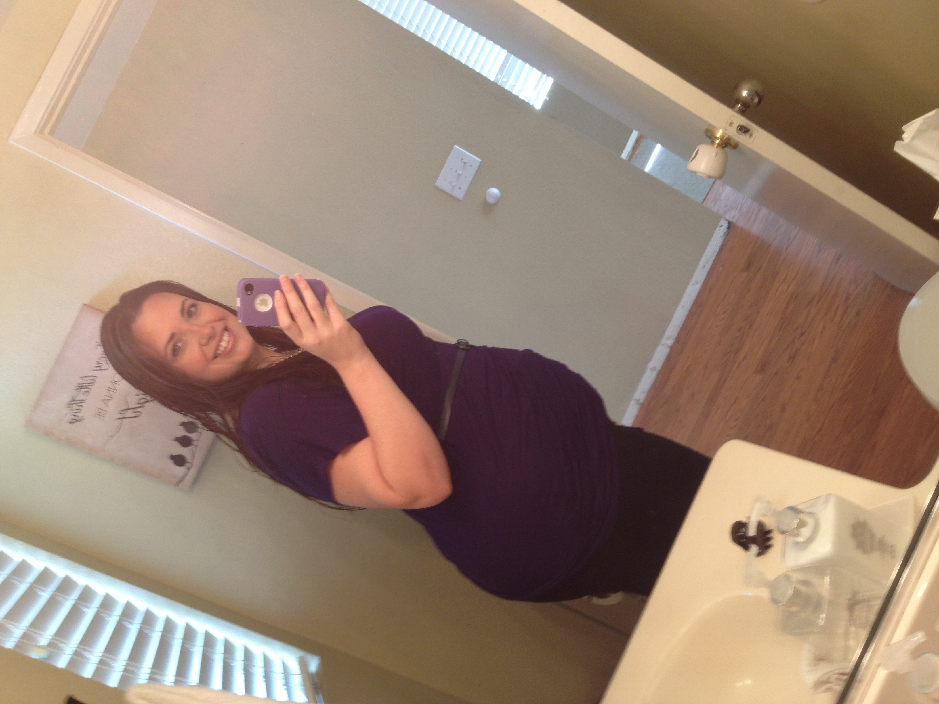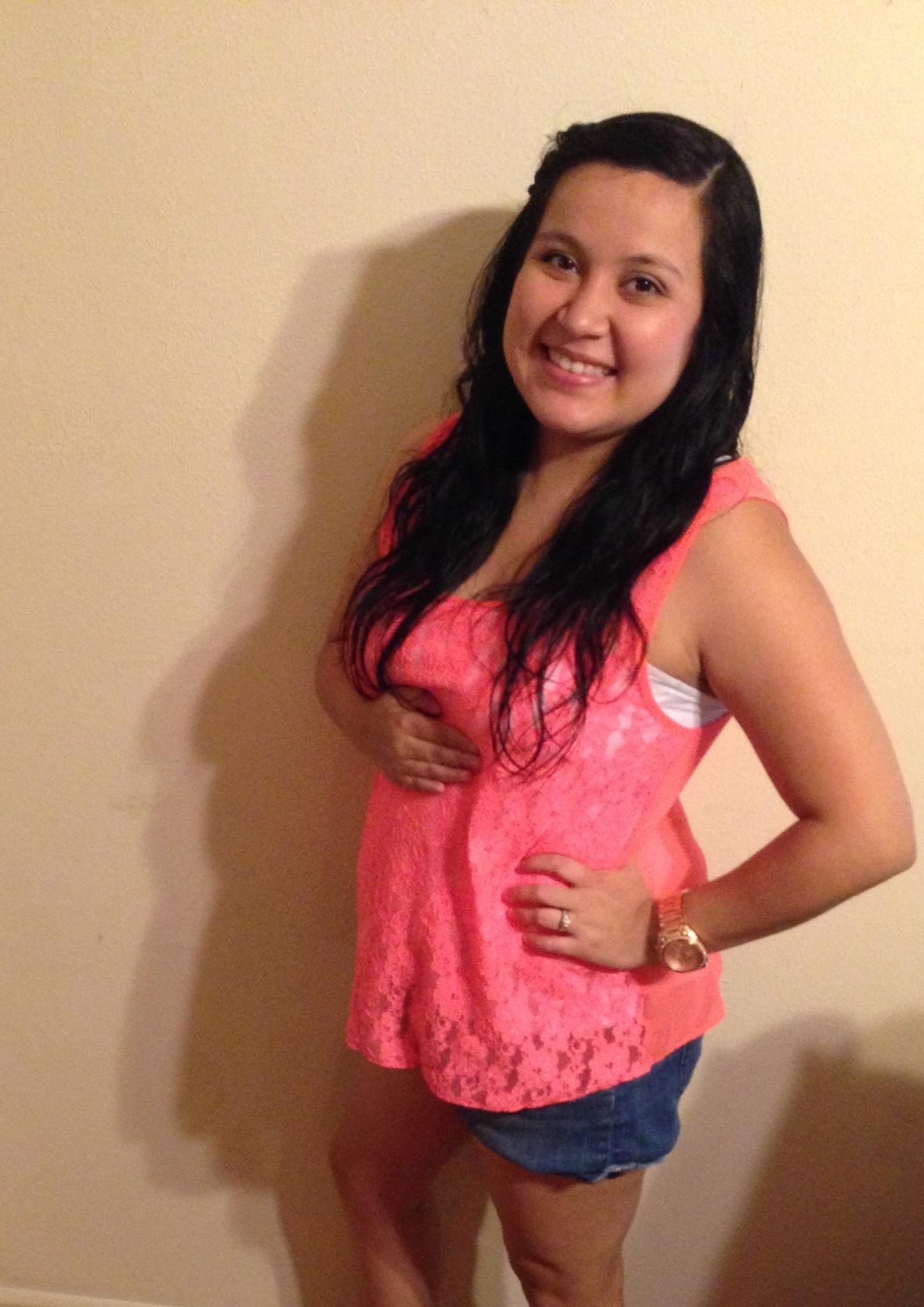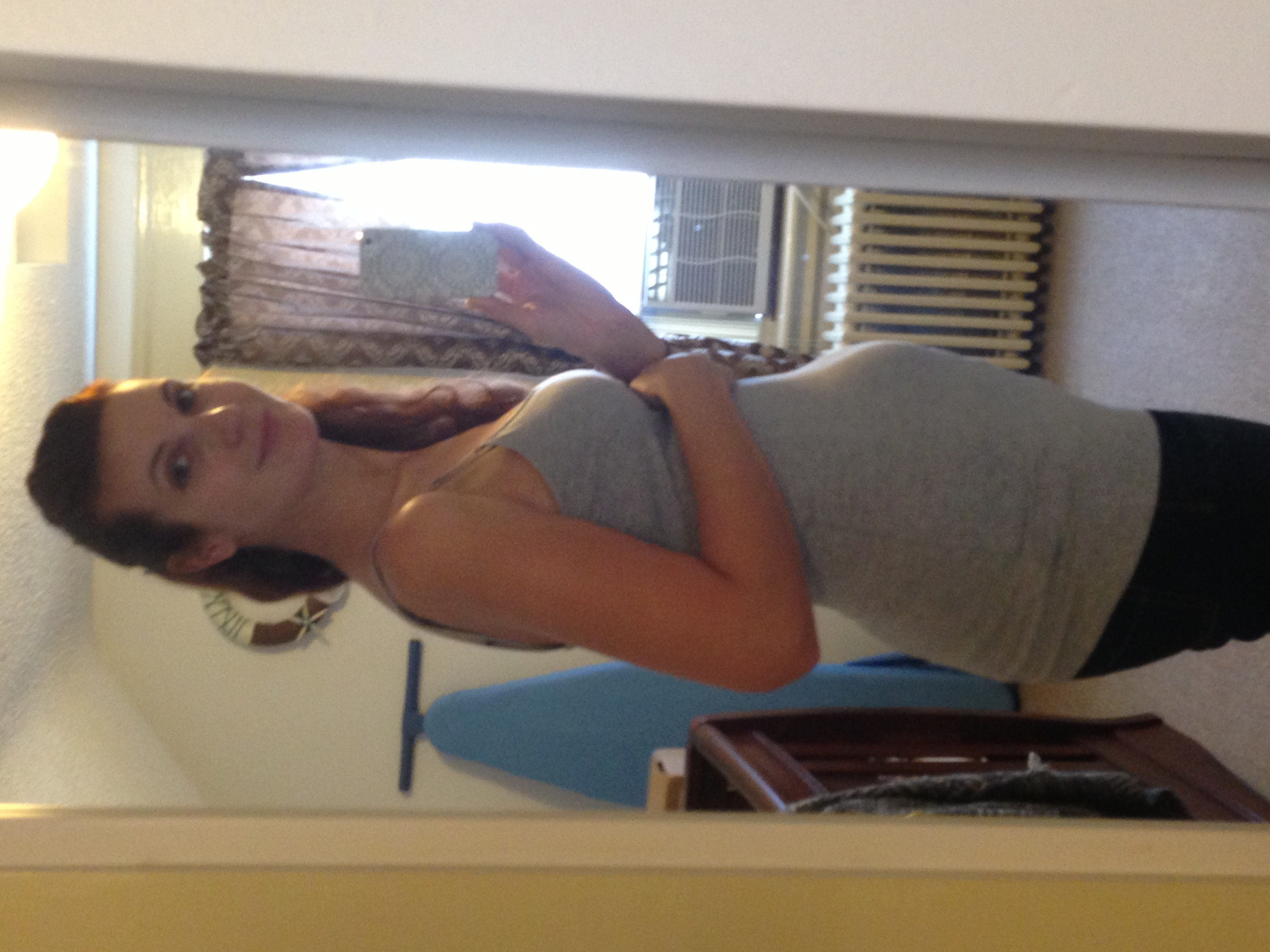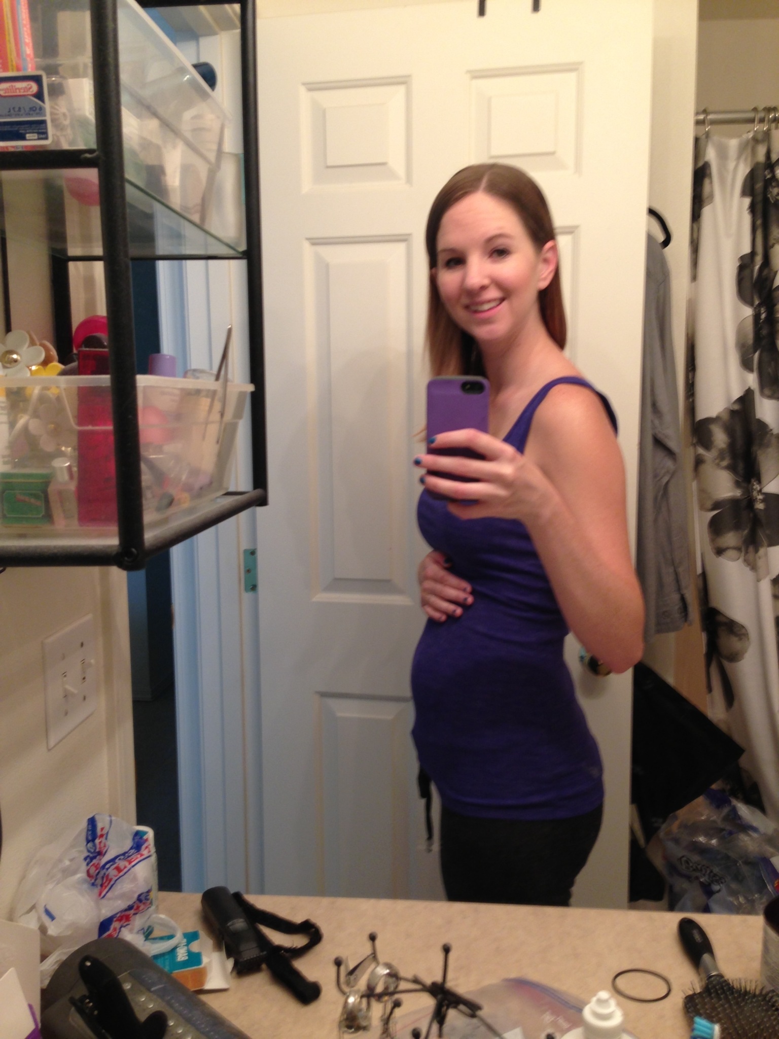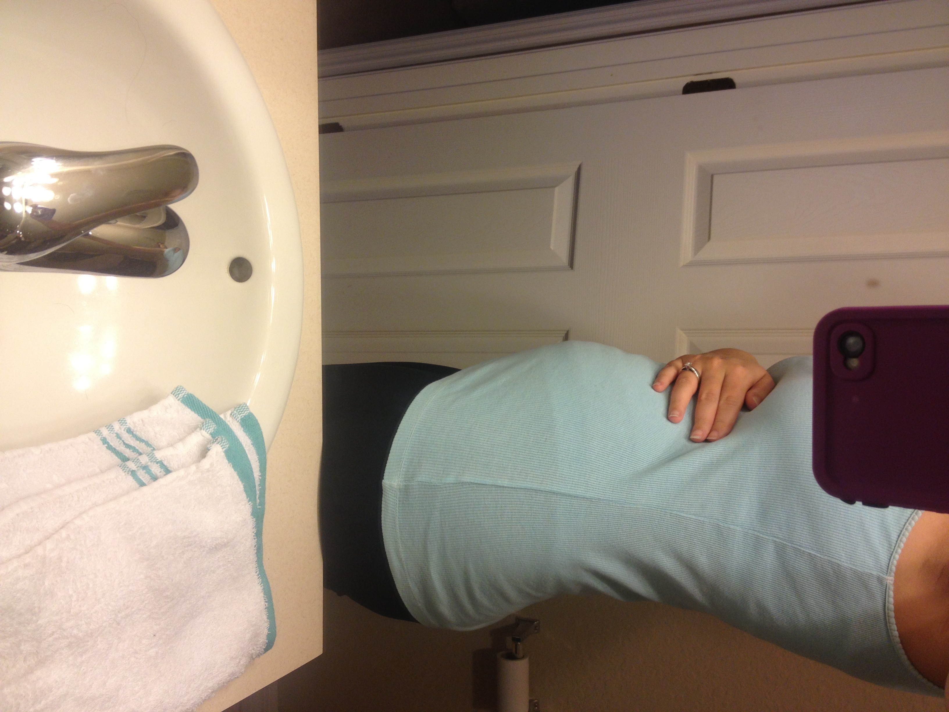 14 week bump. "bump" I guess, since if you didn't know me I doubt youd think I had a baby in there. Just a pooch. LOL. But that's okay because I know who's inside I thought I'd be bigger with LO#2 but I'm actually smaller/showing less this time around. Odd!