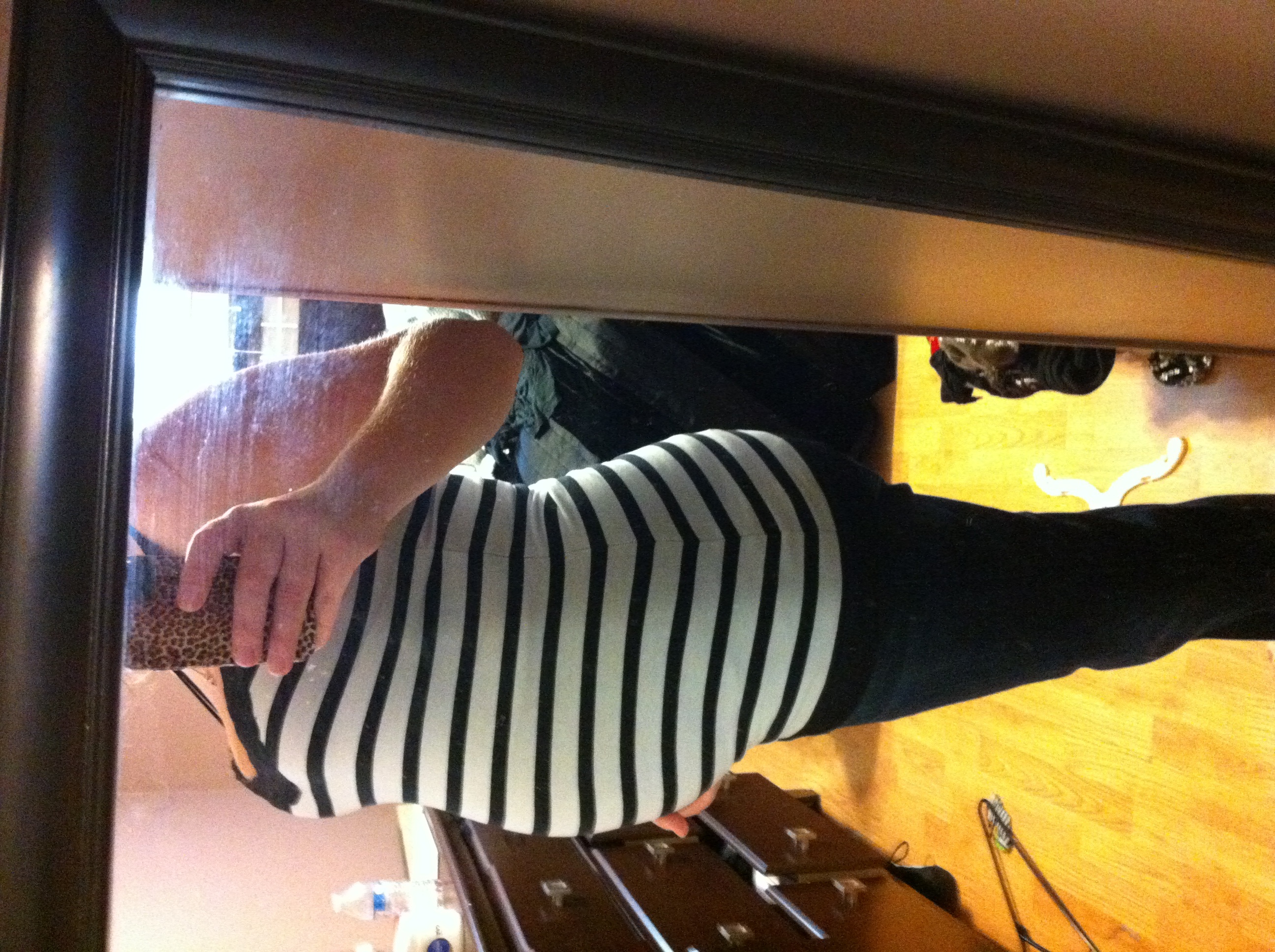 As you can see from 4 weeks, I was fluffy to begin with (I was a size 14, Large Top). But I can't believe how big my belly is already. =/