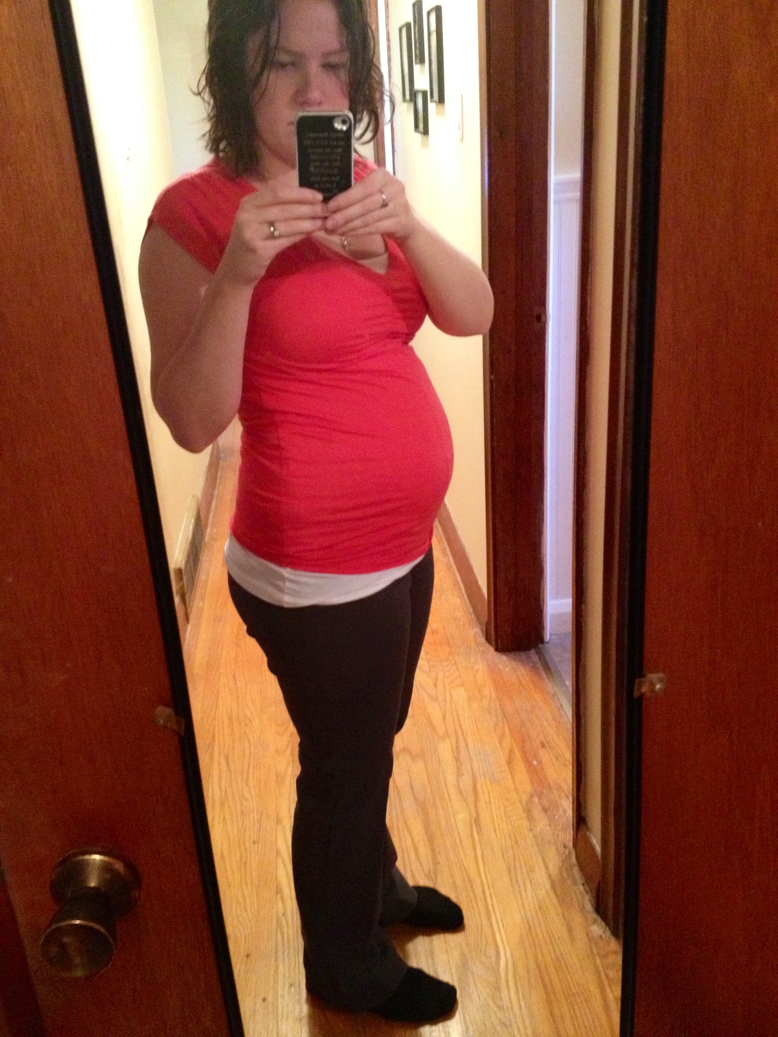 I was not this big at this point with my first pregnancy. Not even close. You look great!