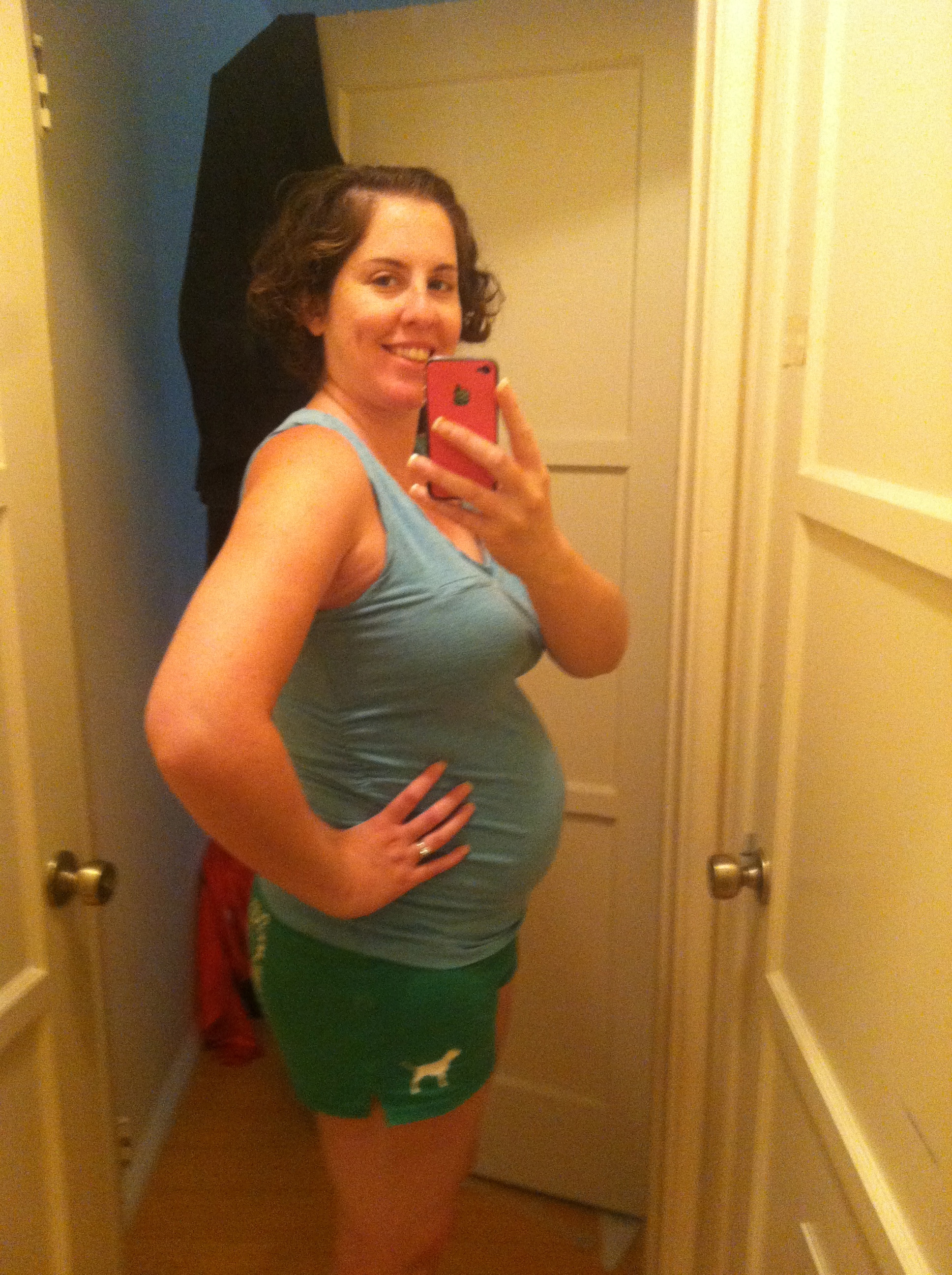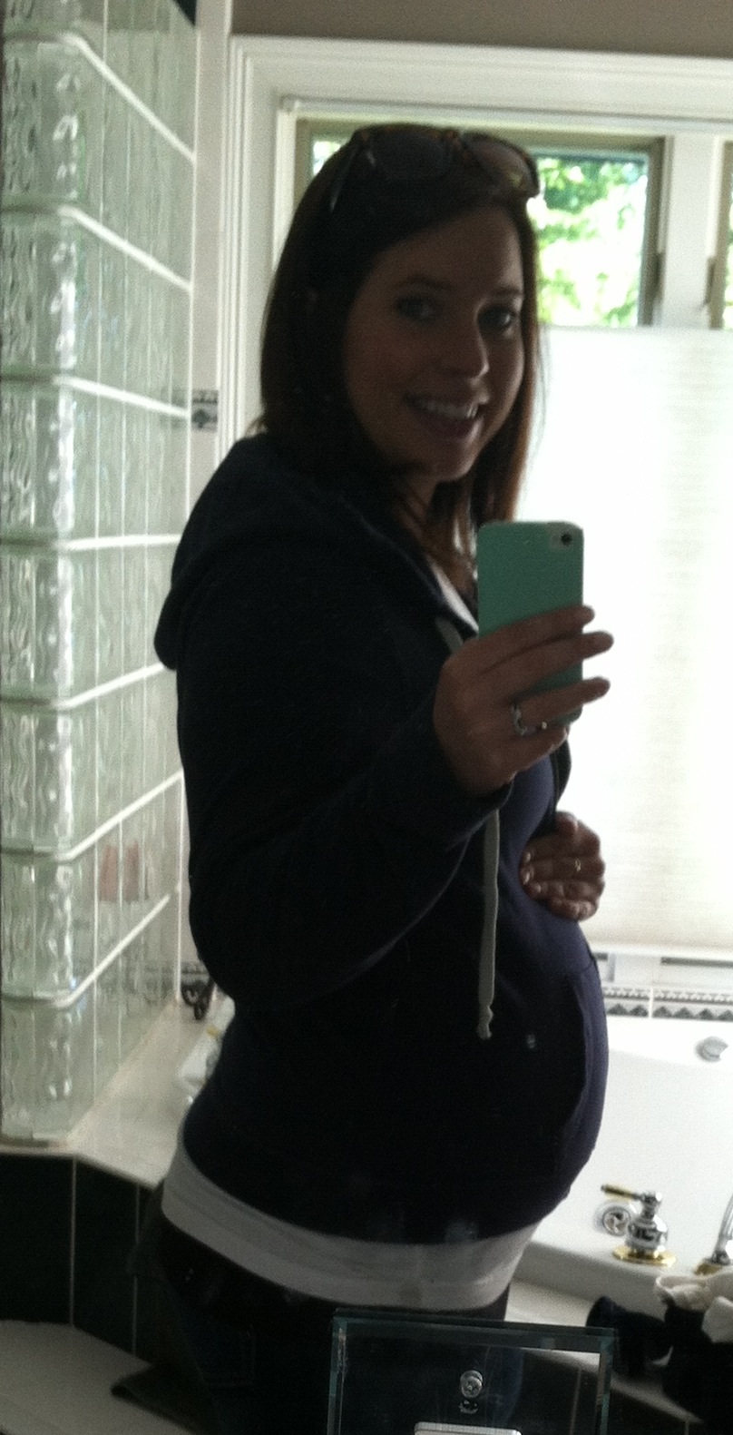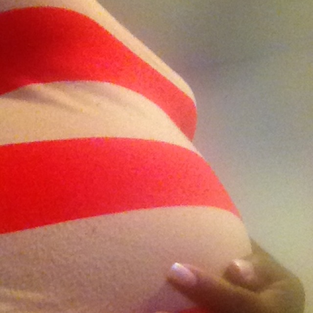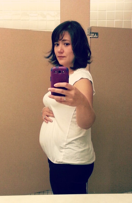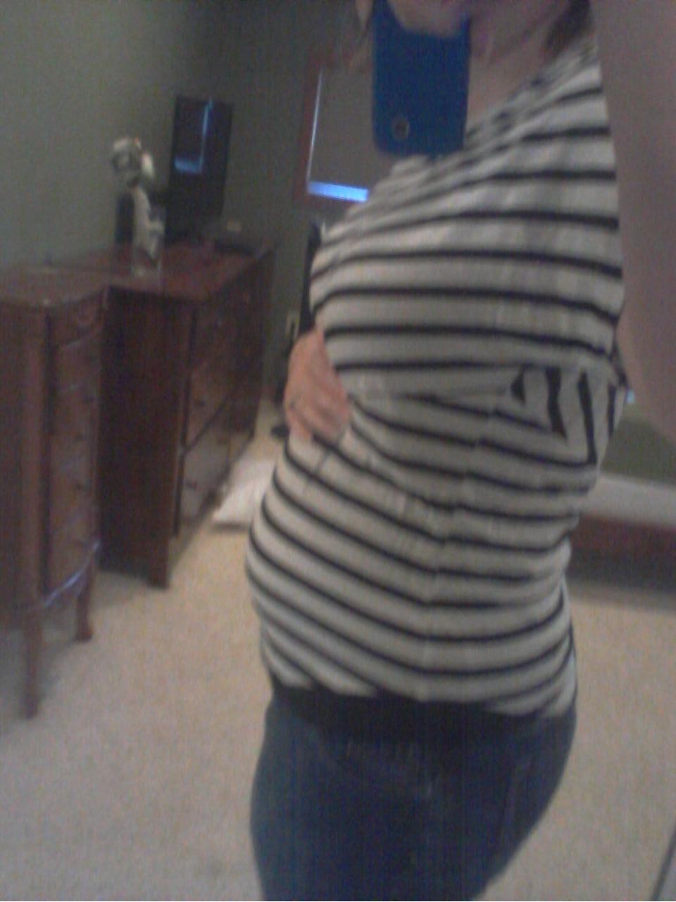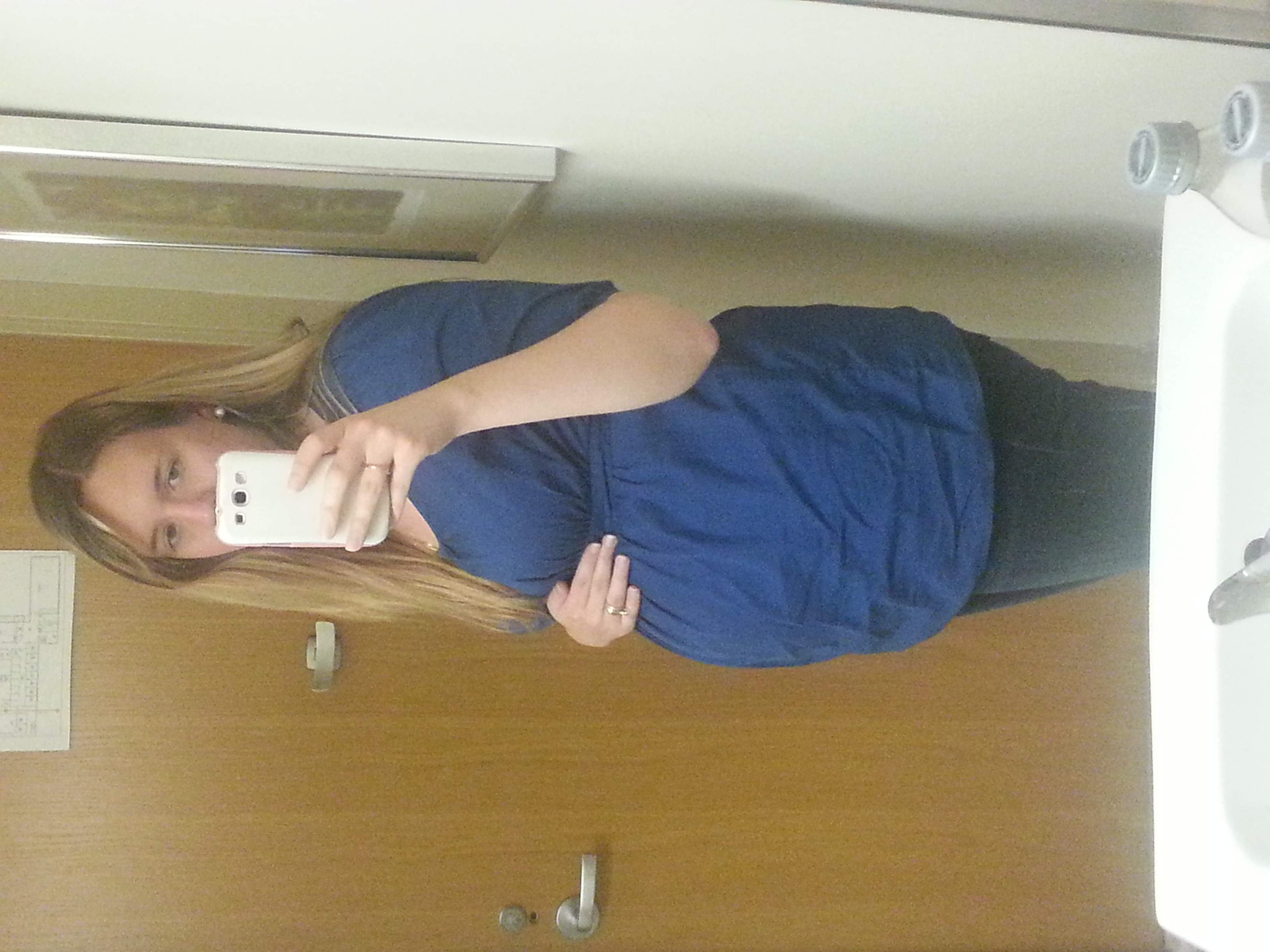 Woo! This is my first time participating in HDBD; I don't have a full-length mirror at home or at work and DH takes terrible pictures, so I haven't taken too many bump pics. Here's me last Friday at Target at 18w1d!