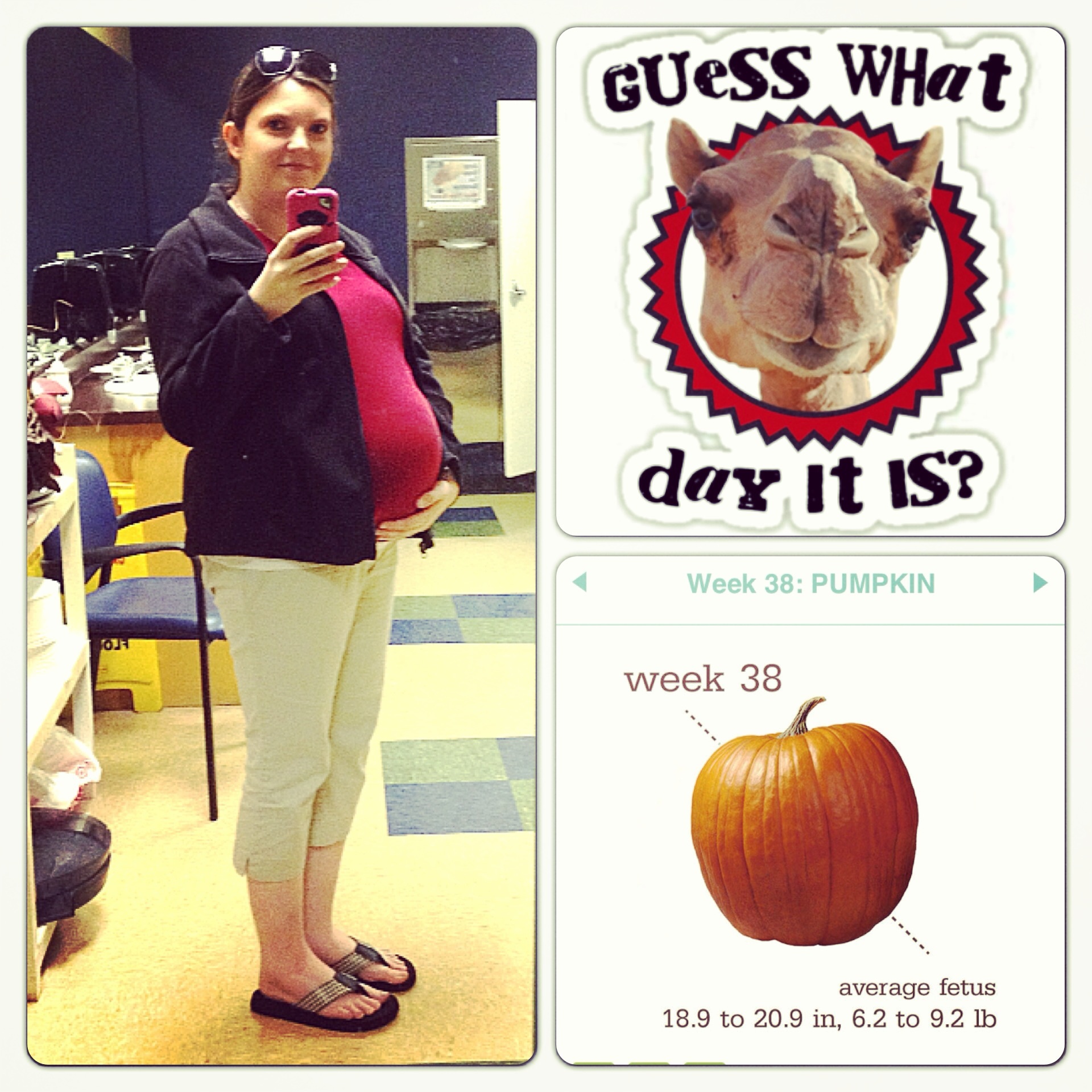 38 weeks 2 days! I am feeling extremely exhausted and sore after a 12 hour work day yesterday, but here I am cankles and all back at work this morning. I have this weird feeling that I could go to labor at any minute and I am working my hardest to get all my work finished for the month. My to do list is super long so I am hoping to make it a few more days even though I am so ready to not be pregnant anymore.