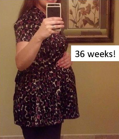 36 week bump! I feel great all things considered. I even slept pretty well last night. My biggest complaint is still the heartburn I get in the middle of the night no matter what time I eat last before bed.
