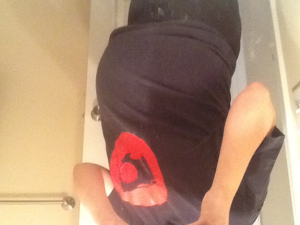 no pics until the 5 year old gets home. I am so short I have to stand up on a bathroom stool to use the mirror for a belly shot. Our Jacuzzi tub is in the way (why I can't just back up)