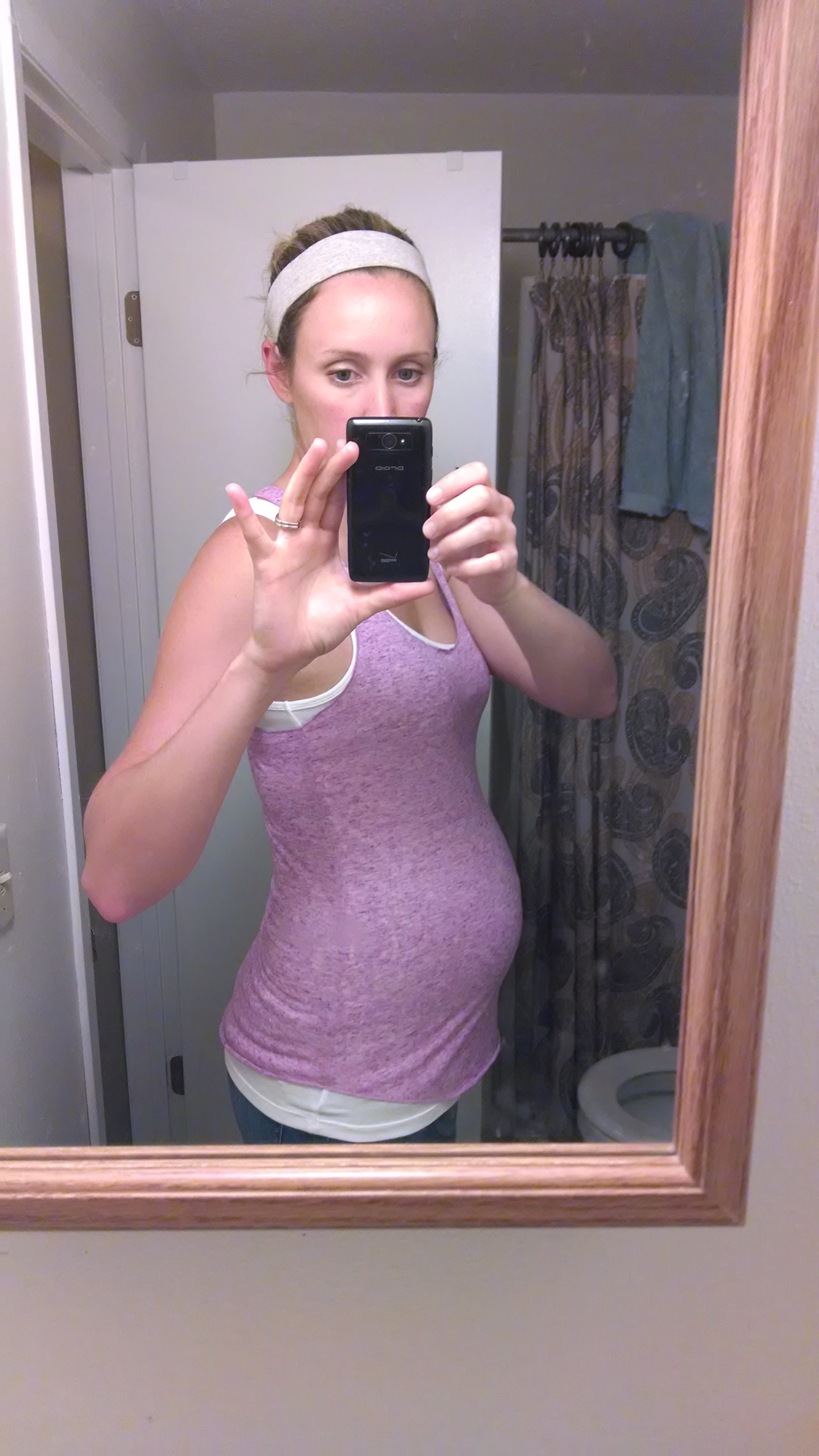 Here I am at 21 weeks and 4 days. Traveling for work so taking a selfie in the hotel bathroom. Getting bigger and love feeling the baby kick