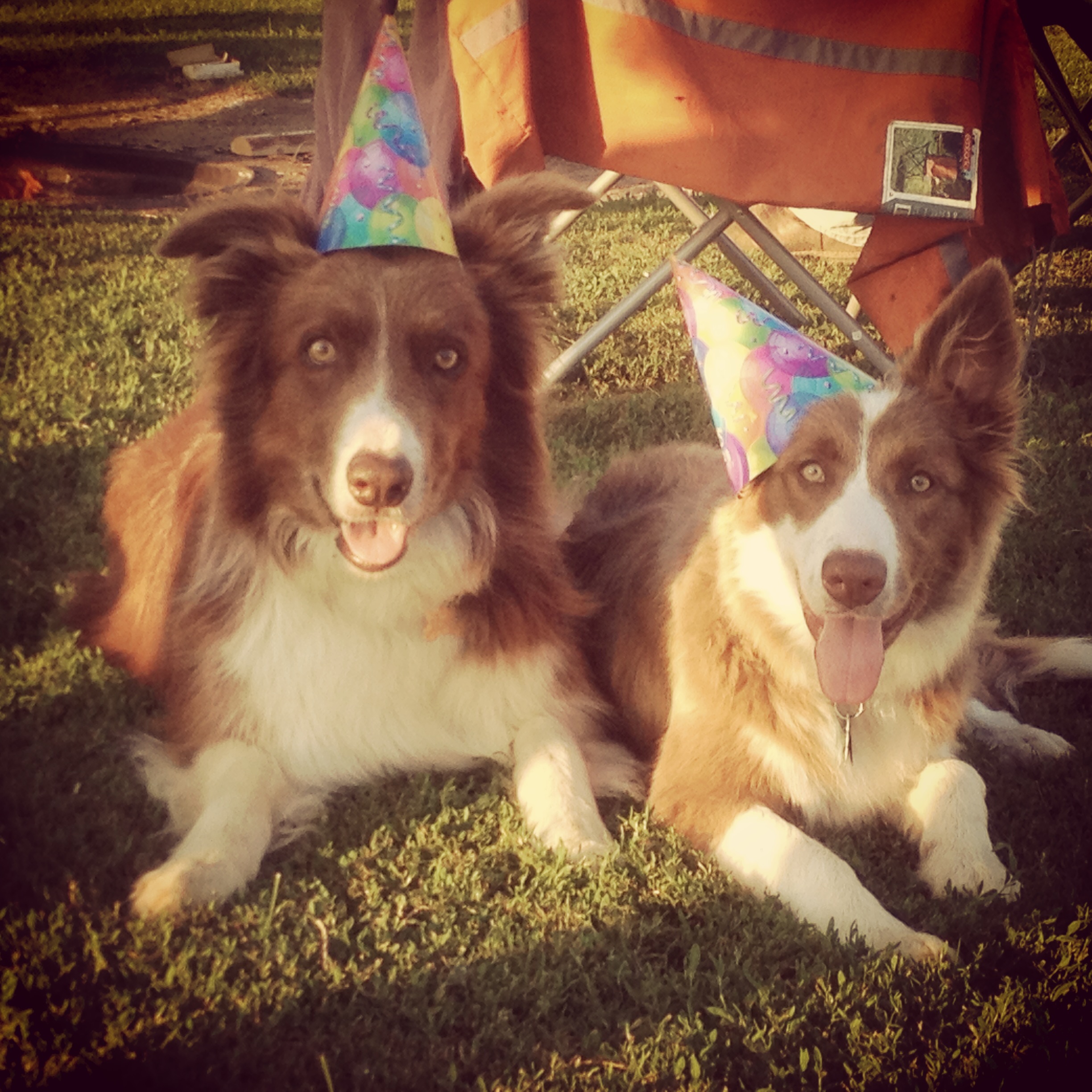 • Boone (left) and Scarlet (right), our two loving red and white Border Collies :)