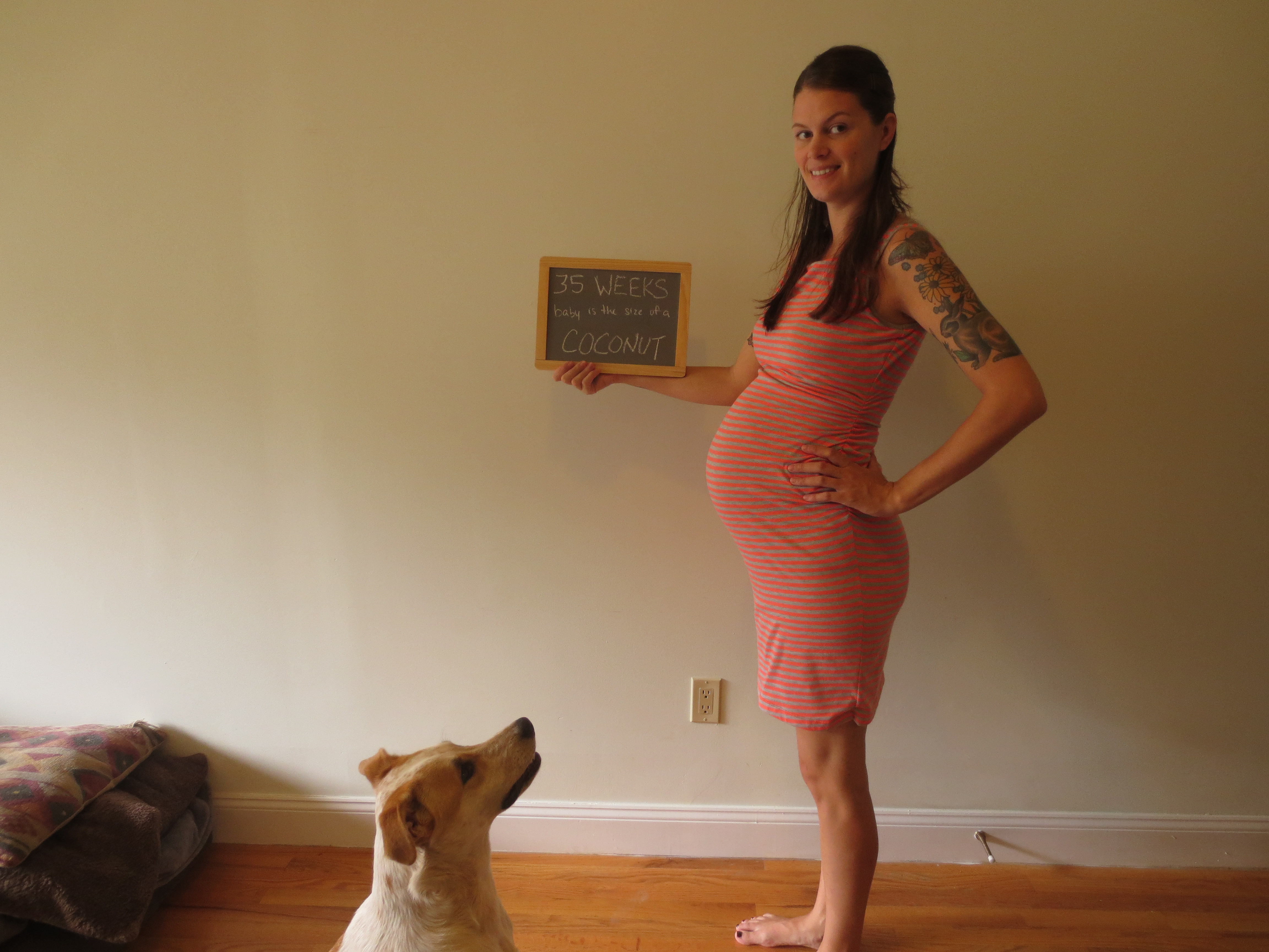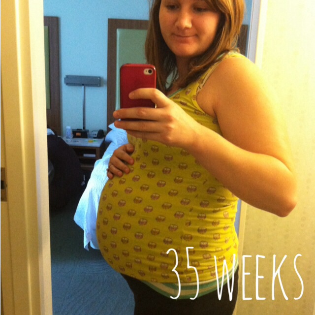 35w6d. Feeling pretty good actually. Heading out to Prenatal Yoga soon and treating self to a PSL afterwards. Realized that my afternoon naps are causing me insomnia at night so forced myself to cut out naps and now am sleeping much better. Looking SO forward to reading Oct birth stories. I remember reading May 2013 baby stories and thinking.. soo.. far.. away. Yet here we are!!