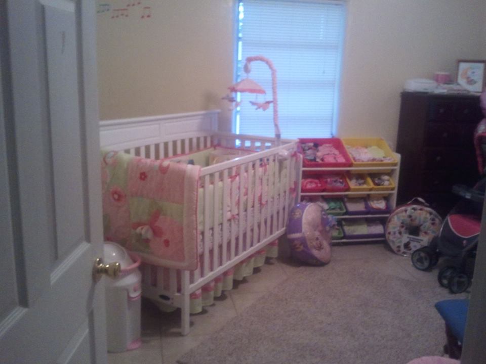 So I worked my butt off setting up Luna's nursery last night after washing alllllll of her clothes (what a nightmare).... and I thought I'd share a little preview pic.