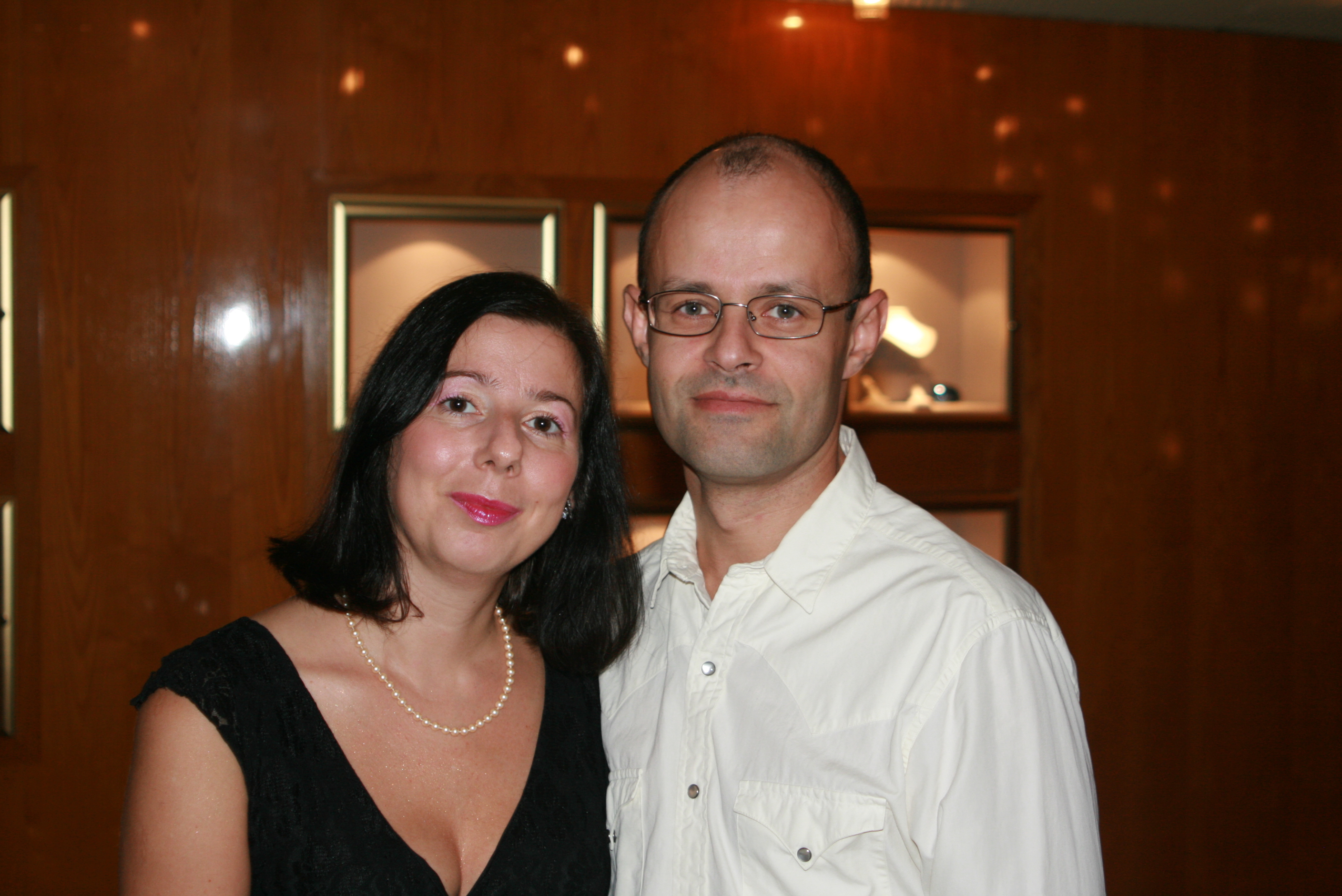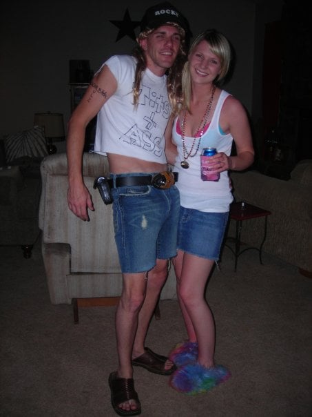 I think we were newly married here. We were at my little sister's high school graduation. You get a bonus black chick's belly in the background buahahaha.GHETTO!