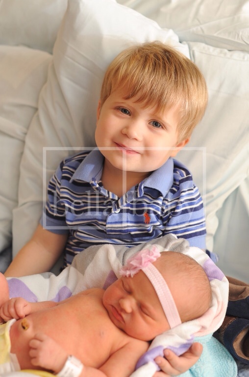 Sorry I've been totally MIA since having miss June on Saturday! My water broke at 1am Saturday morning. Got to the hospital around 2:30am and I was 2-3cm and contractions were 10 minutes apart. I basically hung out, walked the halls, etc and when they checked me at 9:30am I was still the same and contractions weren't any stronger or closer together. DH and I made the decision to have a RCS. Glad I did because I didn't have her until 12:31pm and the whole time I waited, my contractions never picked up. She weighed 7lbs10oz (exact weight as my son) and 20inches long. She nurses like a pro and is almost to her birth weight (was 7lbs6oz at her follow up pedi appt). She is a very calm and quite baby unless she's hungry! She's got some lungs so I'm waiting for the day when she uses them!! I have to wake her every 3 hours at night to feed her! DS is doing great as a big brother! He is telling everyone that baby June is his sister. It's so cute!! I don't have actual images on my phone but I'll share a pic from her newborn shots in the hospital.