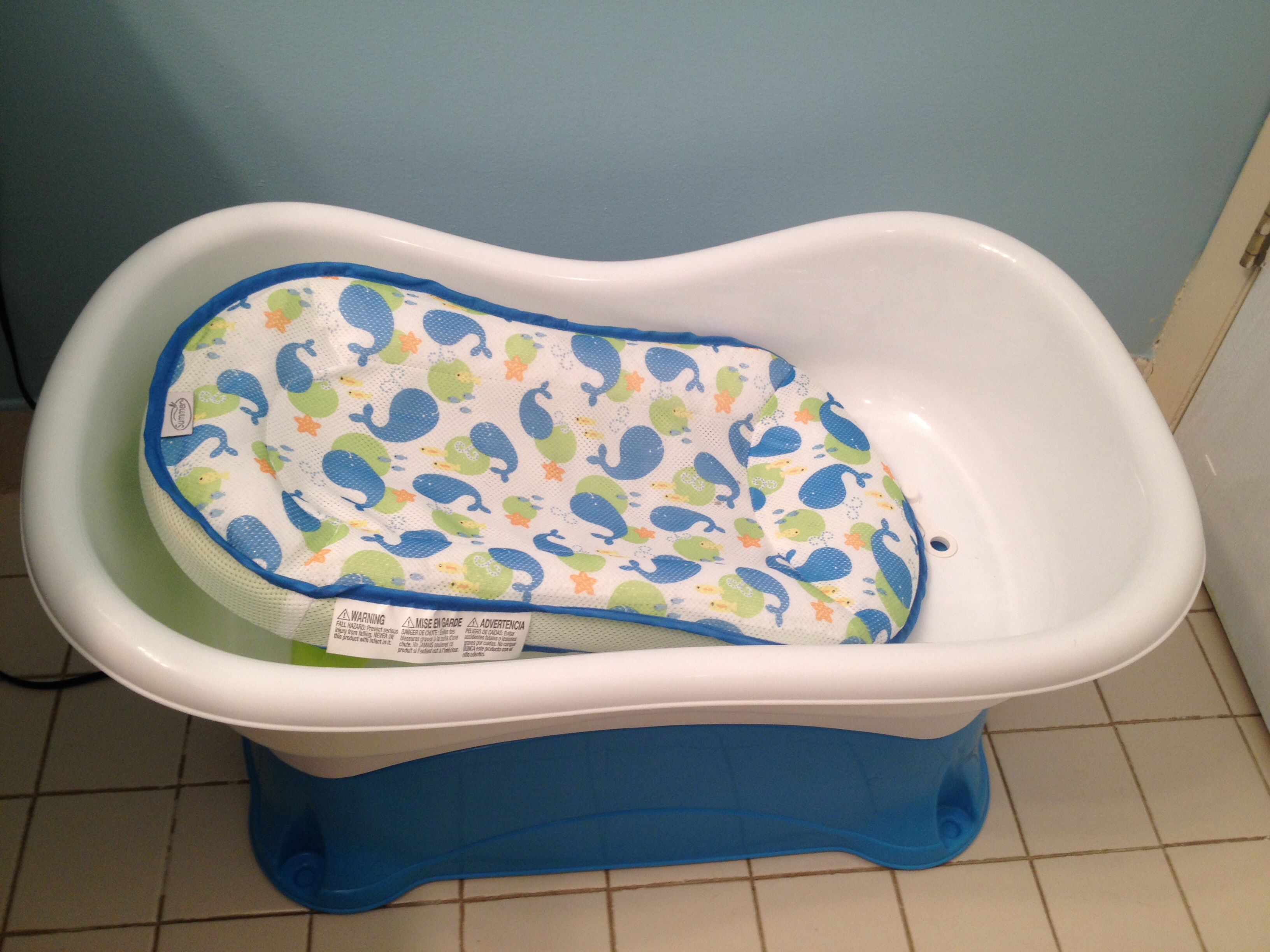 I had a foam insert thing for the kitchen sink that worked great for sponge baths but once his stump fell off and we tried to fill the sink with some water and put him in it, the damn foam thing just floats and LO wasn't heavy enough to weigh it down. So we switched to using one of those infant tubs in our big tub. It has a little sling type thing that he sits in and you can fill the tub with water. But when he's in the sling thing he barely is in the water. And he gets sooo cold! I feel horrible. I try putting a warm wet washcloth across his body while I bathe him but it doesn't really work. He ends up screaming cause he's cold and I try and get it done as fast as possible. I will admit this has resulted in my giving him only 1-2 baths a week at most because I feel so bad.