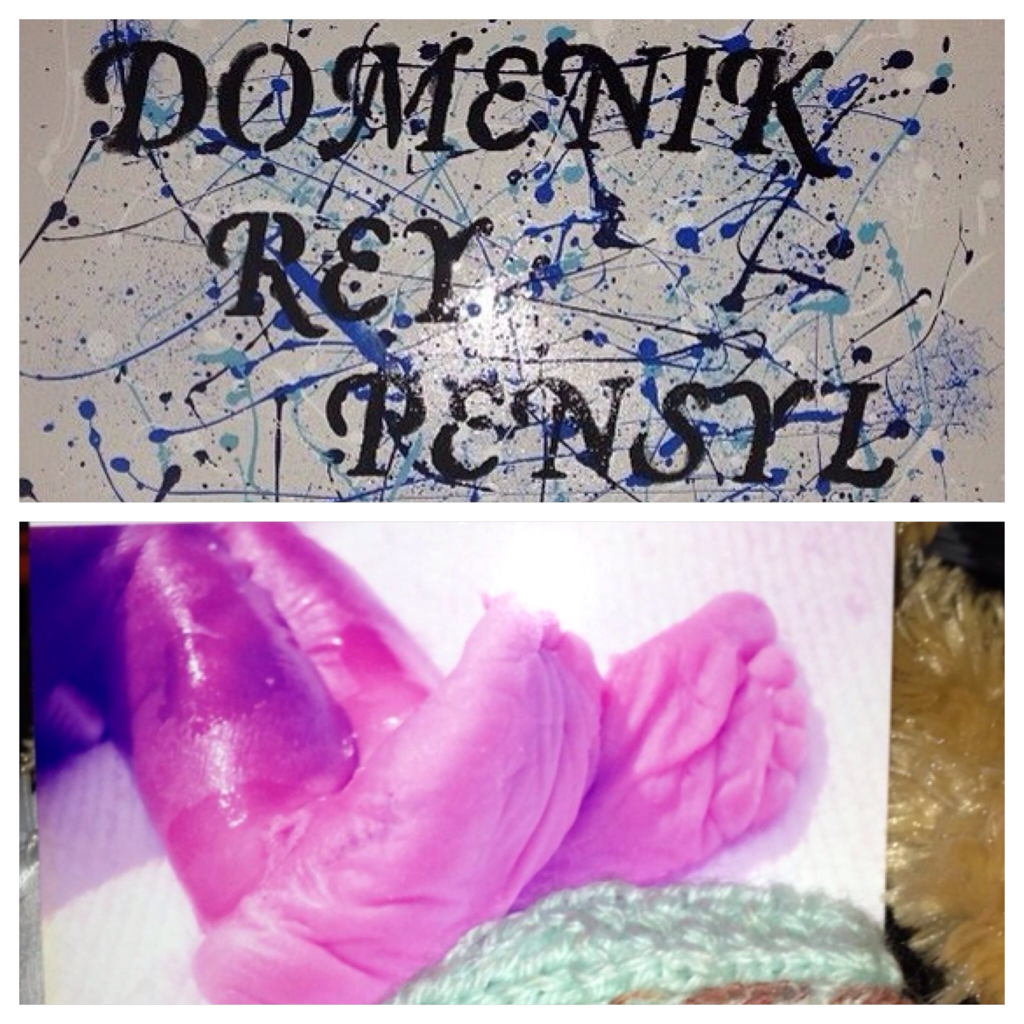 Domenik's color(s) are shades of blue! We made a painting used 4 shades of blue and some white, so those shades of blue make me think of him. All of the items they have us at the hospital for him where shades of blue too. Also a deep red/purple bring him to my mind, because when he was born his blood had settled at the surface of his skin and his skin was a deep red/purple. (I don't know the technical terms for what happen with his skin)