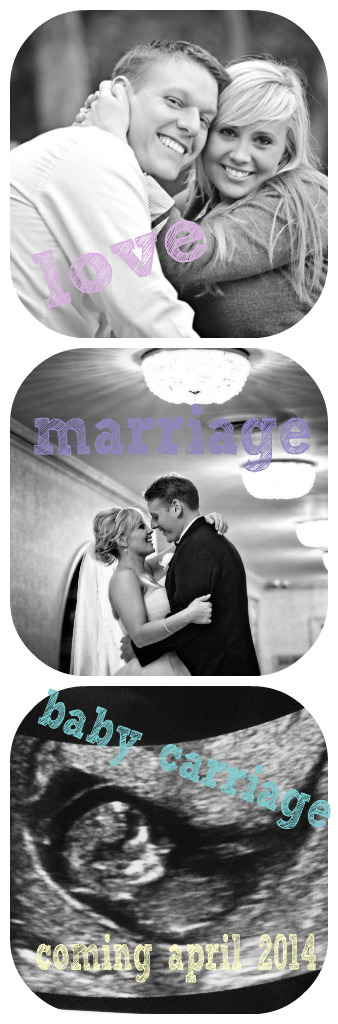 I tried looking for the post where everyone was posting their all together, but I'm blind and/or don't have the patience today... Here is our announcement! We weren't going to do anything, but I'm trying to scrapbook the pregnancy and wanted some of our friends and families reactions so we figured, what the heck...
