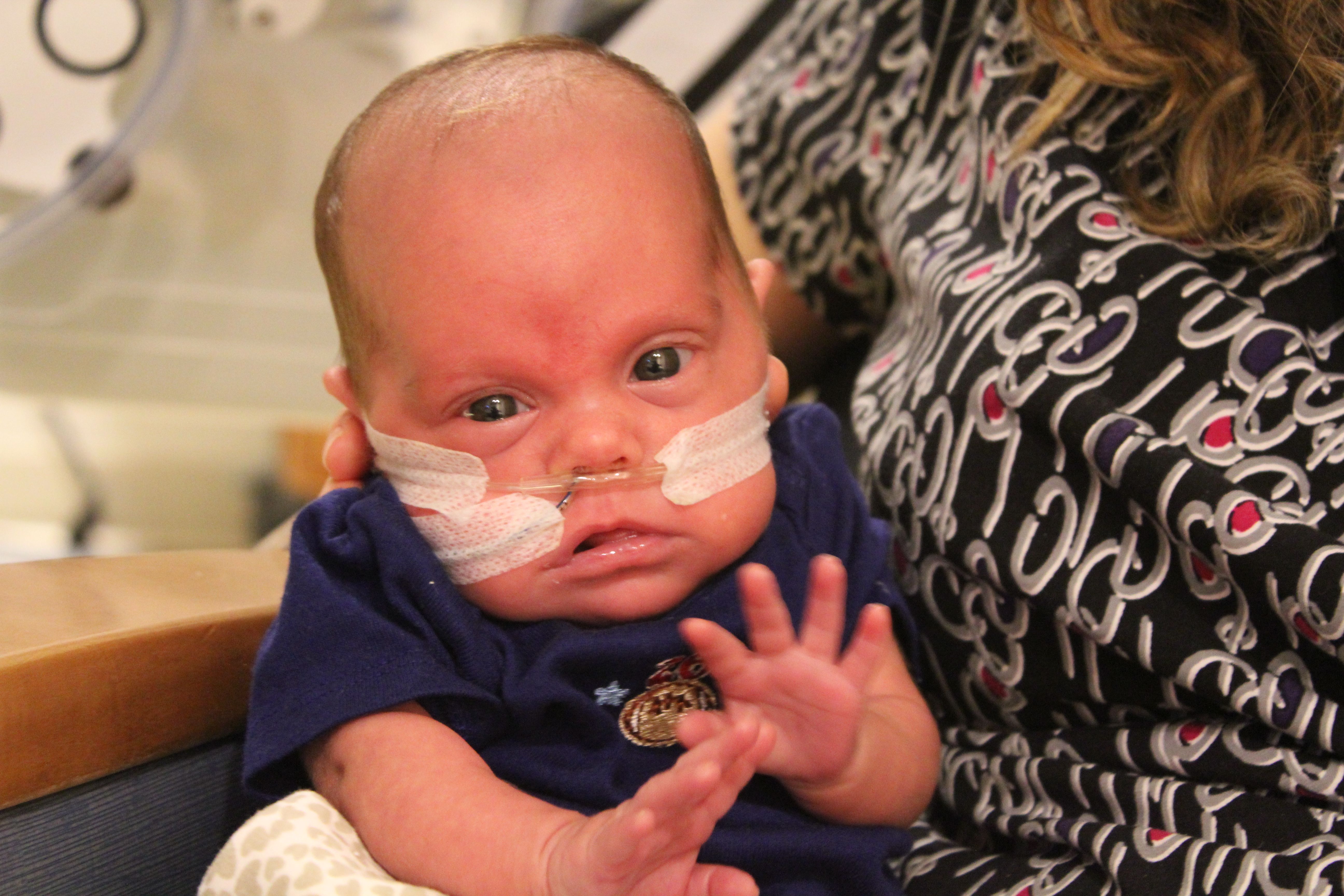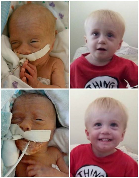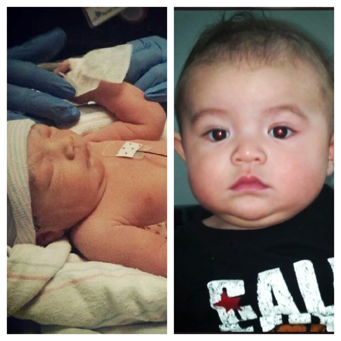 The left is when he was born 34w 5lbs. Right is now at 5 months old 16lbs