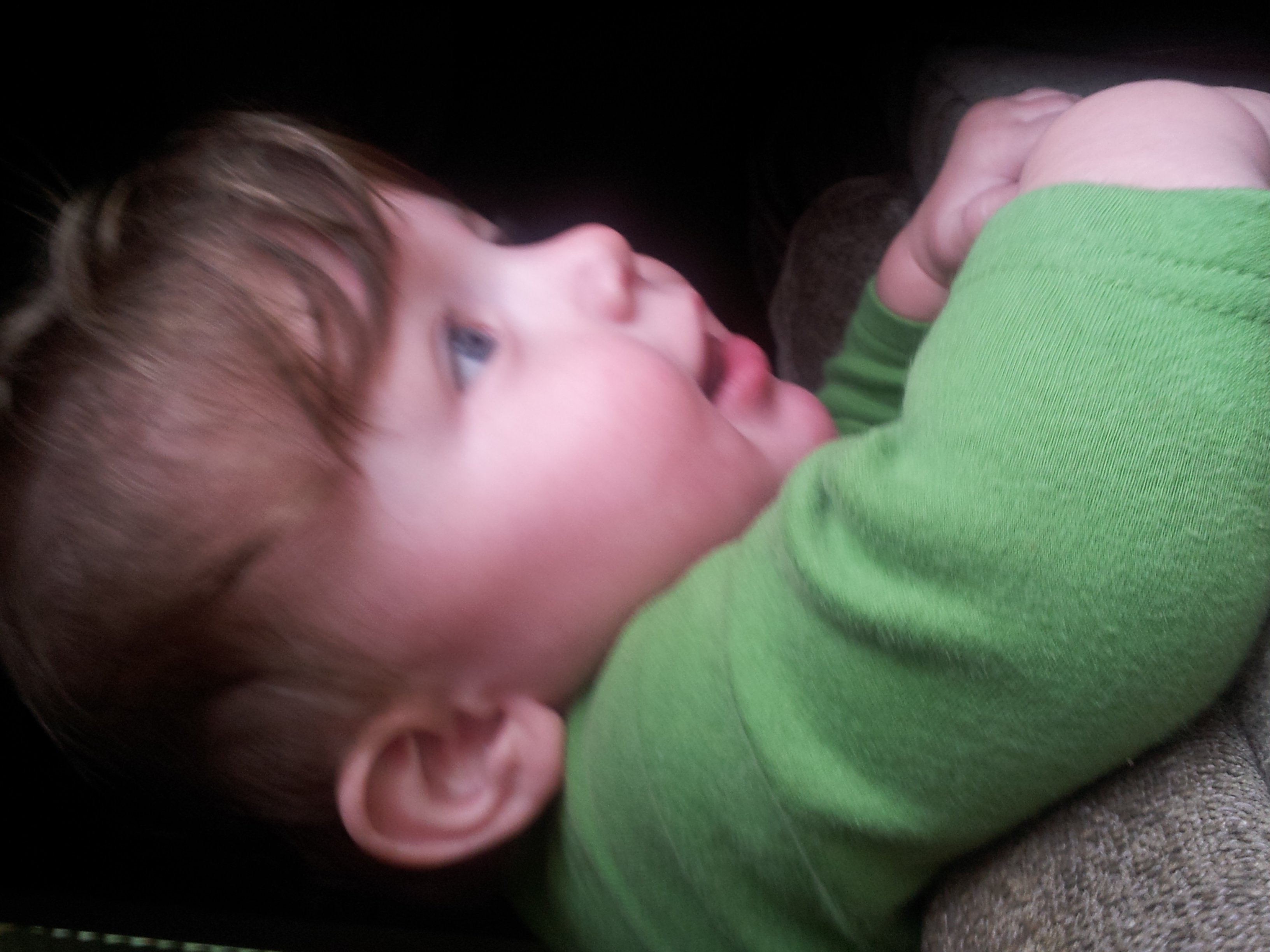 Got some really great shots of Ben this Wednesday while he was looking out the window. Here's my favorite 2. In the second he's cranking because I won't give him my phone, but you can see his teeth!