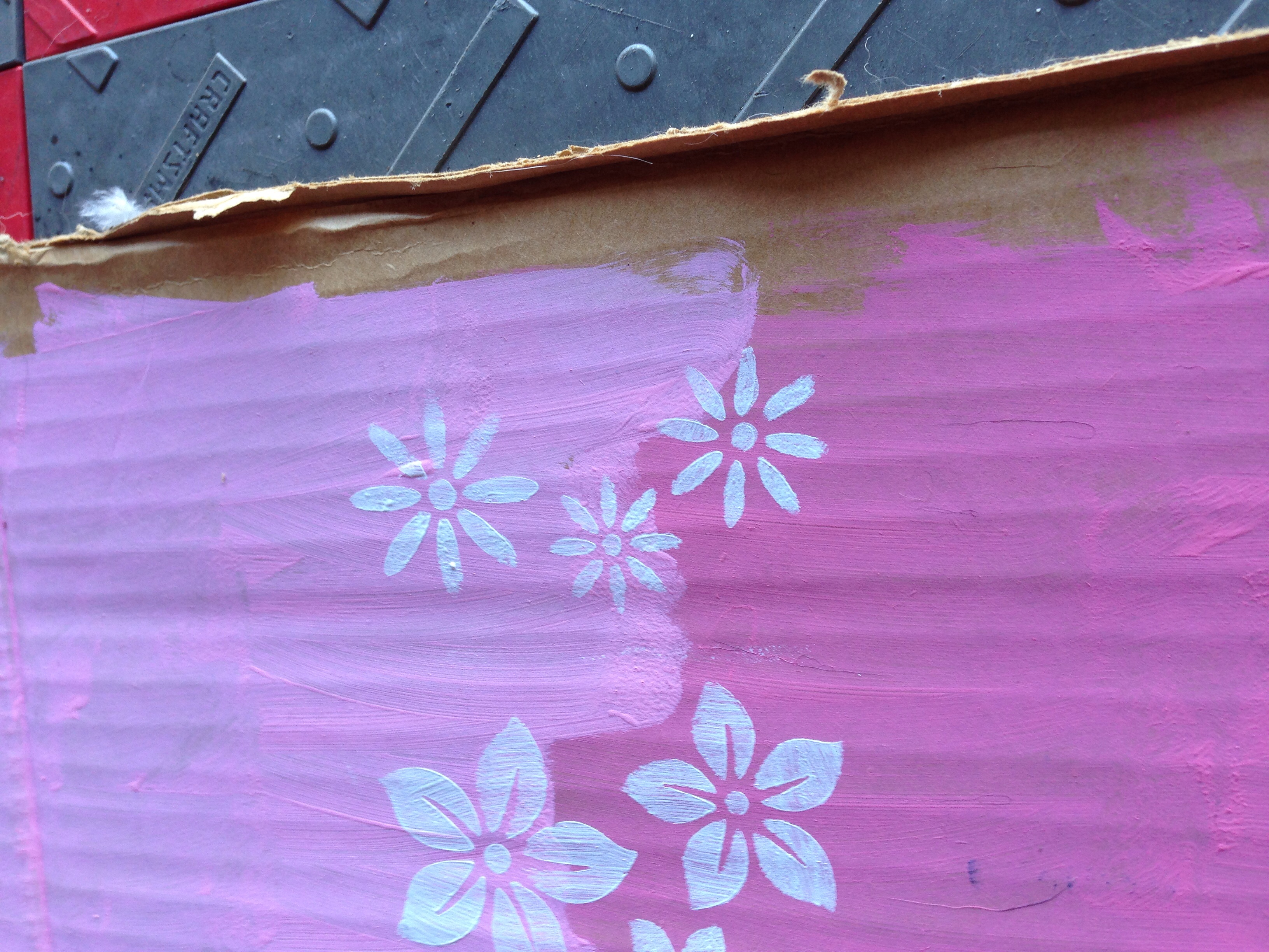 Leve it pink? Stencil the flowers? Or I can always go to the store and get a heart stencil or just do simple polka dots.
