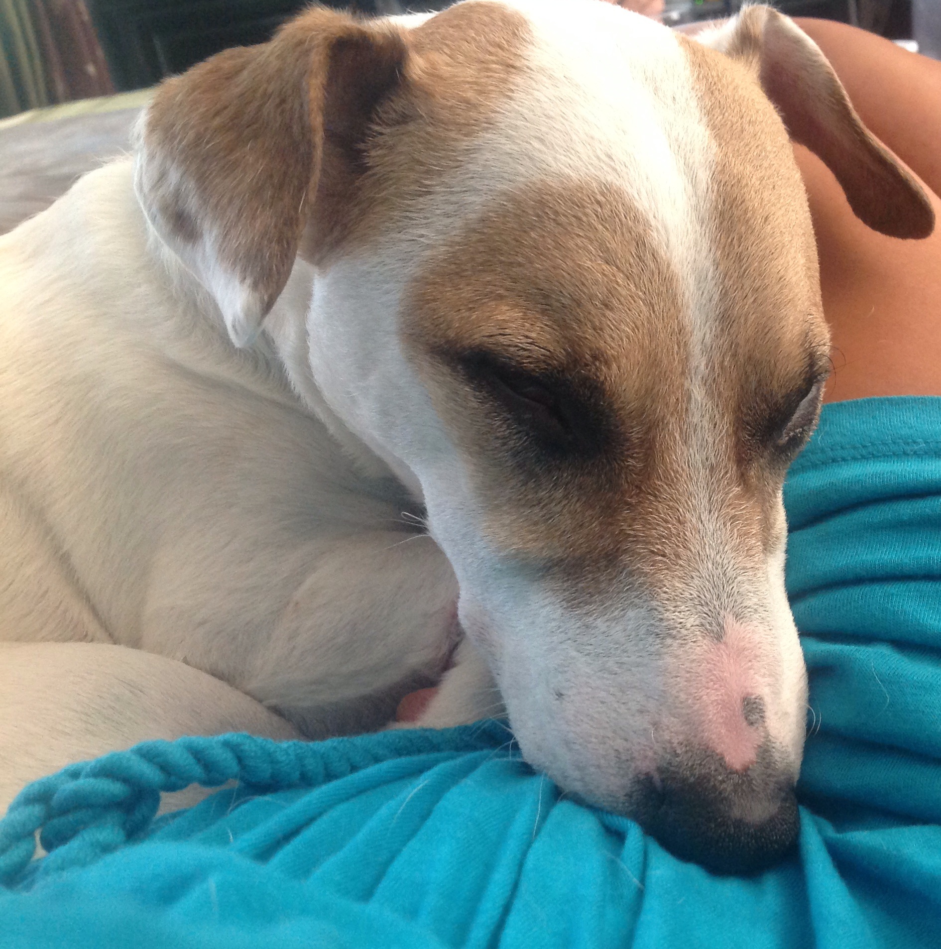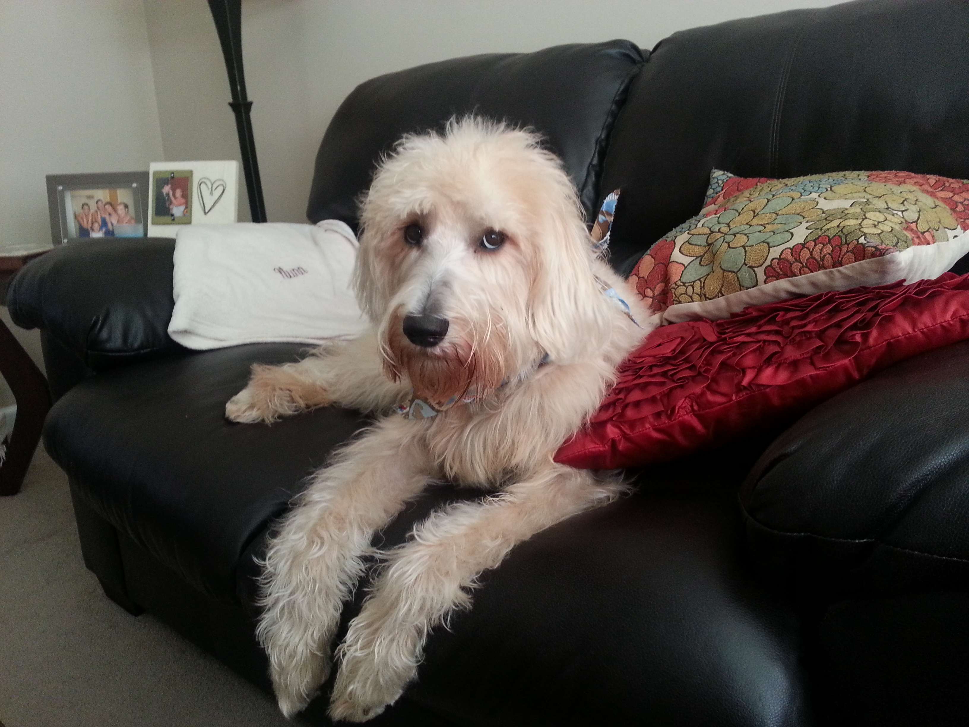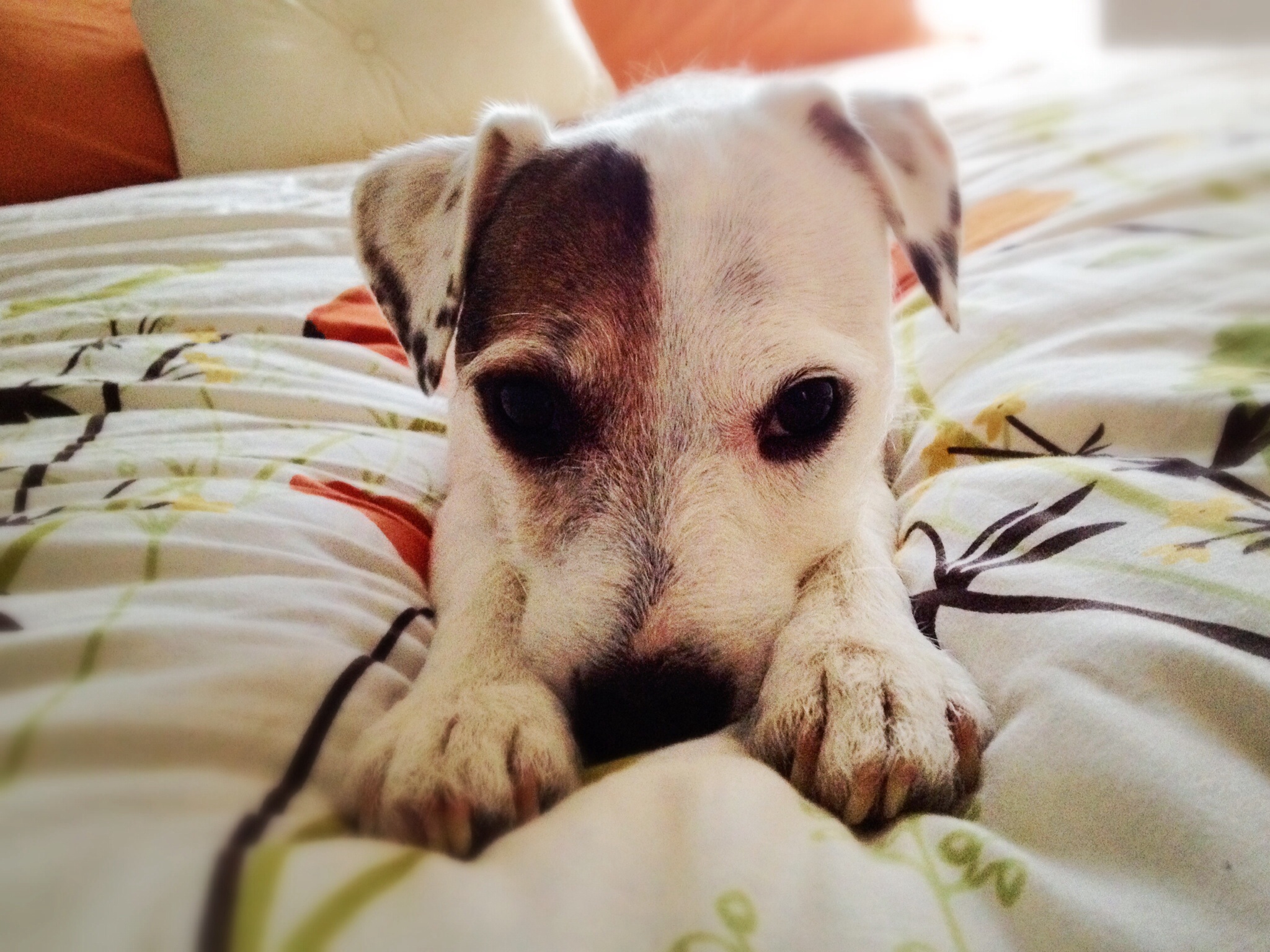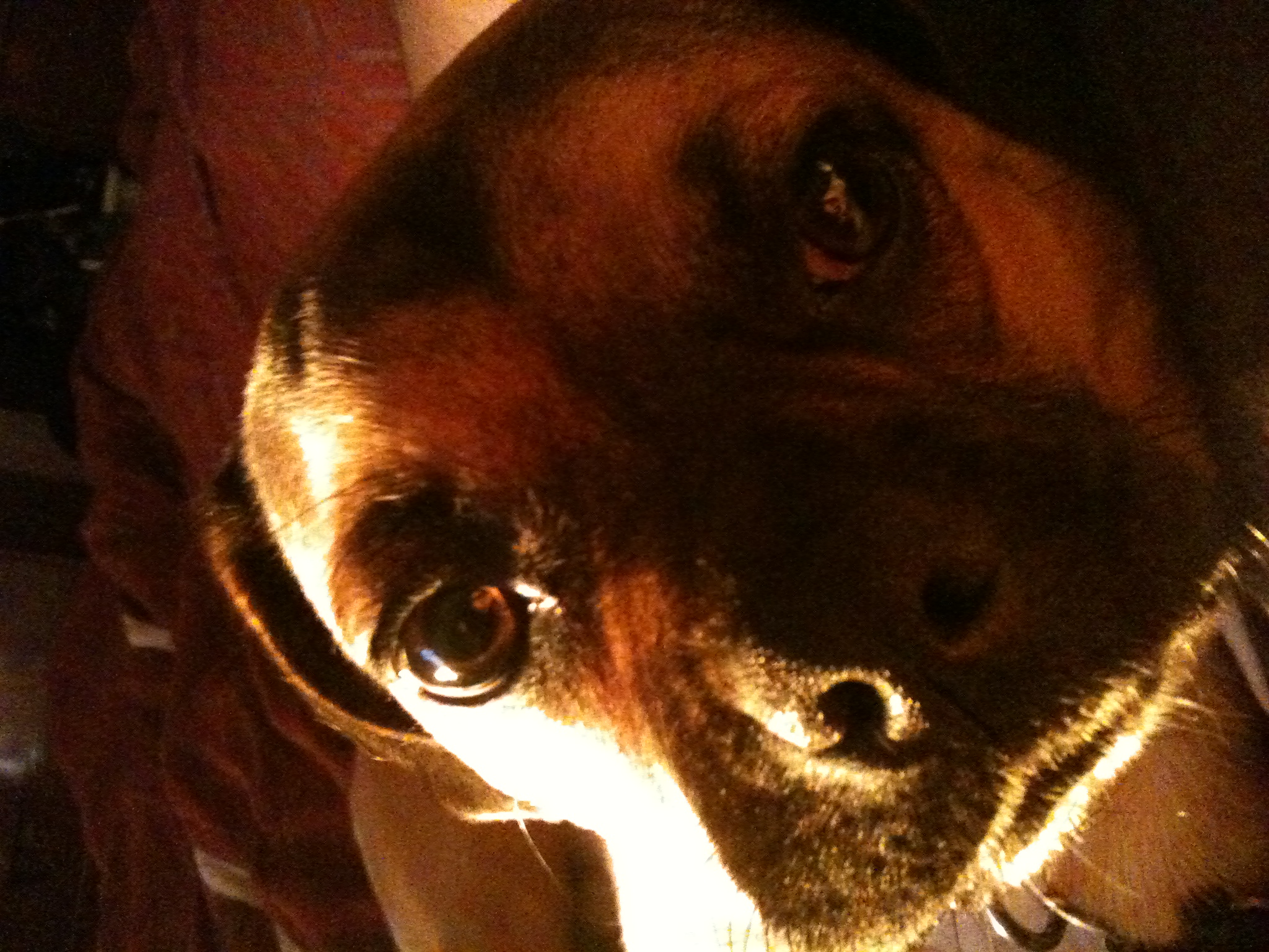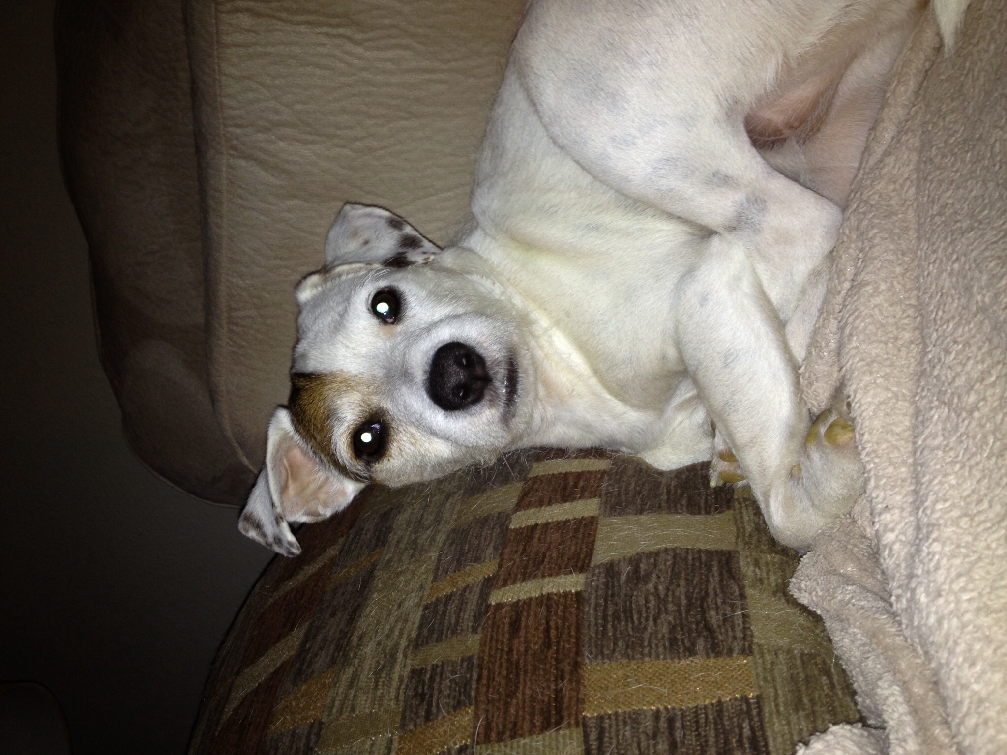 Topper totally side eying me after I woke him up taking pictures of him sleeping.