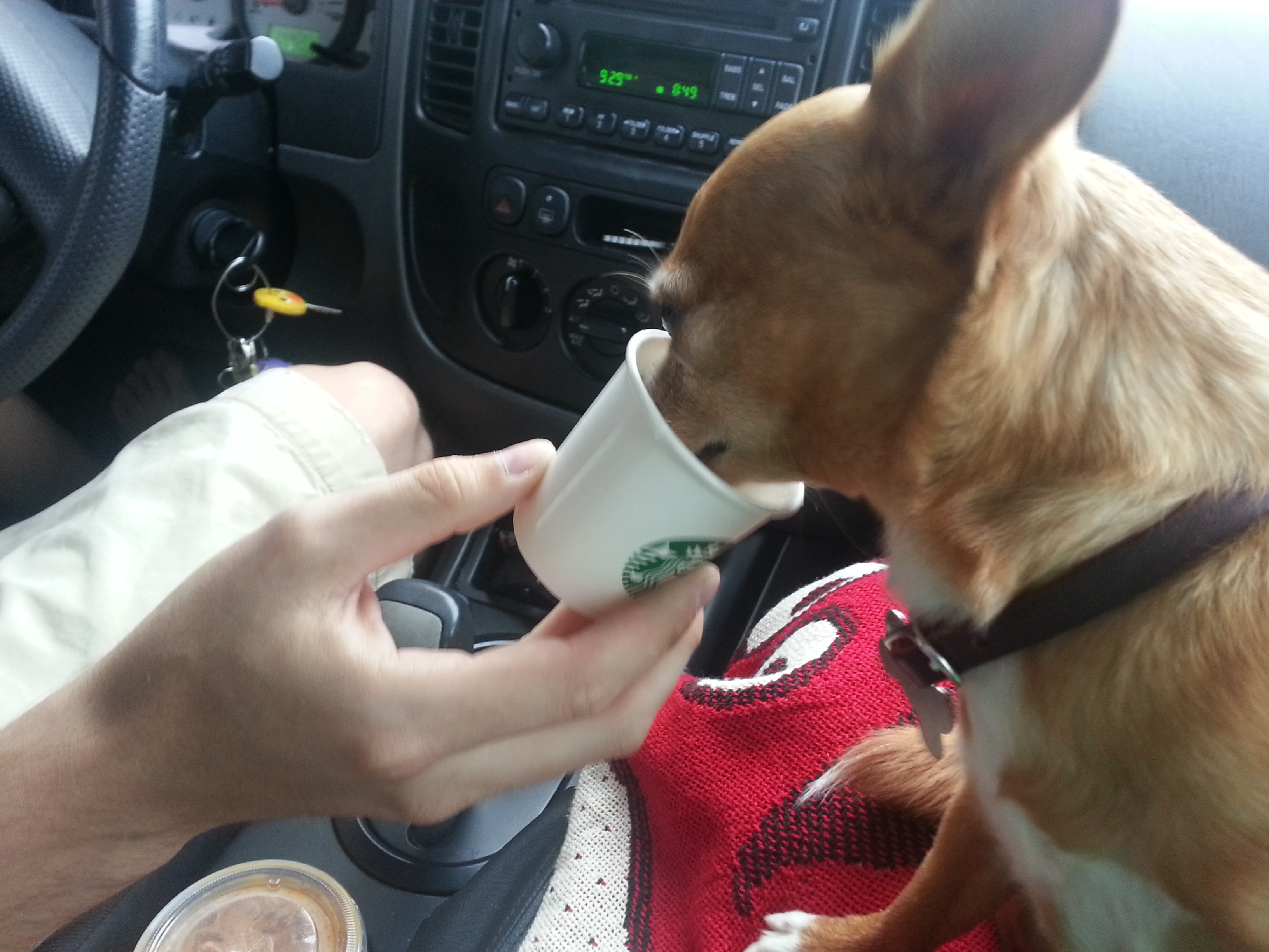 Cooper enjoying a puppy latte.