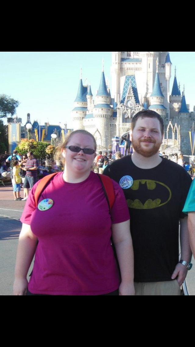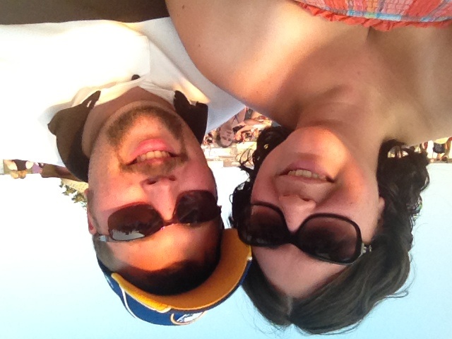 Here's a photo of DH and I one year ago almost to the day. I was bleach blonde with some sick pink chunks.