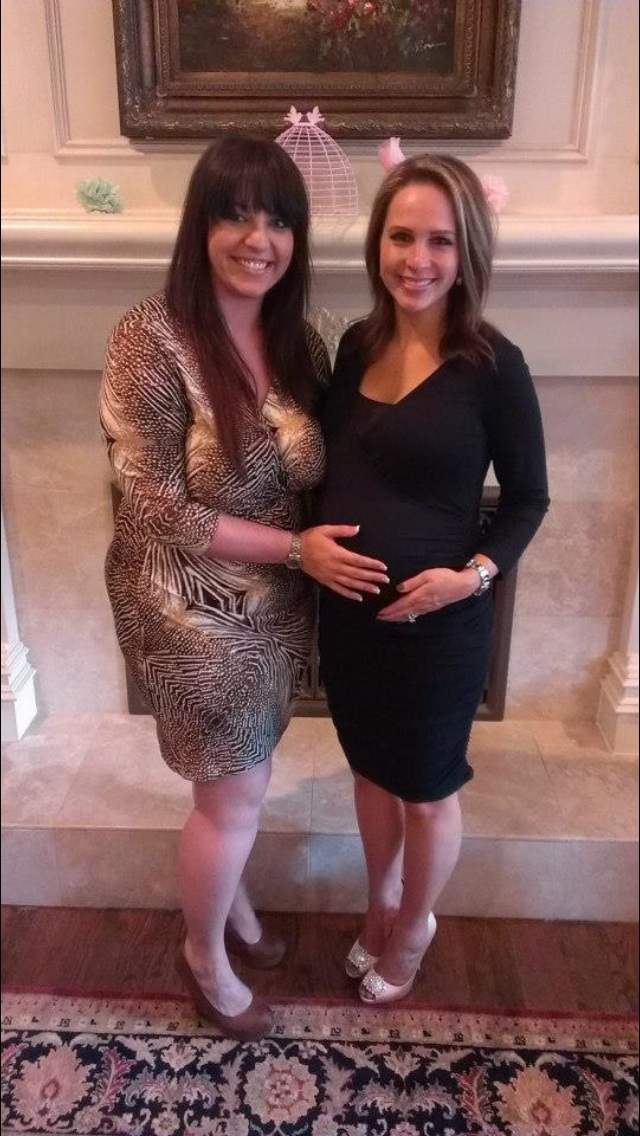 And here's me, my mom, sister, and goddaughter at my bridal shower which was a year ago (to the day) from my baby shower. How fun is that? PS: I can't wait to dye my hair back to that color after LO is here...I miss it so much! It's just a bitch to maintain.