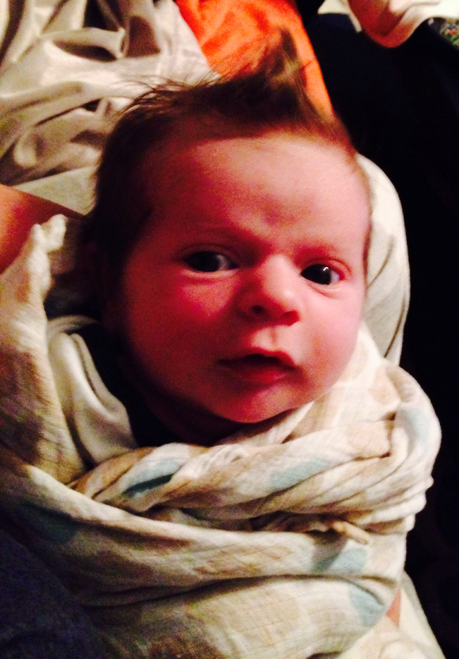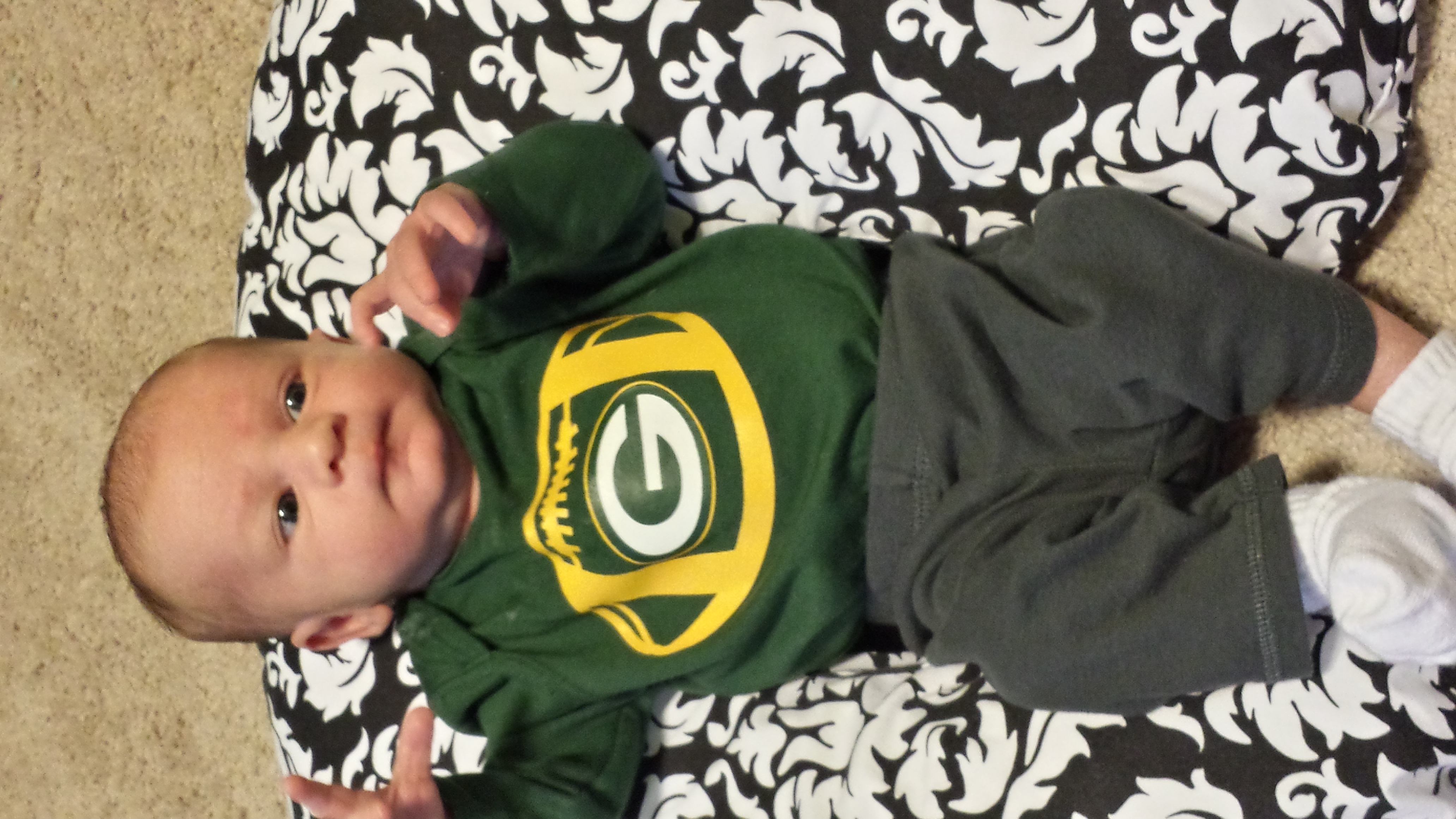 Late to the game, but oh well. Charlotte is one month old tomorrow. She is still a dainty little girl. She was 6 lbs, 13 oz at birth and tonight when we weighed her she was 8 lbs 10 oz. Finally fits well in all her newborn clothes. She is tall though, so some things are getting short even though they are still baggy.